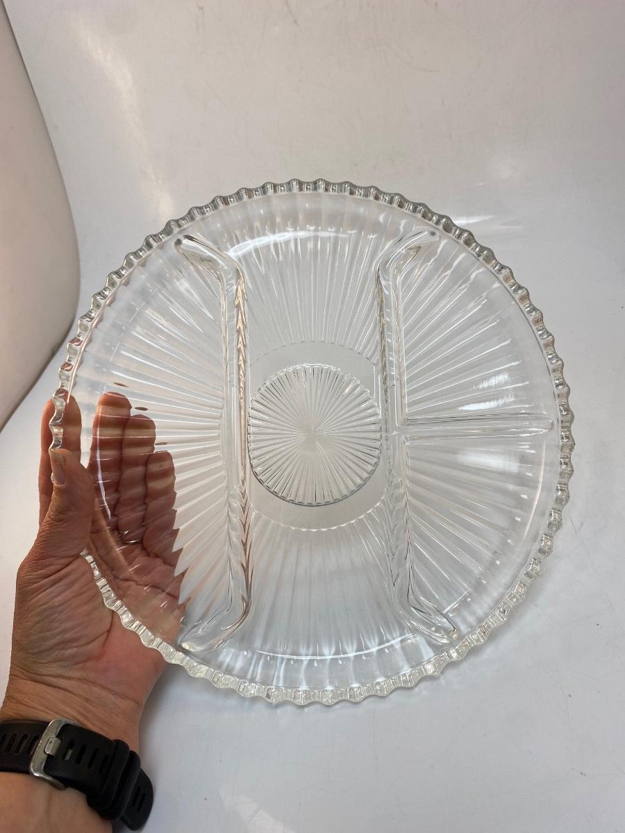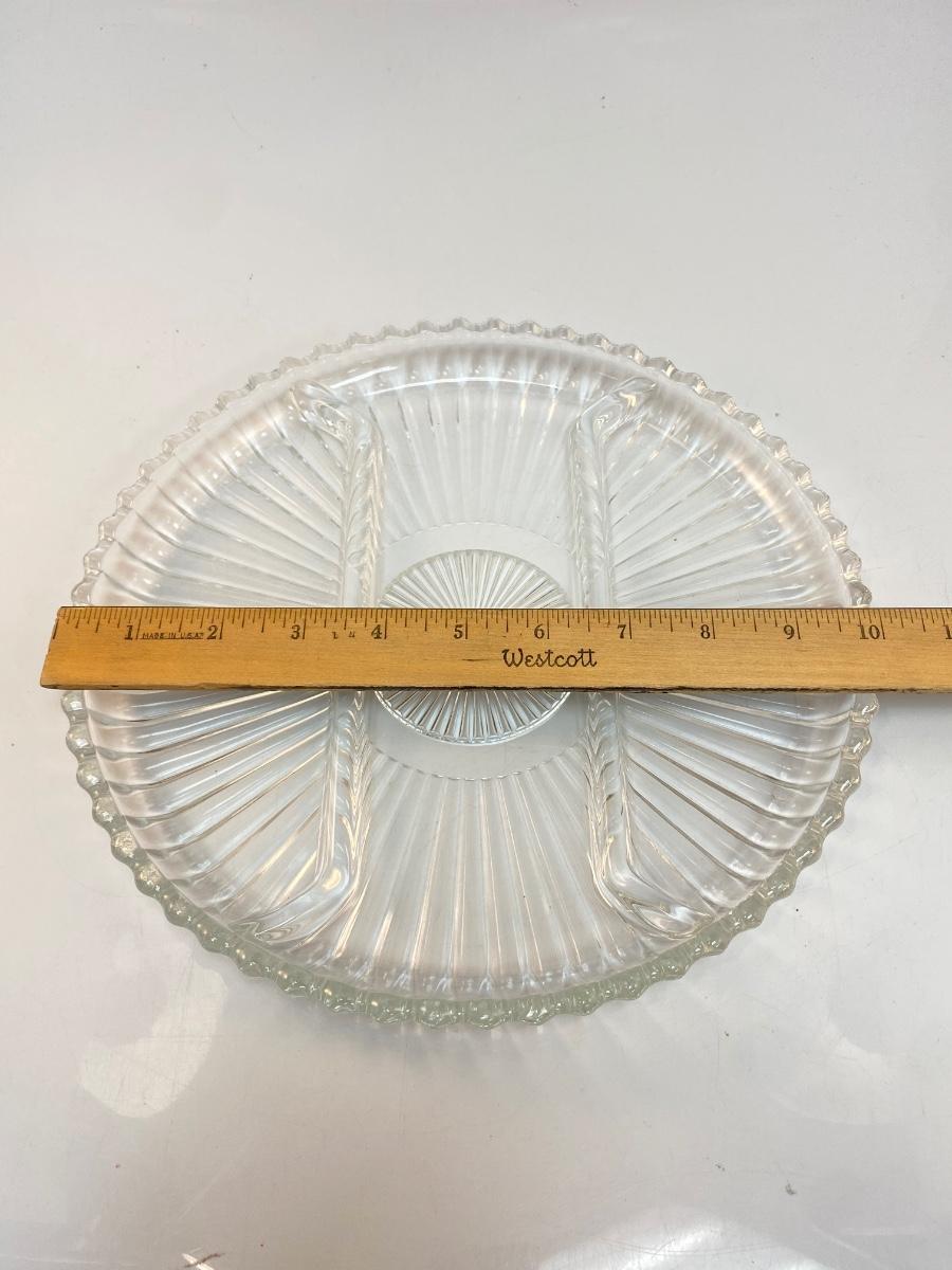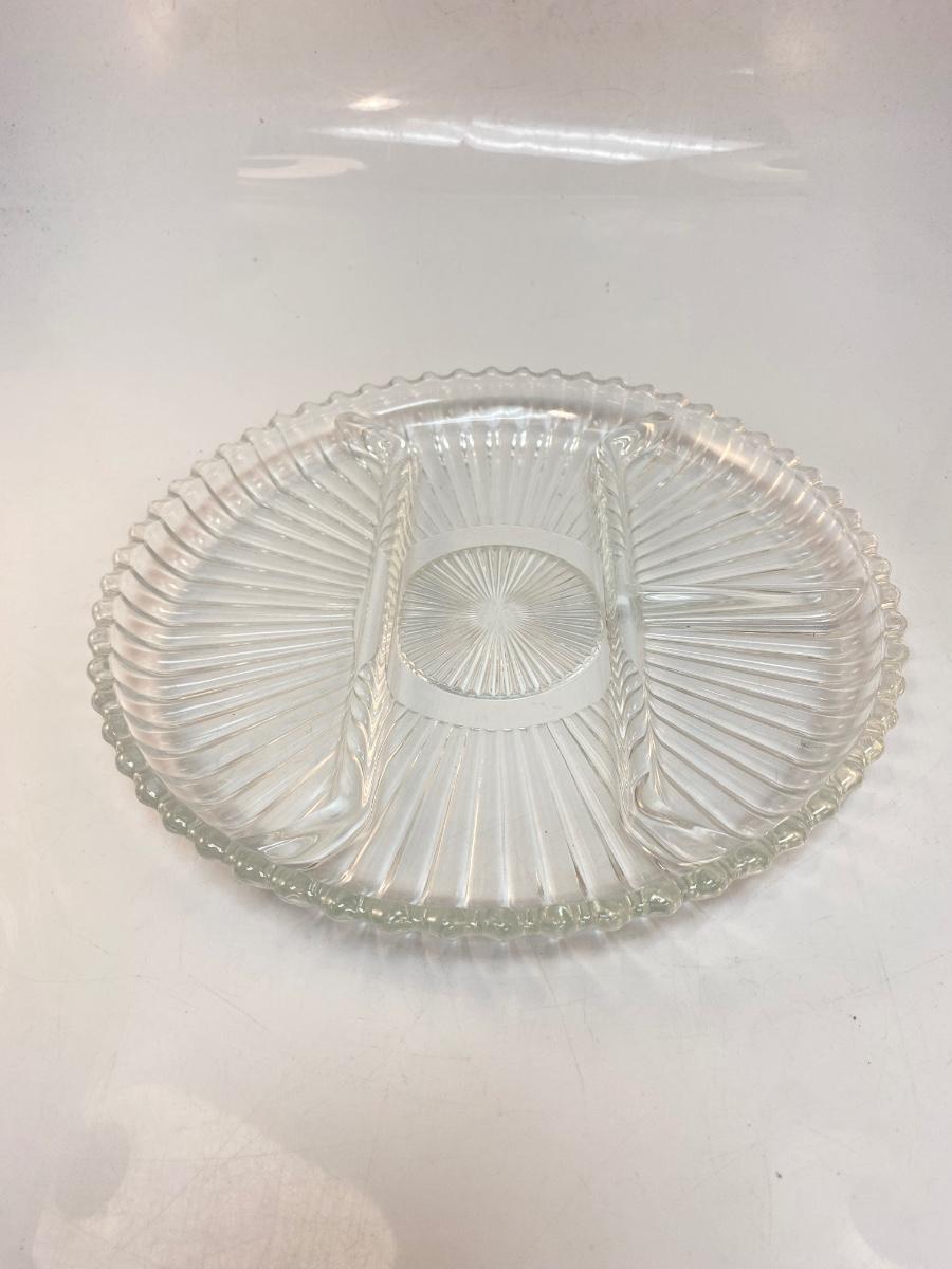 Vintage Ribbed Clear Glass Divided Serving Plate Tray