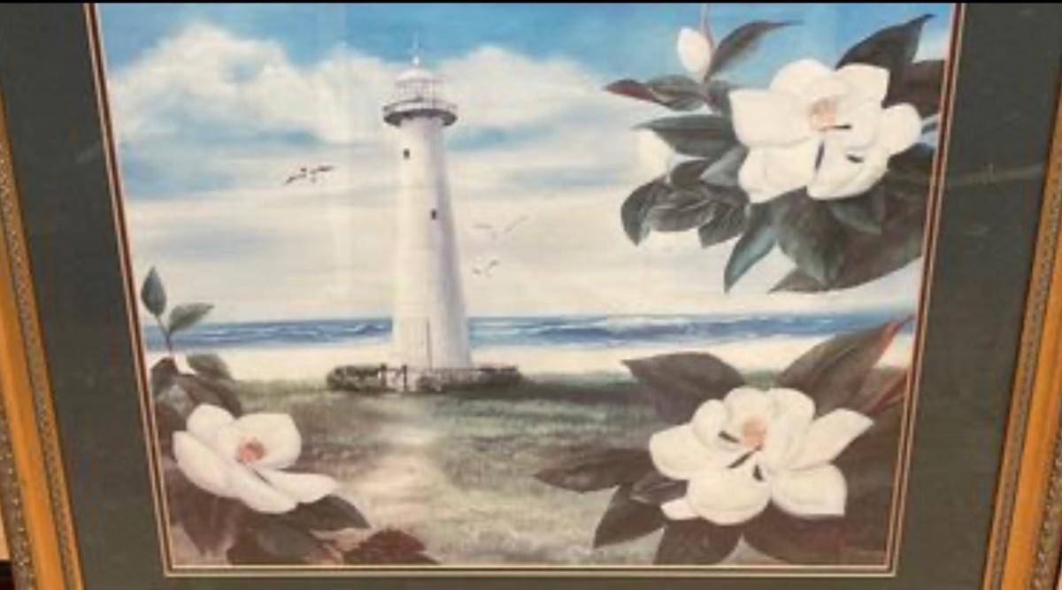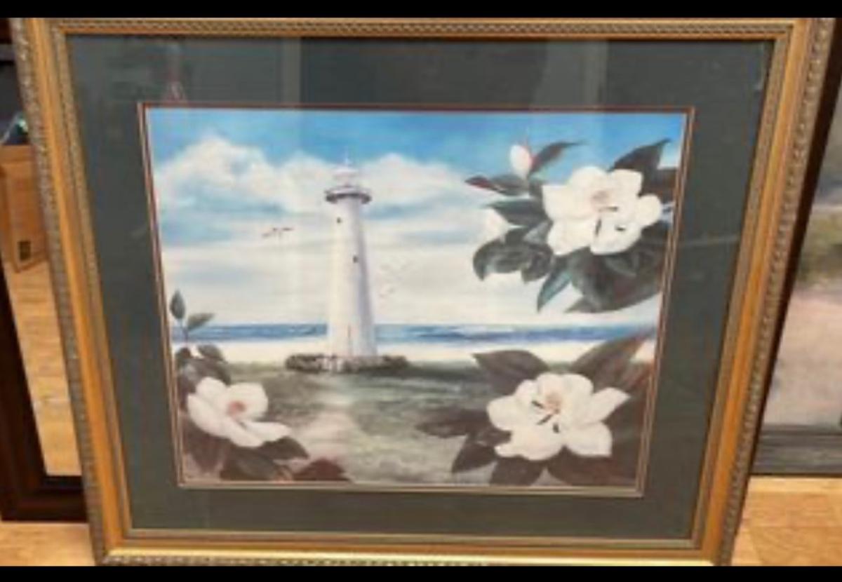 Joan daughtery Biloxi lighthouse and magnolia double signed print-34 x 31