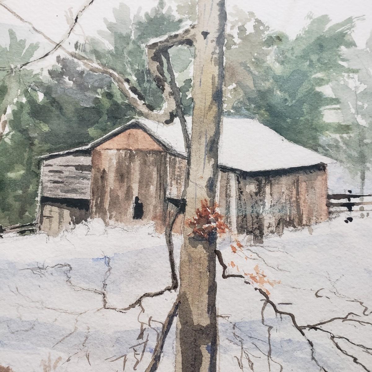 Joan Lape's "Papa's Barn" Local Weaverville Artist (PBB-KD)