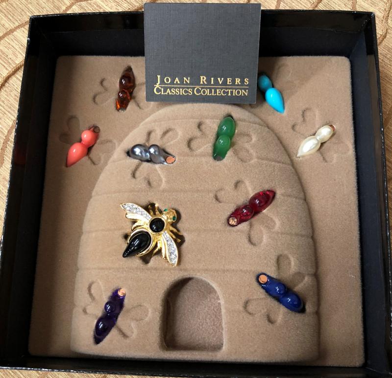 New condition on this boxed set of (10) gaily colored Insect pins and brooches....part of the late Joan Rivers Classic Collection....