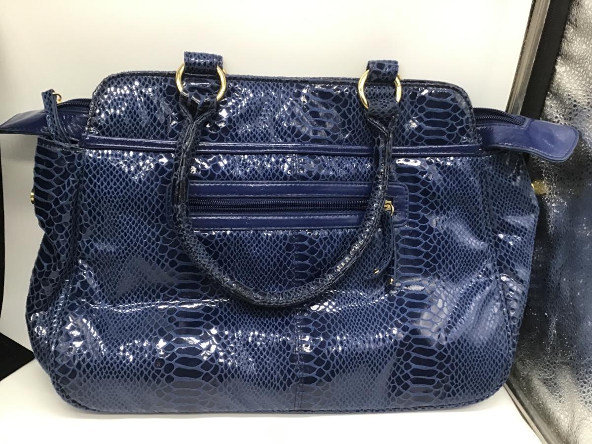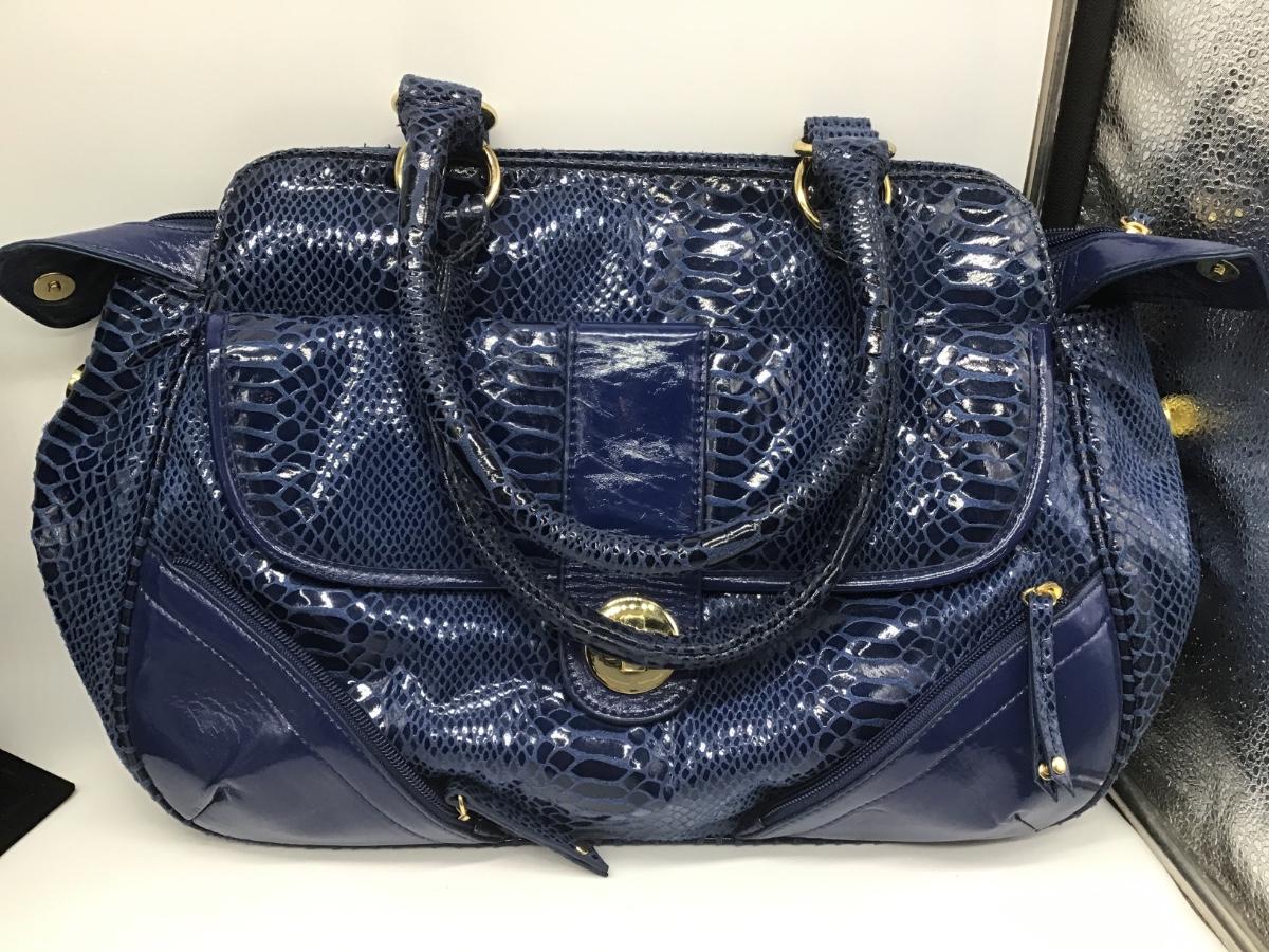 Joan Rivers Classics Blue Faux Snake Skin Handle Bag.