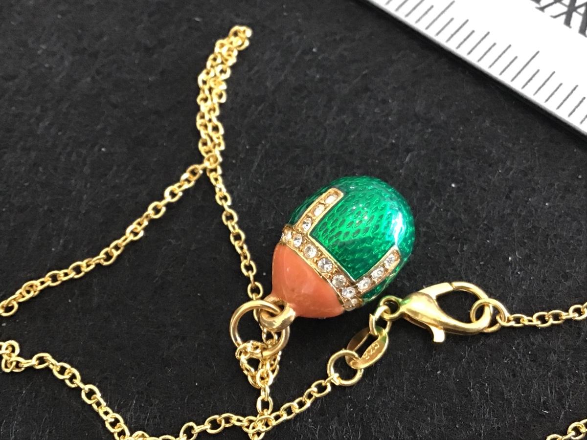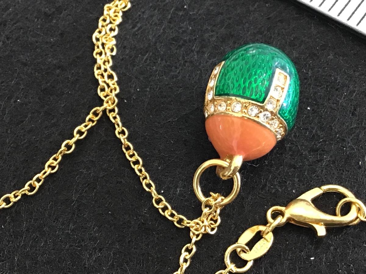 Joan Rivers GP peach Green Rhinestone Enamel Egg with Fashion Chain