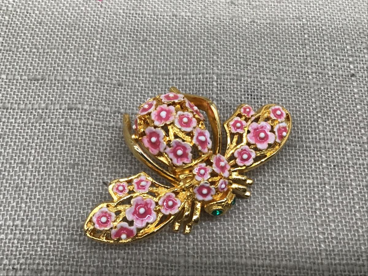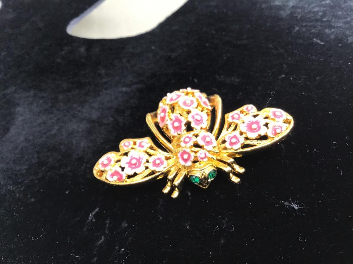 Joan Rivers Pink Posey Enamel Flower Bee BUG BROOCH Jeweled Eyes