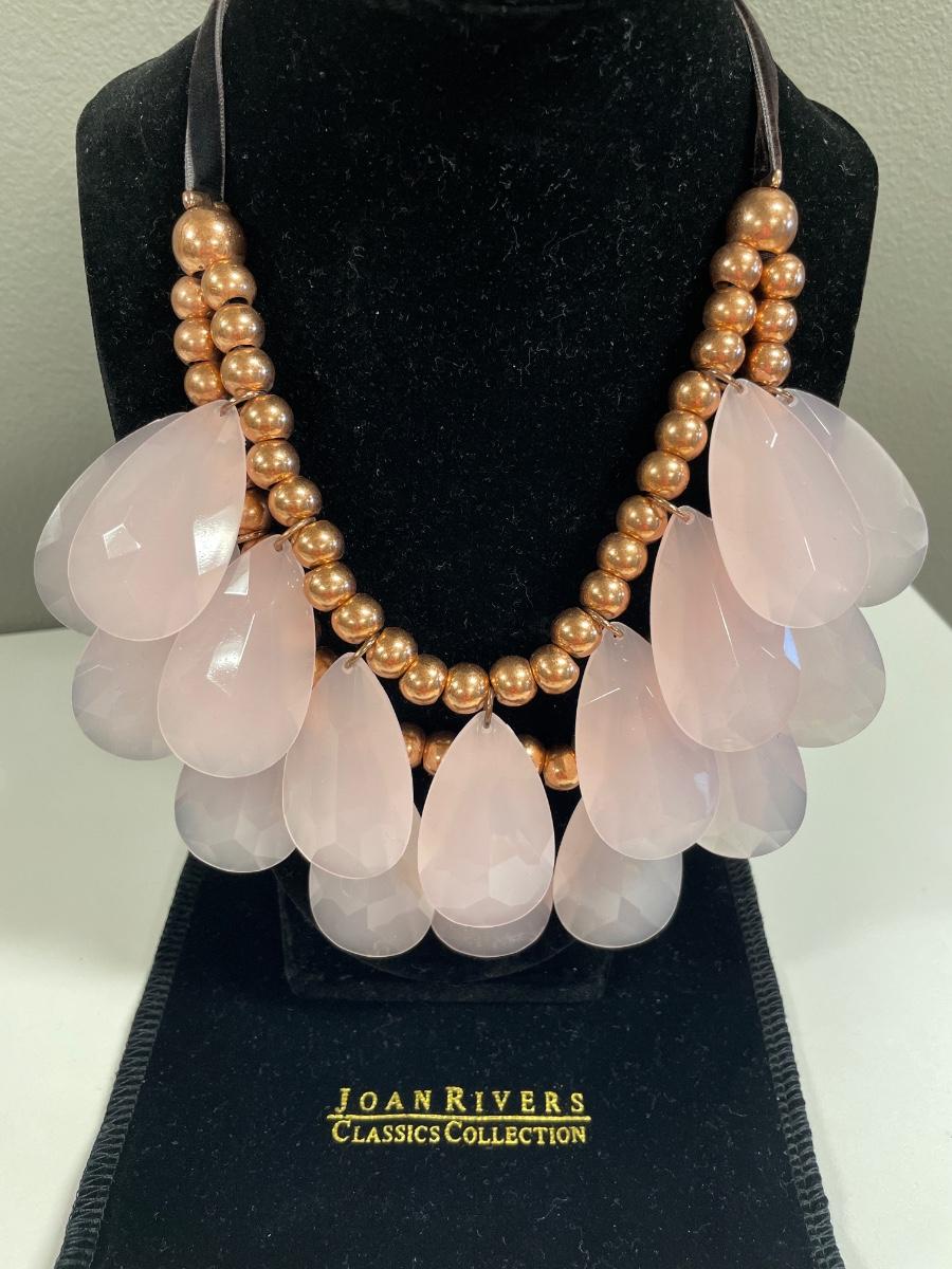 2 Joan Rivers teardrop pink necklaces