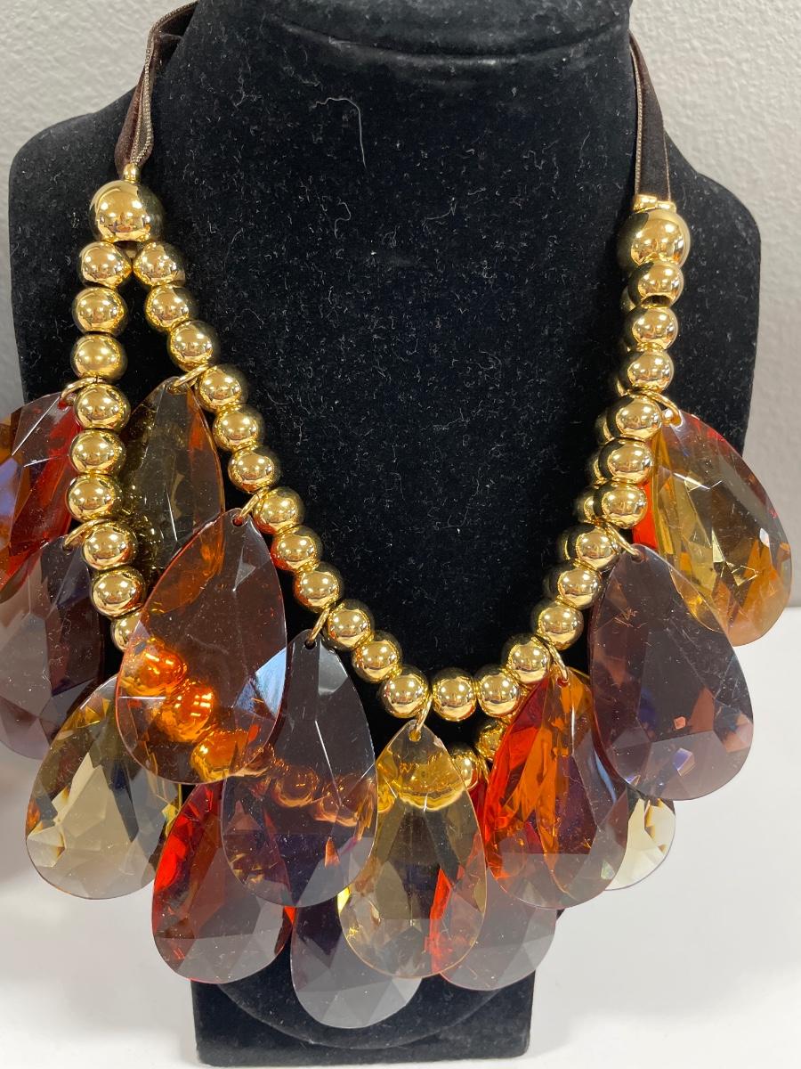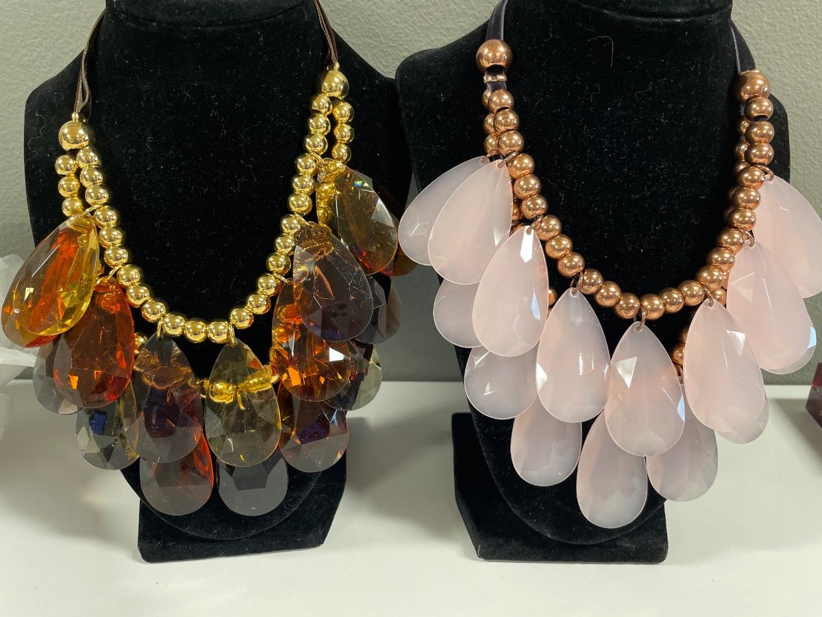 Large pink & amber color teardrop necklaces from Joan Rivers