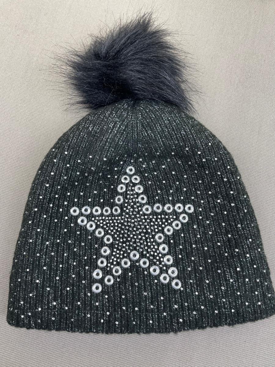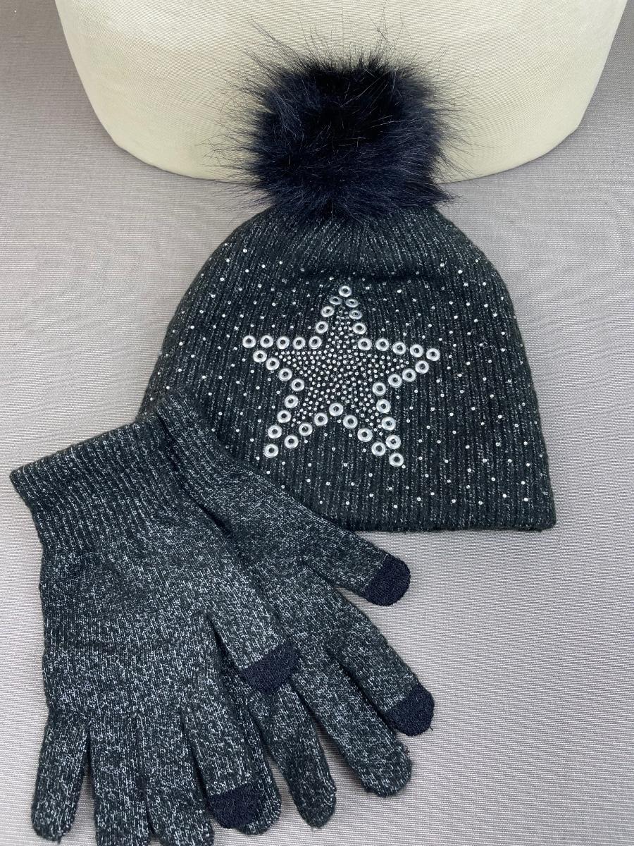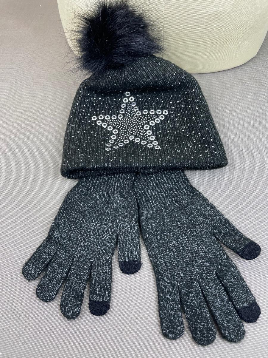 Joan Vass Beanie and Gloves Set Black Star