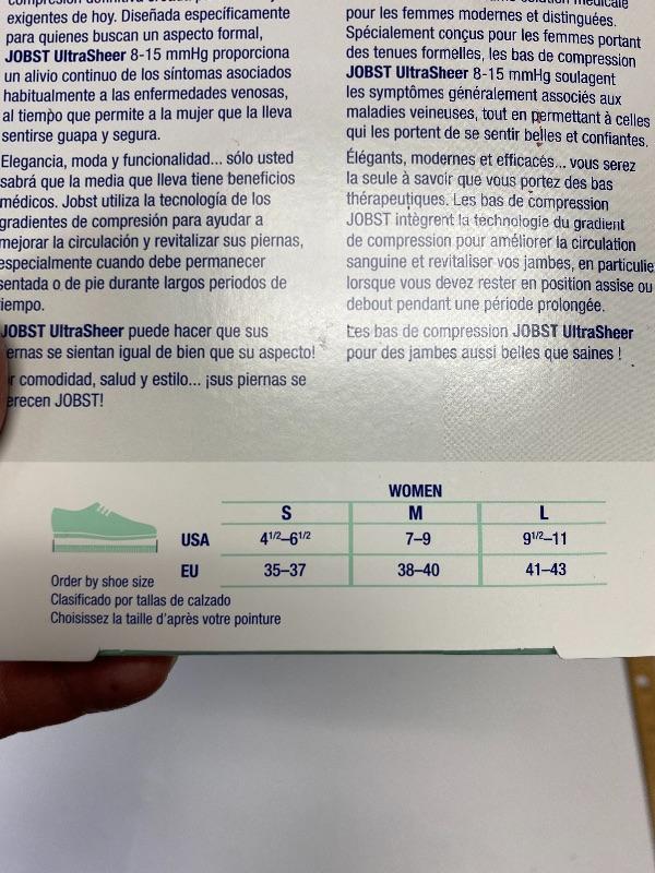 Jobst ultra sheer compression stockings. Knee heigh. 8-15mmHg rated. Size Large. Look unworn, new in box.