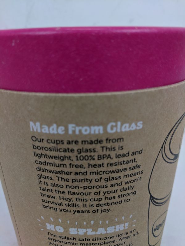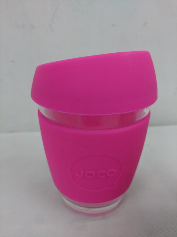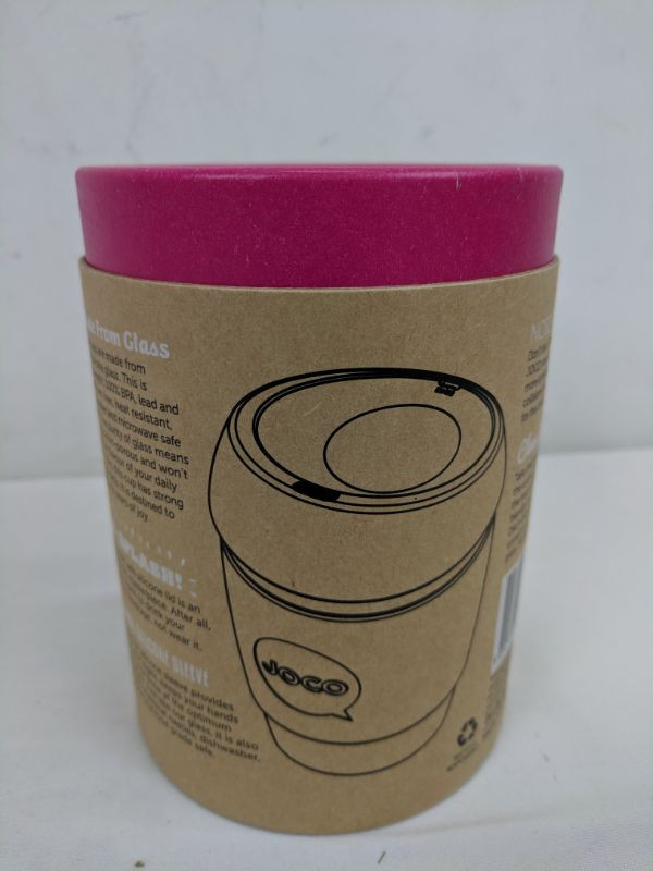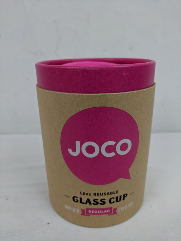 Joco Reusable Glass Cup (12 oz.) Pink! No-Splash Lid + Thermal Silicone Sleeve