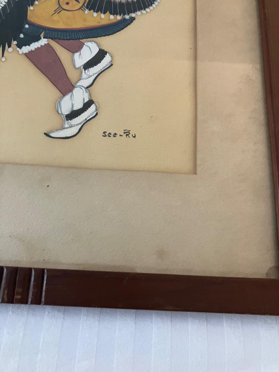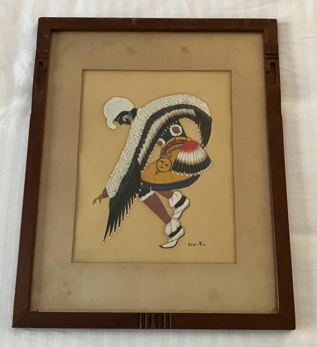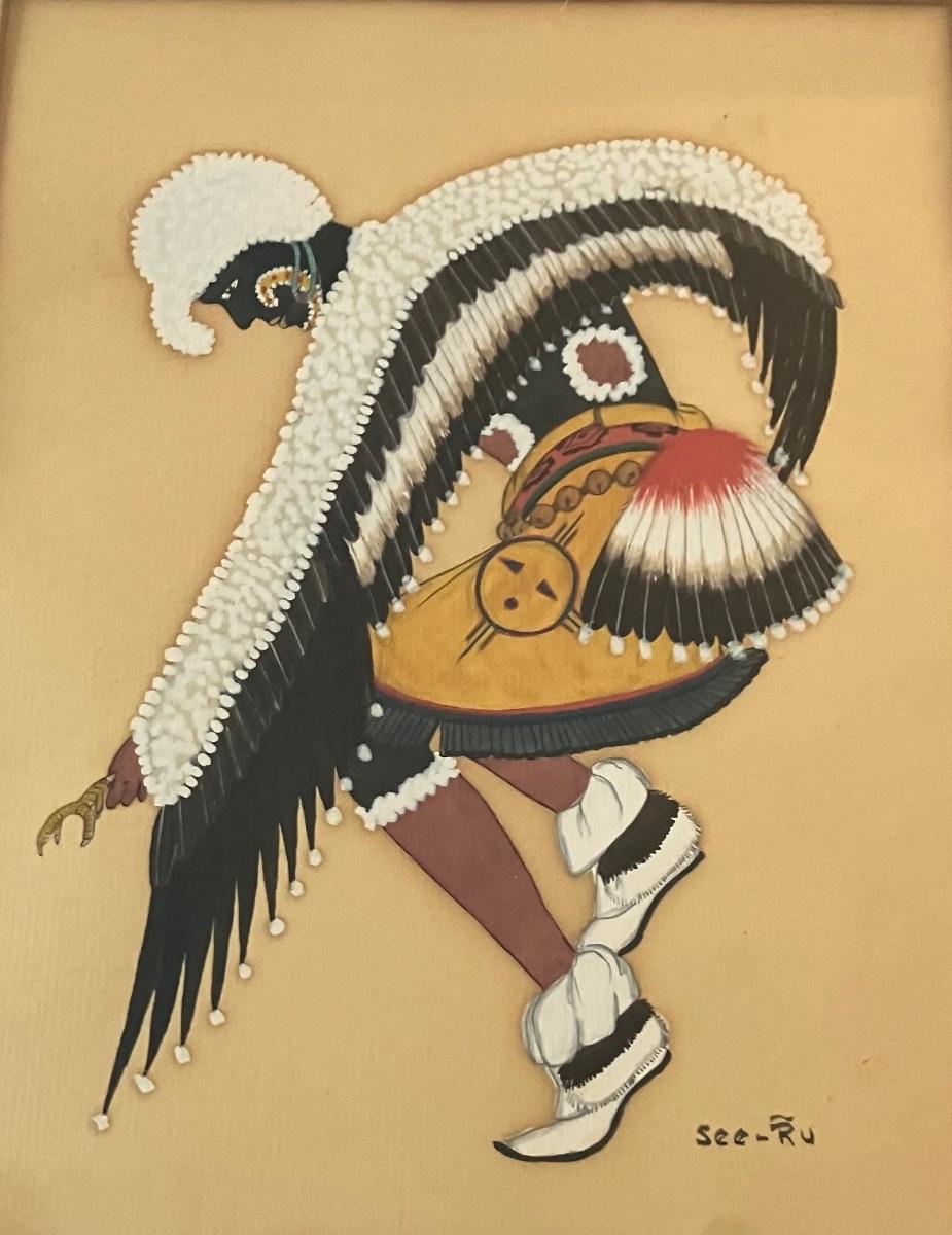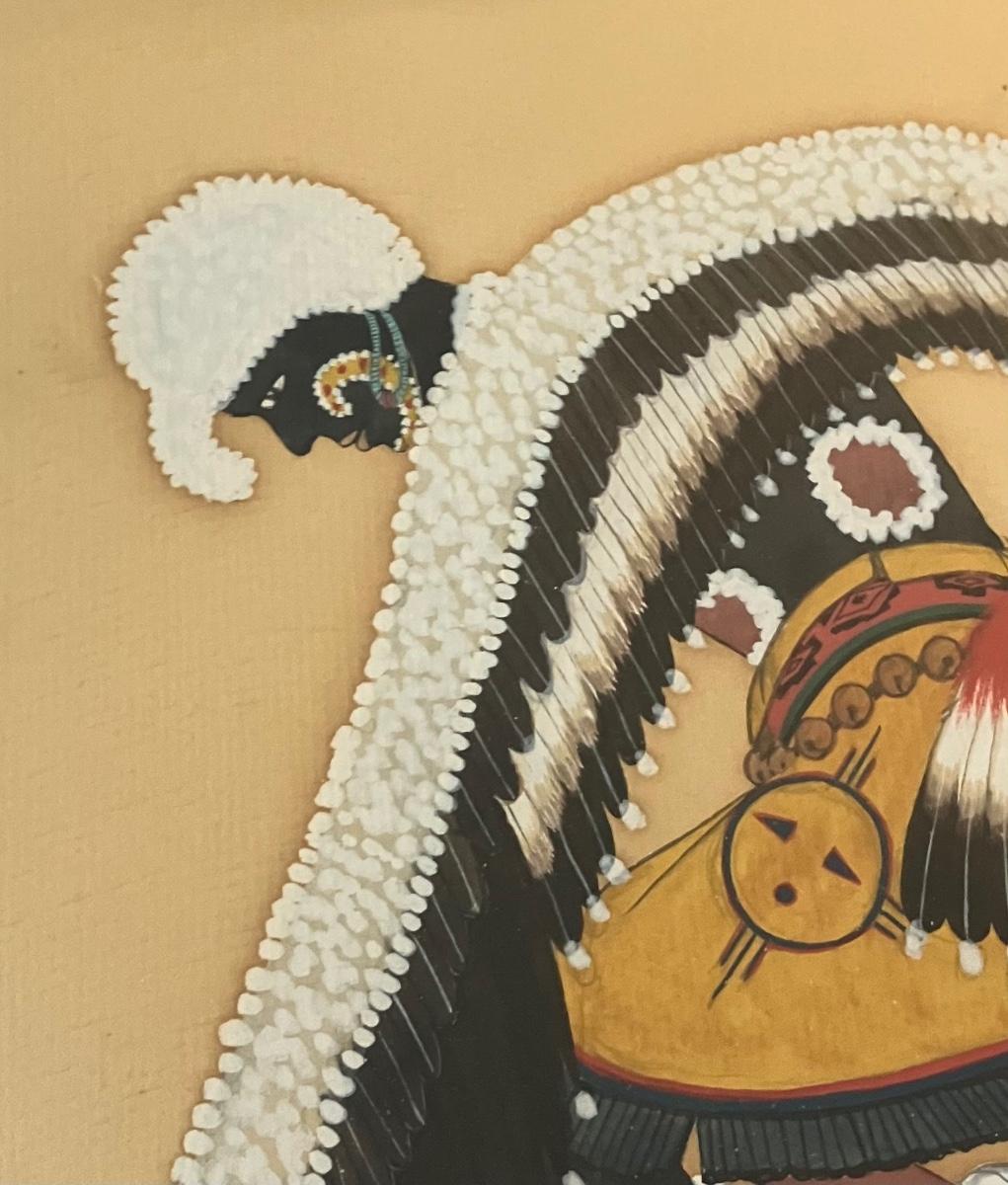 Joe Hilario Herrera (See-Ru), Signed, Vintage Cochiti Pueblo Gouache: Eagle Dancer 13" x 17