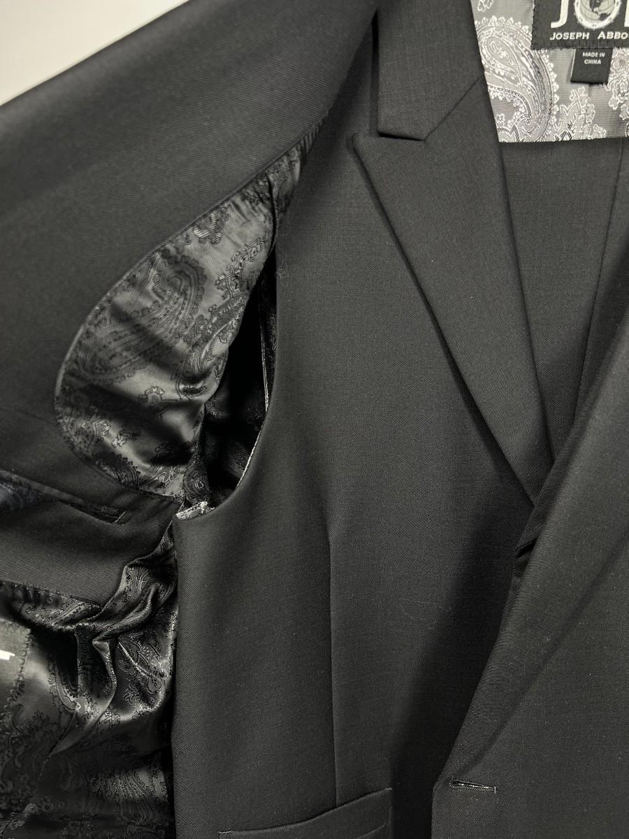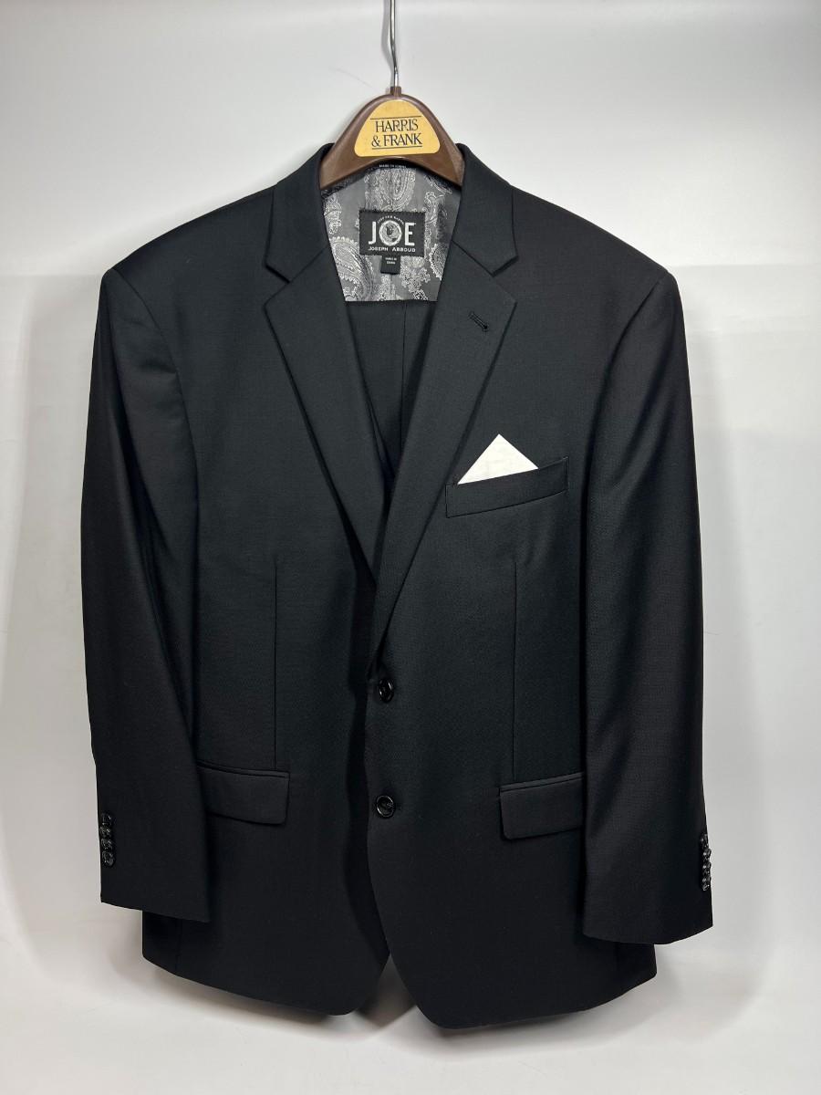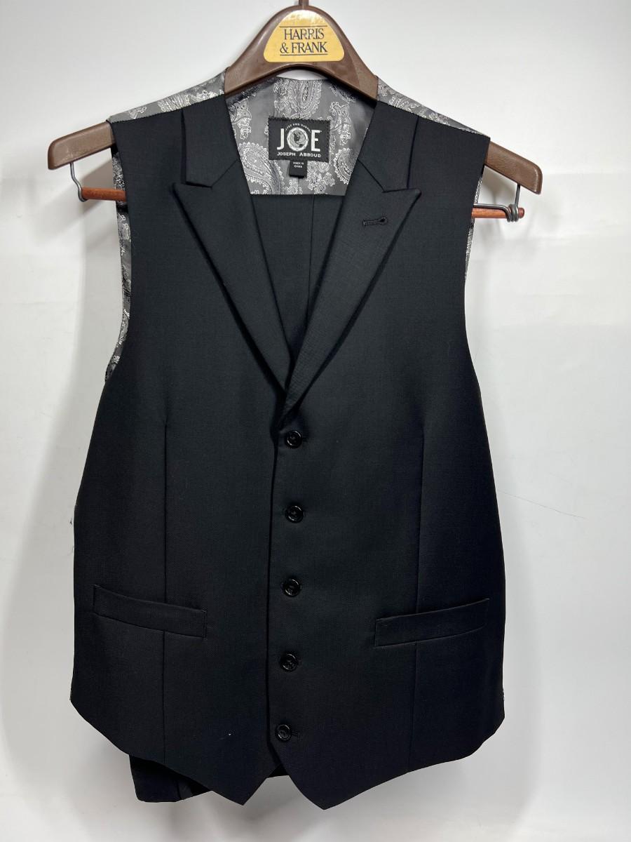 Joe Joseph Abboud Just One Earth Wool Polyester Viscose Black Custom Tailored Suit Pants, Jackets, & Vest