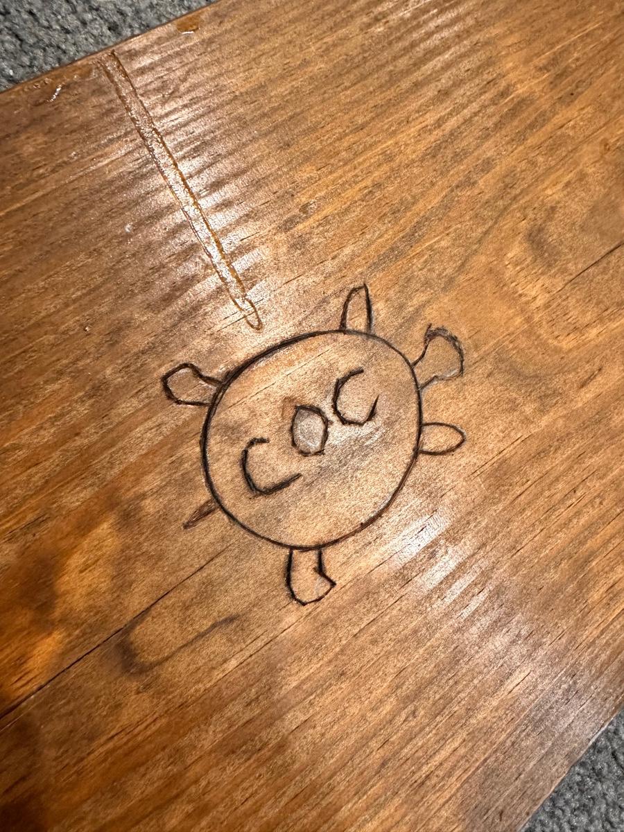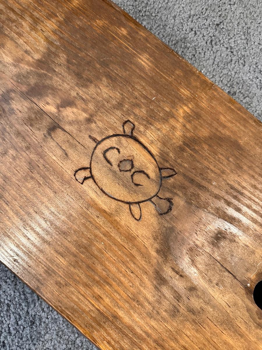 Joggling Board Bench, Stained Signed with a Turtle and COC on Bottom 9ft 11" Long