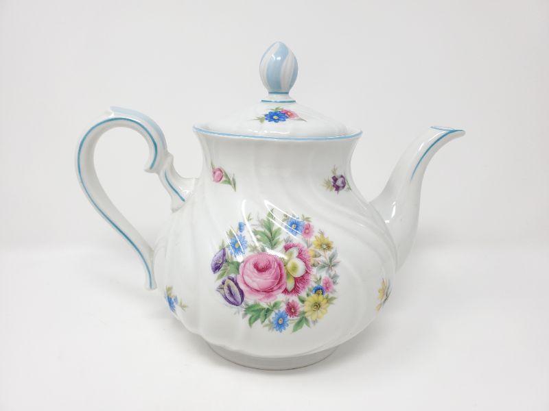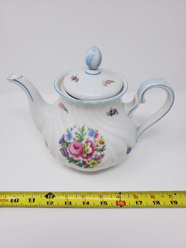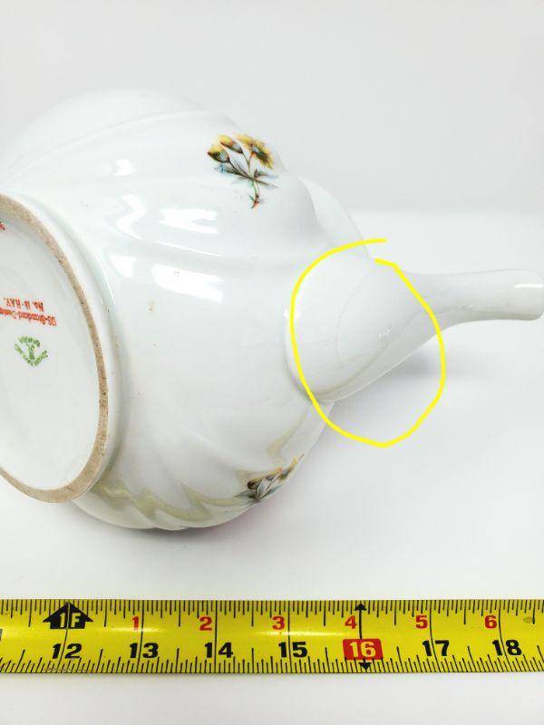 Gorgeous Johann Haviland tea pot just in time for spring! This beauty has been used and does have a crack in the spout, please see photos. Good condition don't despite the flaw in the spout.