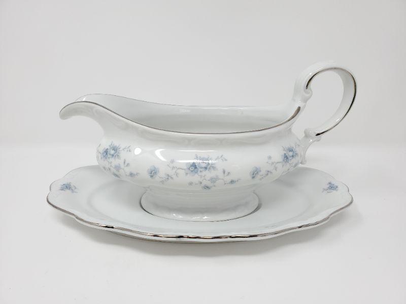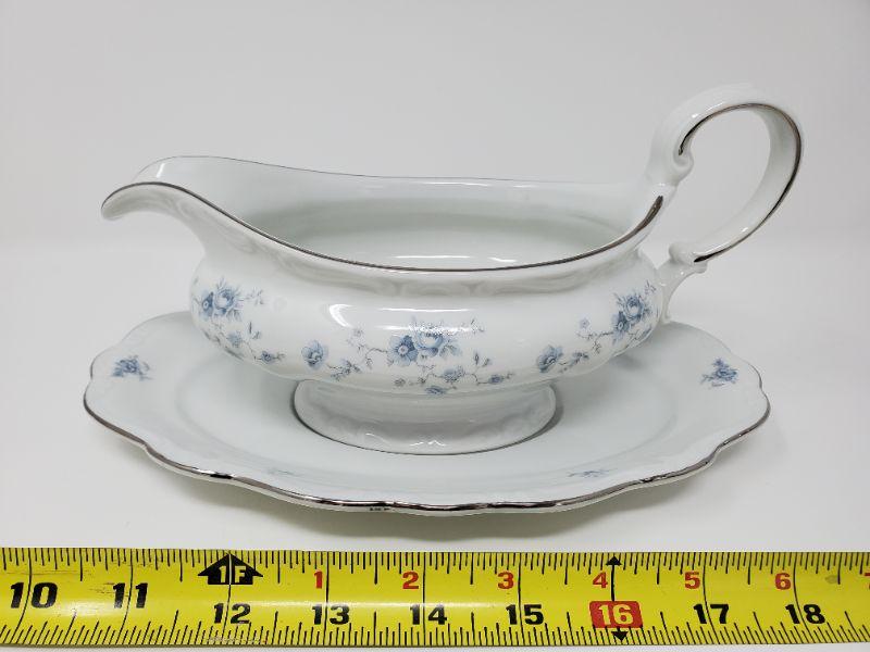 JOHANN HAVILAND BLUE GARLAND GRAVY BOAT AND PLATE