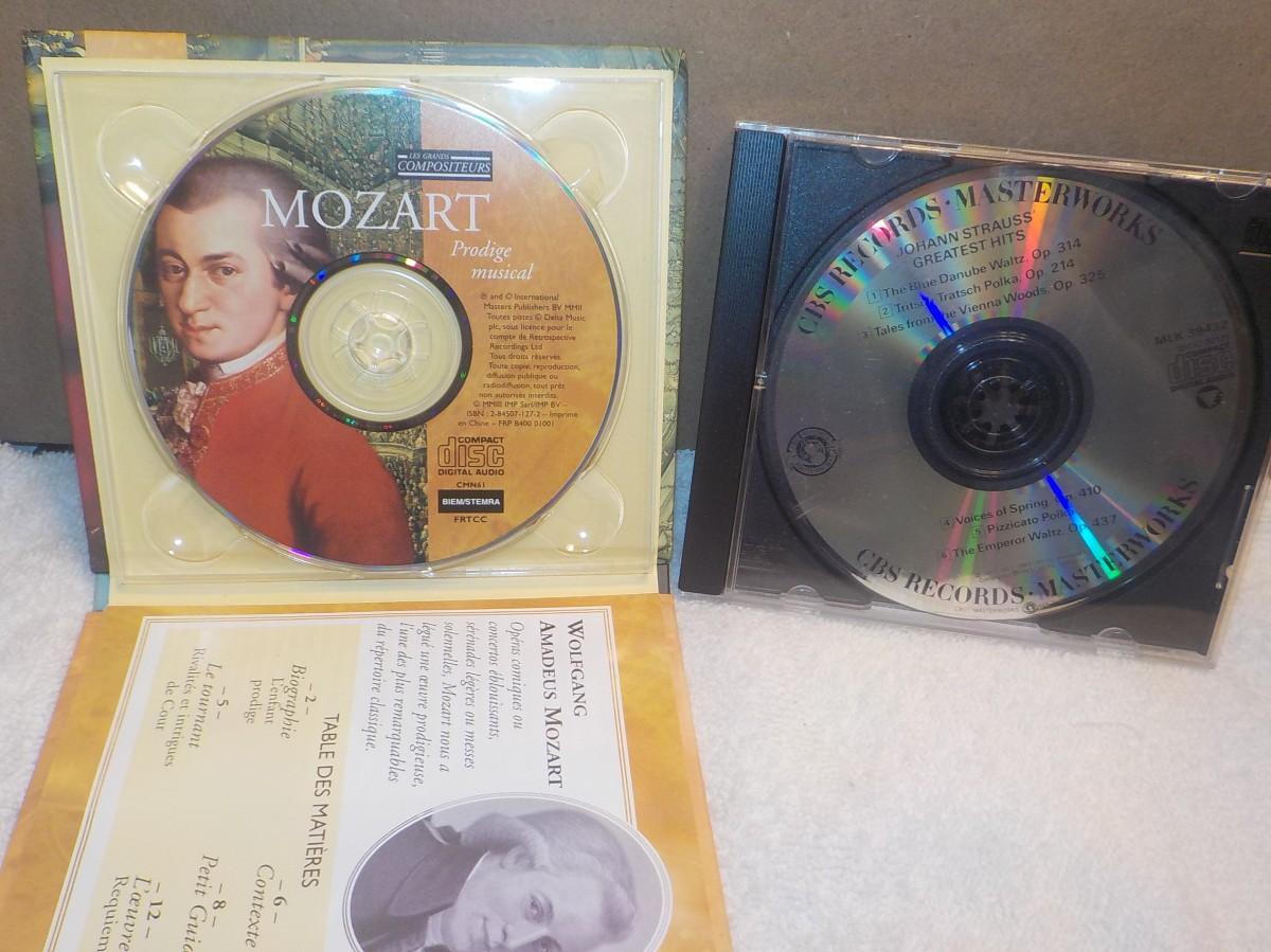 Johann Strauss and Wolfgang Mozart CD's with dozens of great hits.