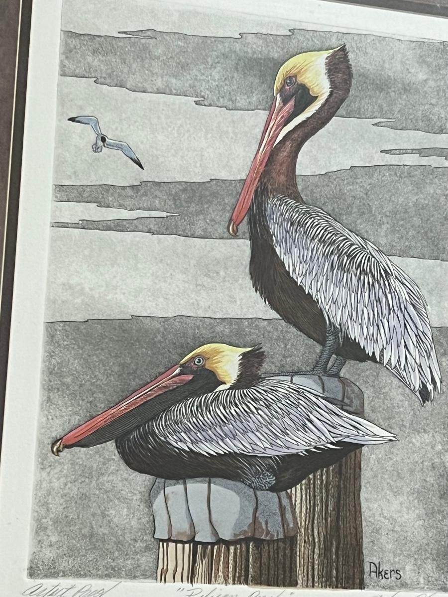 JOHN AKERS ~ “Pelican Perch” ~ Signed Framed Print