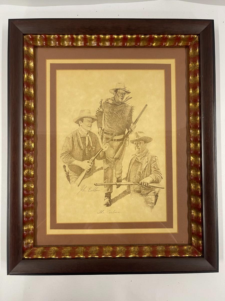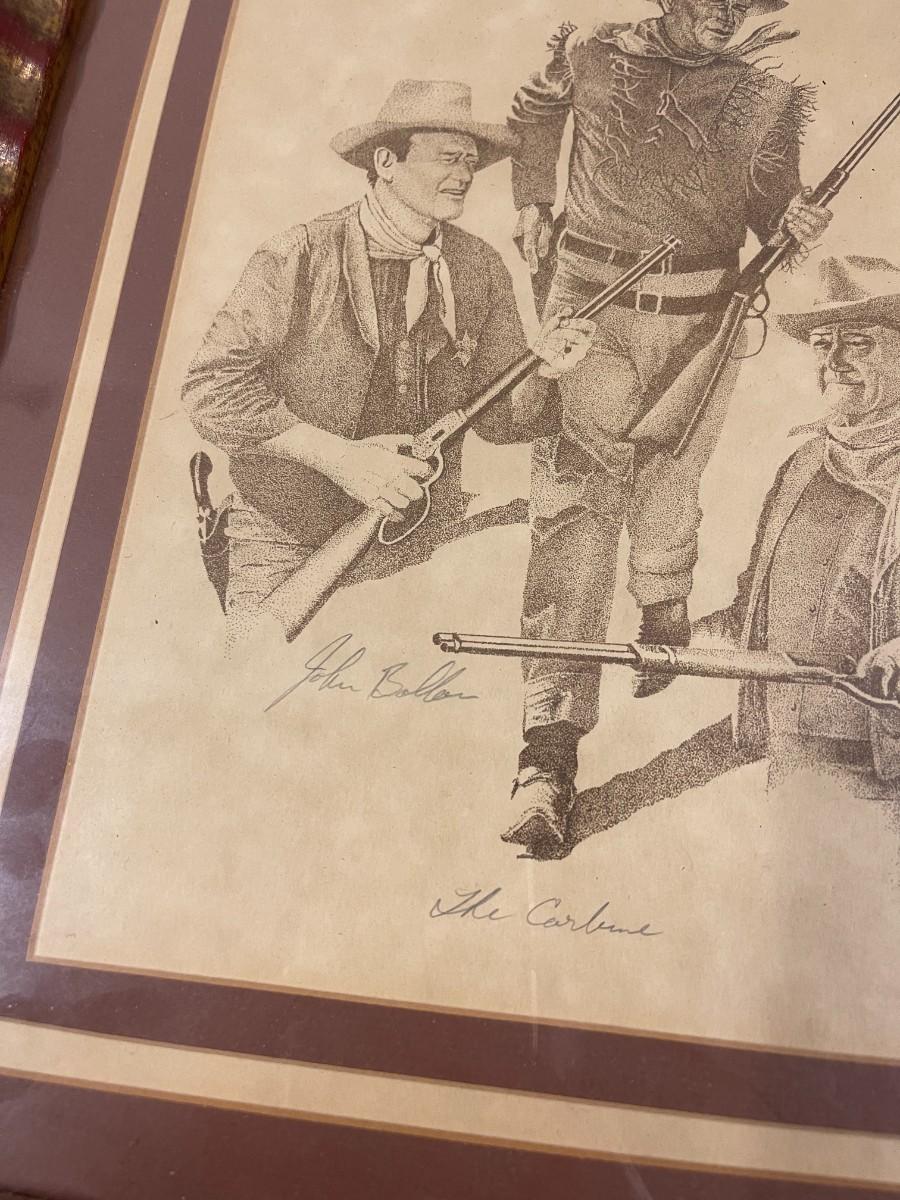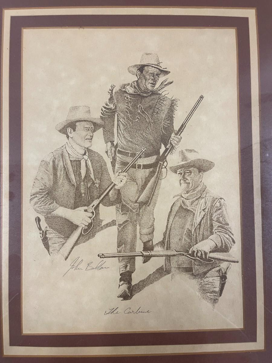 John Ballou Lithograph of John Wayne, The Carbine, Signed