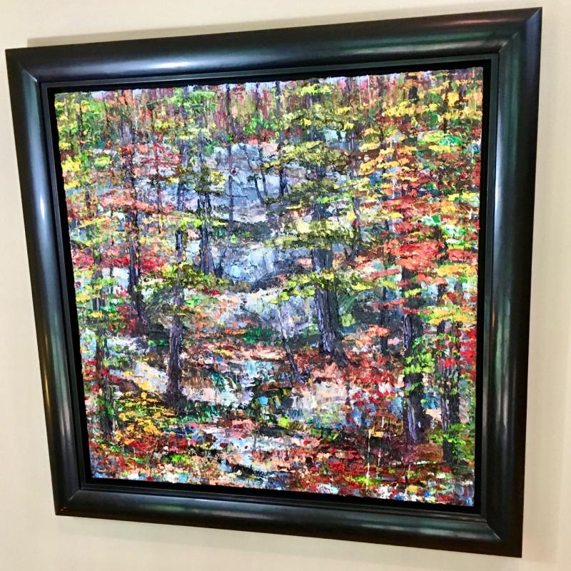 The "Water from Rock" by John Barkley created in 2005 original oil painting. Quote from Barkley: "My work is influenced by and linked to many Quebec artists. My painting application has recently been compared, by one critic, to Riopelle and Borduas, and the contrast between the organic and geometric to Charles Gagnon." Original price $3275 USD, Certified by Helen Bellefeuille Galerie in Quebec Canada. ***DIMENSIONS: 36"x36" without frame | CONDITION: Excellent*** Local pick up only, Newtown CT