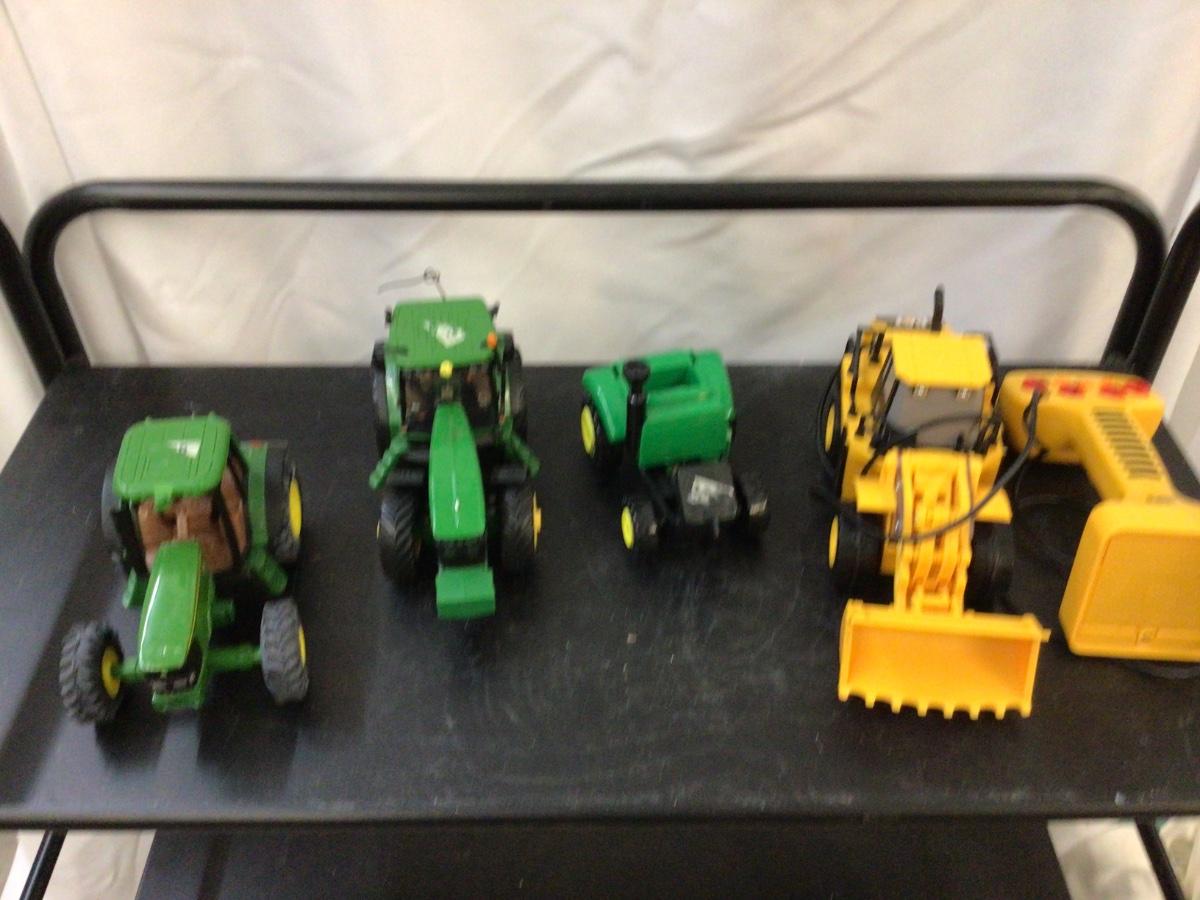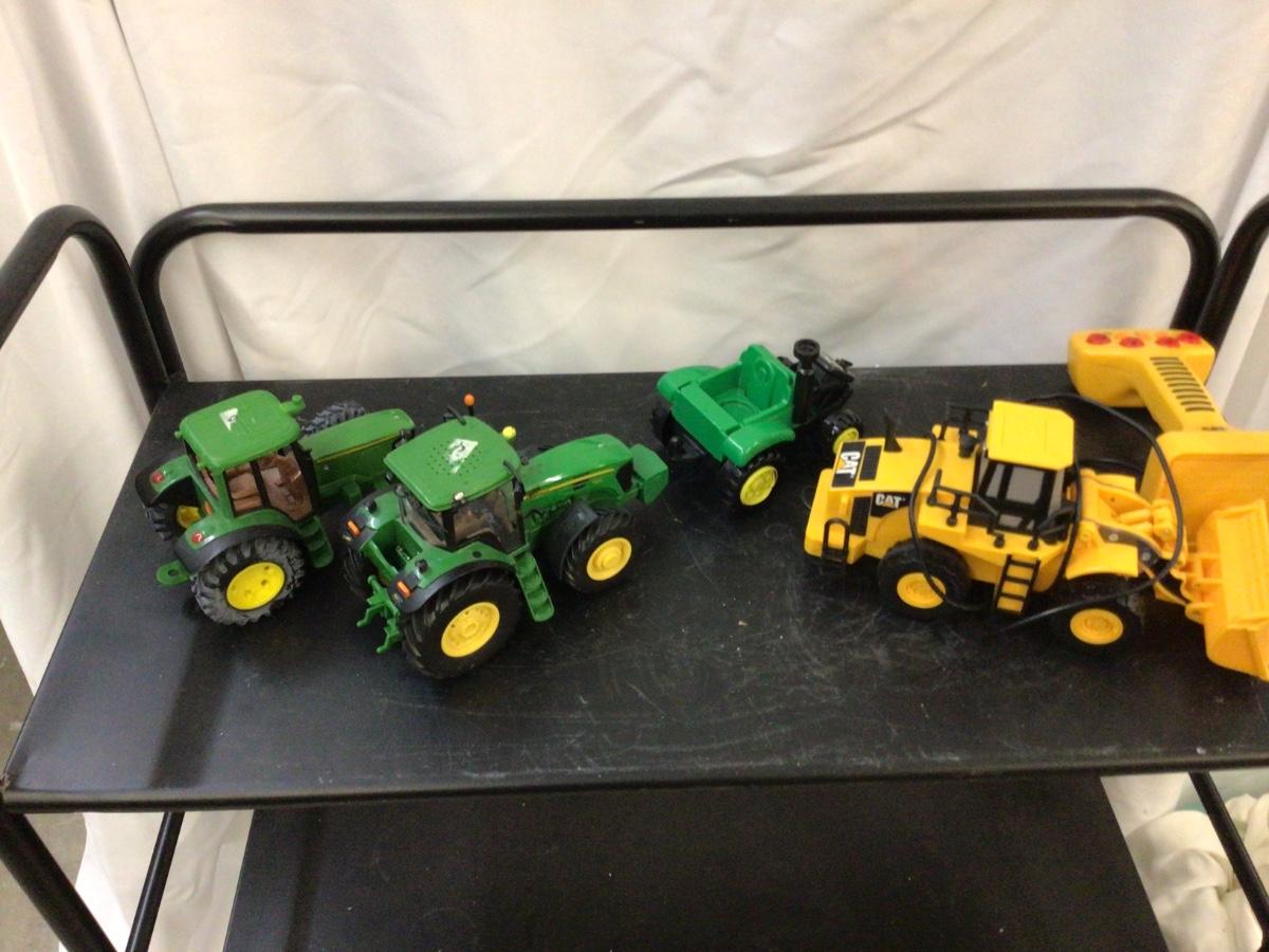 You get three John Deer tractors and a Cat remote control Construction Bull Dozer