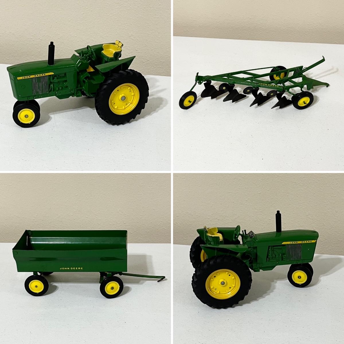 Combine 6” H x 13” W x 9” D ~ Tractor 5.5 H x 8.5” W x 5” D ~ Wagon 3.5” H 4” W x 8” D ~ 4 bottom Plow 3” H x 10” W x 5” D