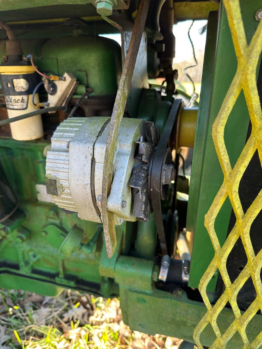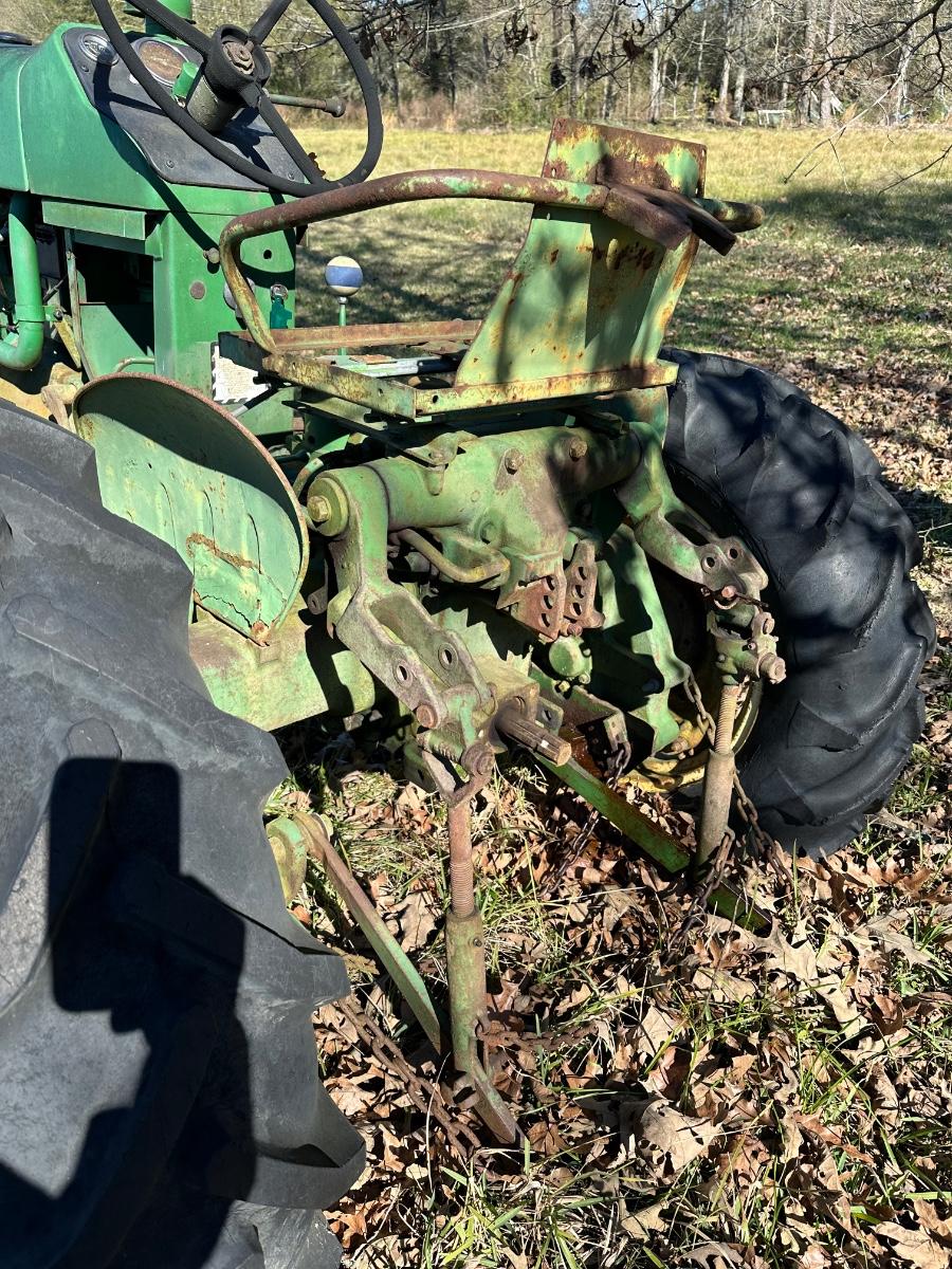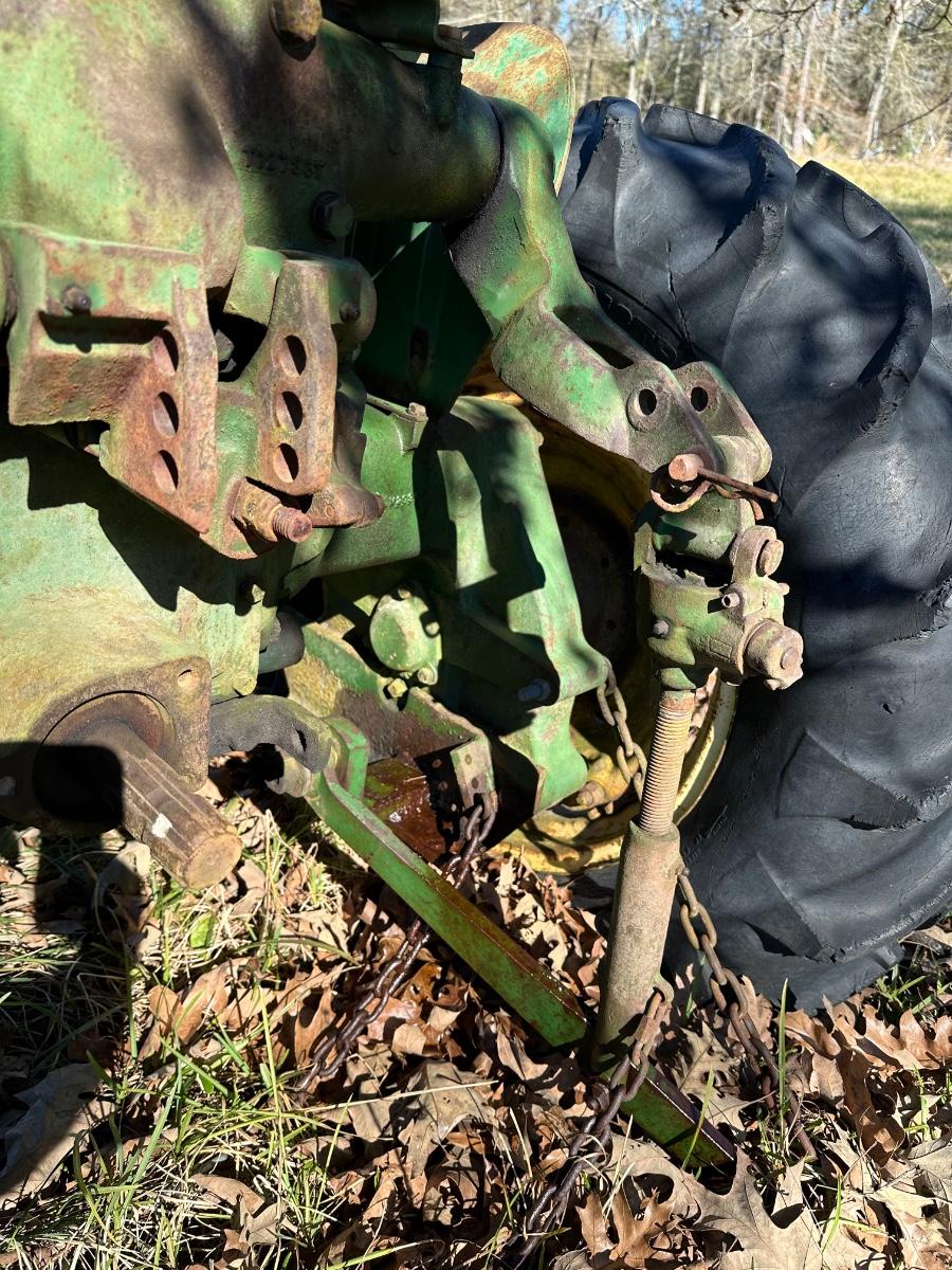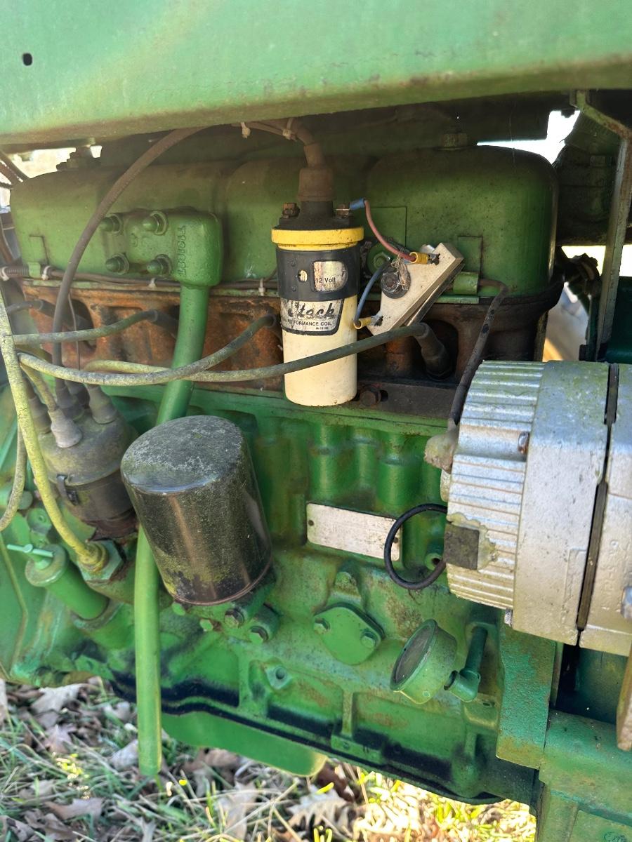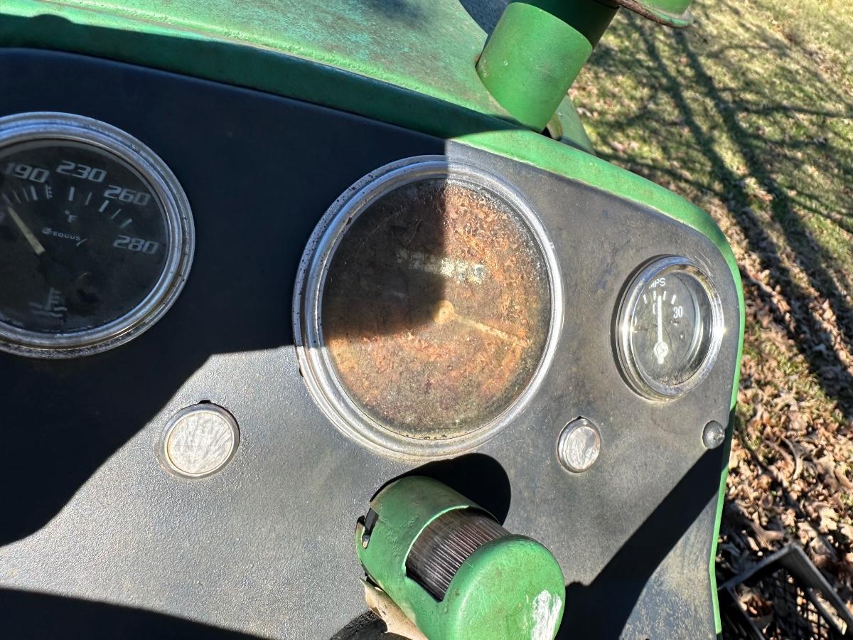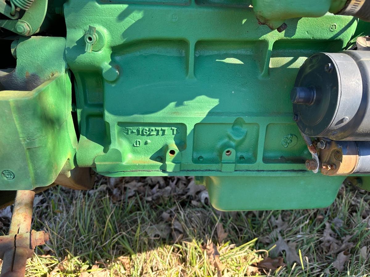 John Deere 1010 RS row-crop gasoline tractor. Engine turns over freely with a jump box. Based on condition, this tractor would most likely run with a carburetor rebuild, if that, and basic fuel system service. Complete tractor with original components, showing normal age, wear, and surface rust. Solid candidate for restoration, light farm use, or collector project.