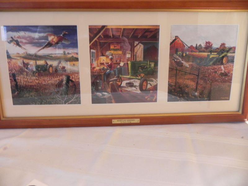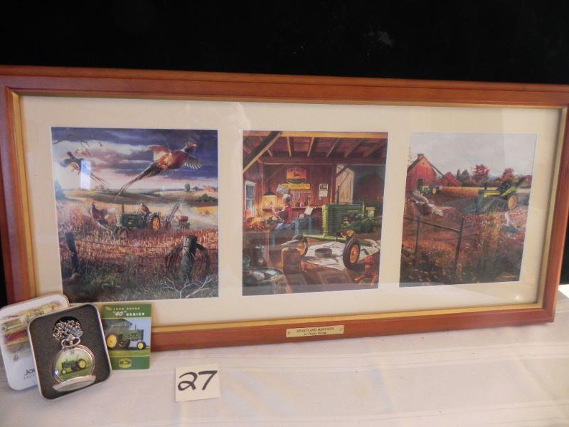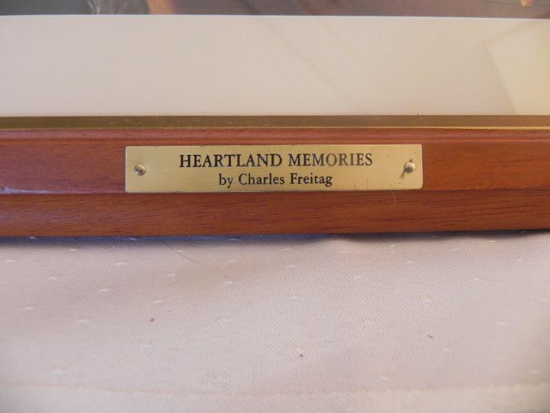 Framed artwork "Heartland Memories" by Charles Freitag 30"Wx14"H, (NIB) Pocket watch still sealed with clear removable seal