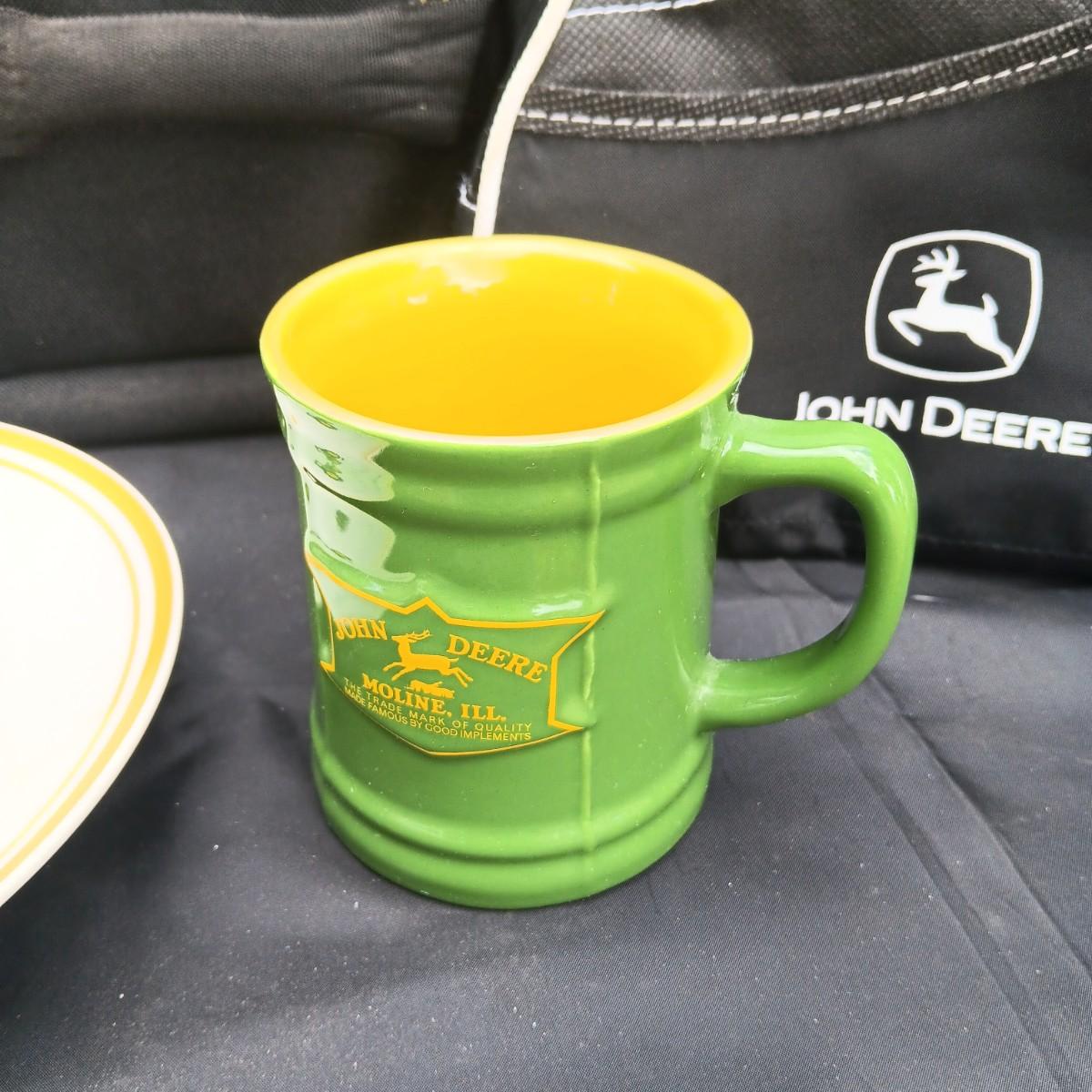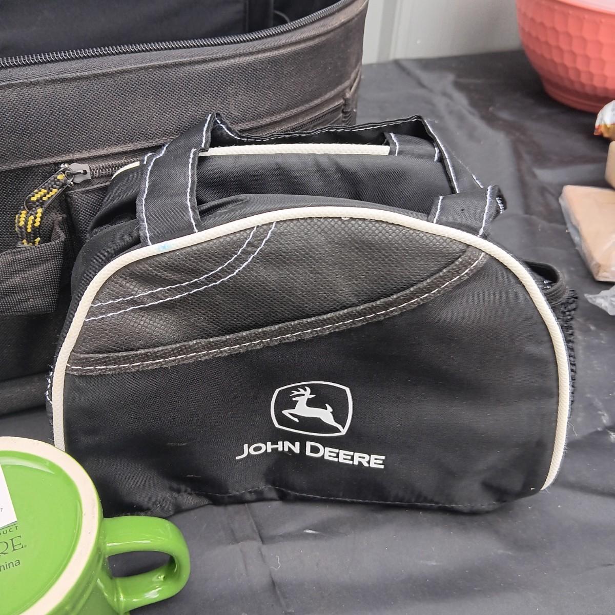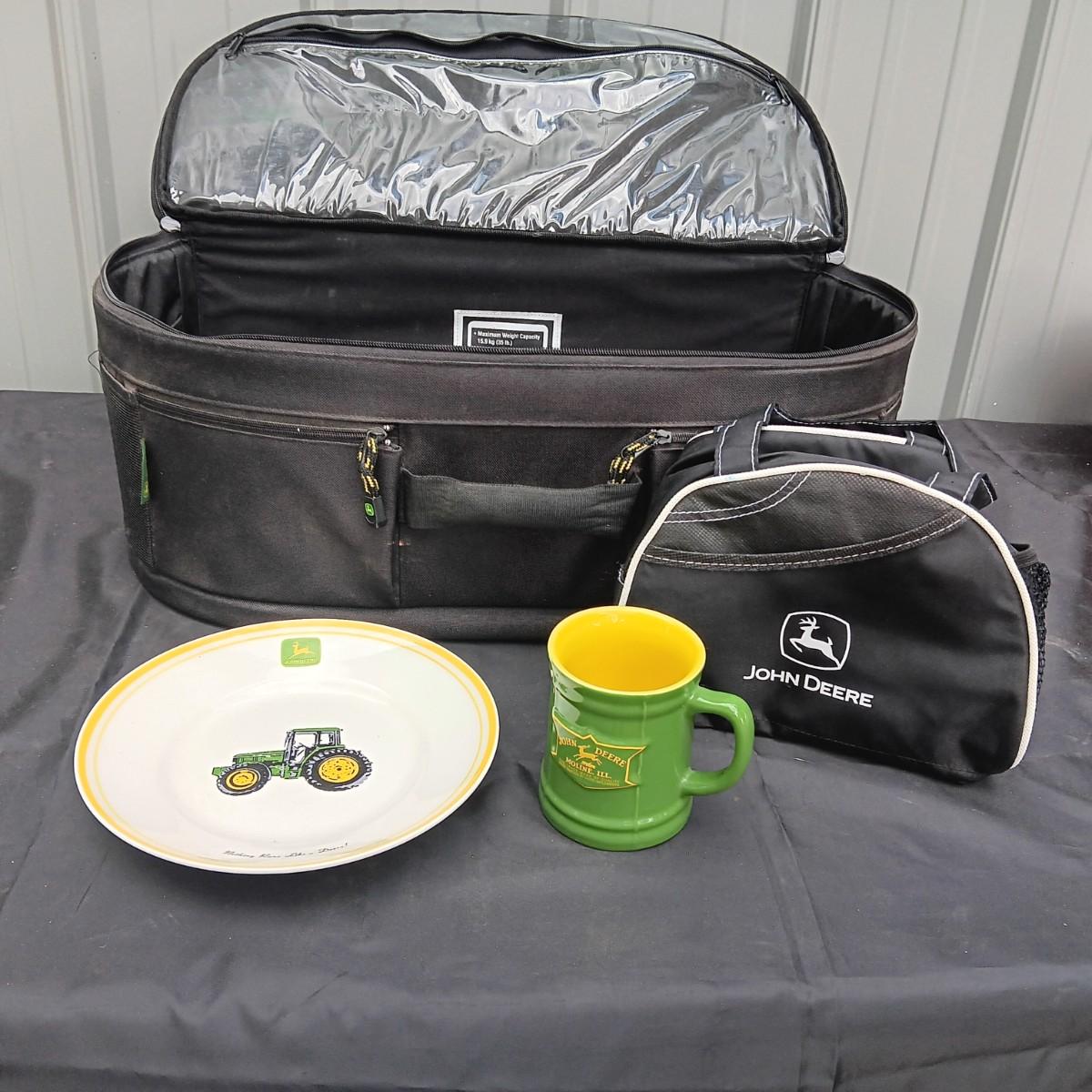 JOHN DEERE CANVAS ZIPPERED BAG WITH PLATE, MUG AND INSULATED LUNCH BAG