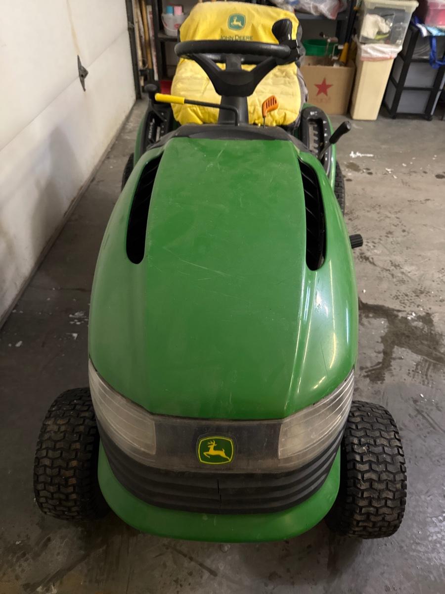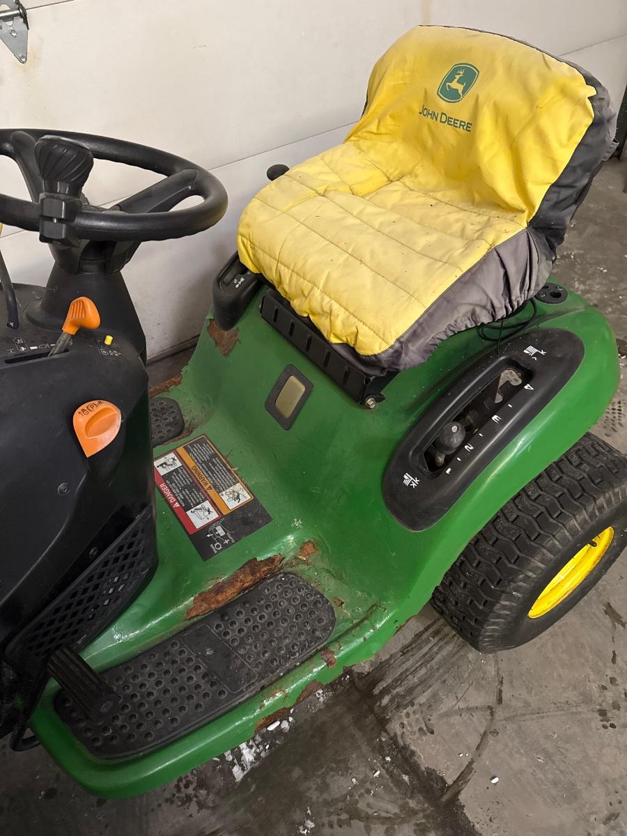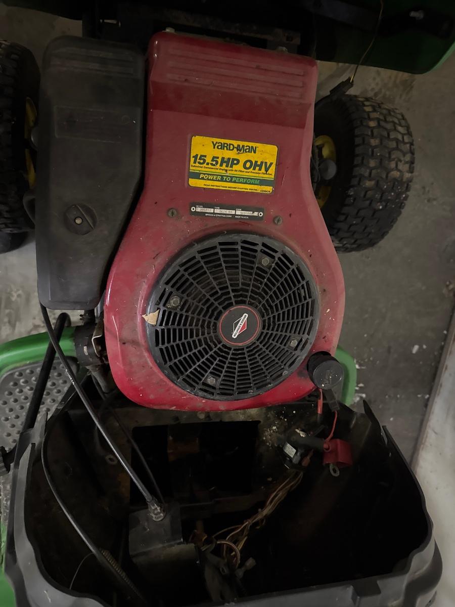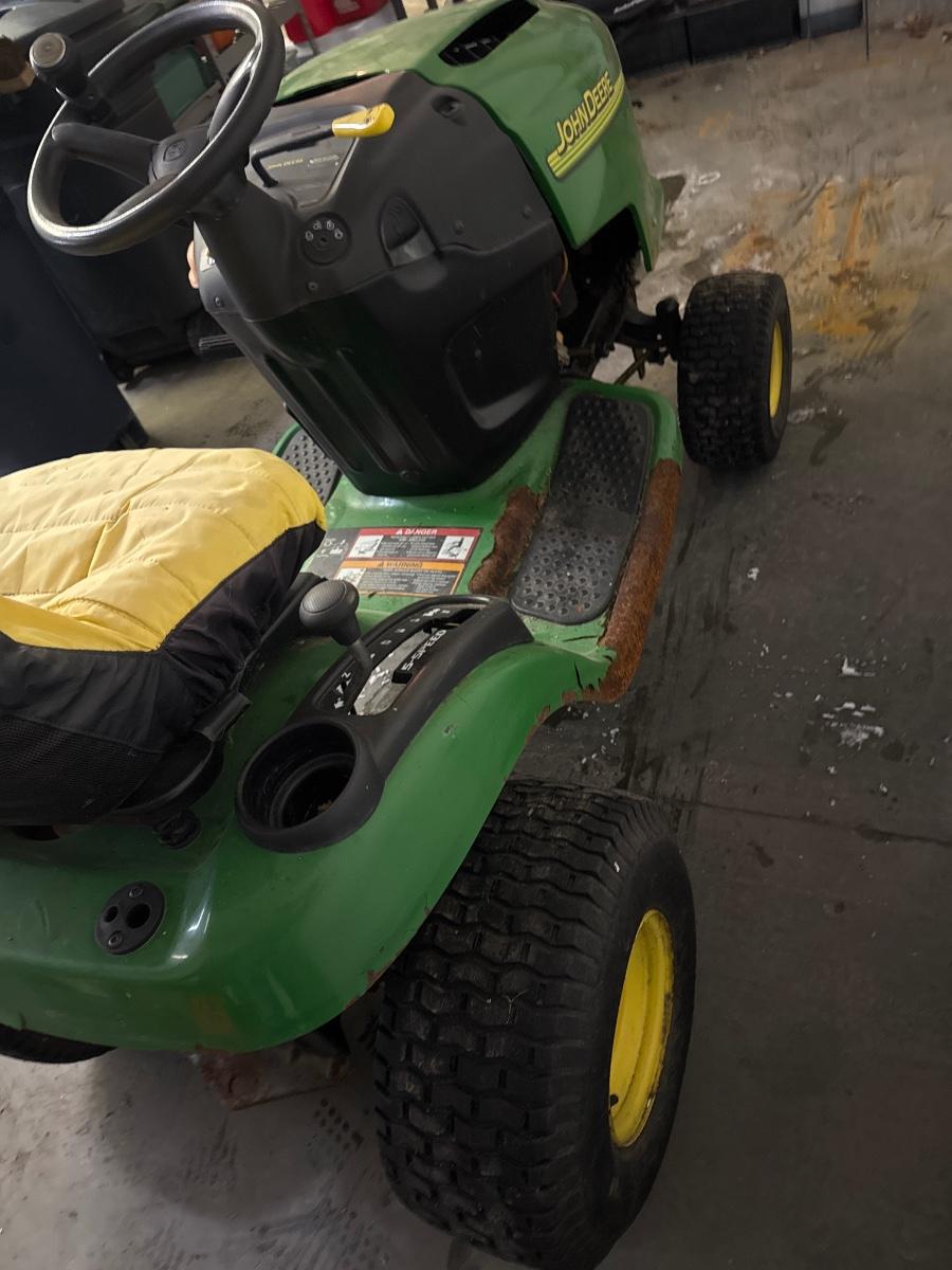 Needs a starter, fuse and a new battery. Includes a 42 inch mower deck not shown in pictures but will be provided at pick up to buyer. The mower deck is currently stored under the deck of the house.