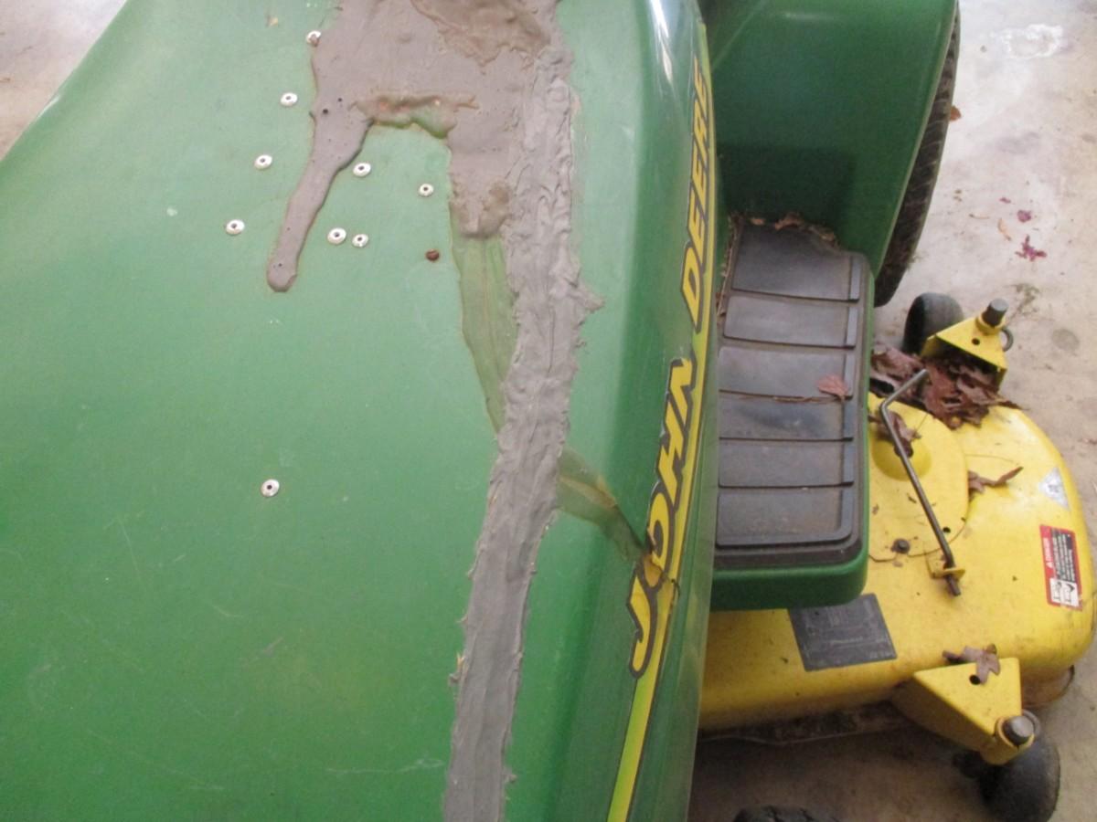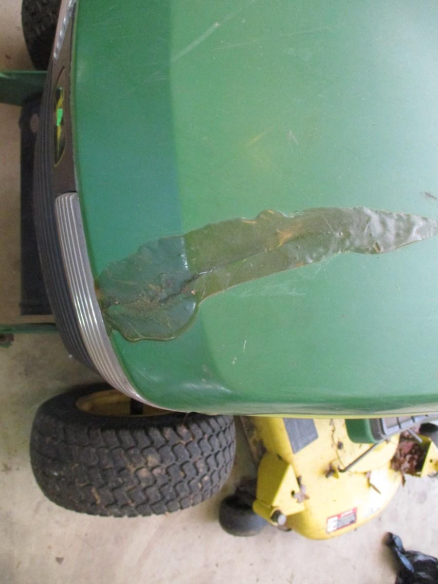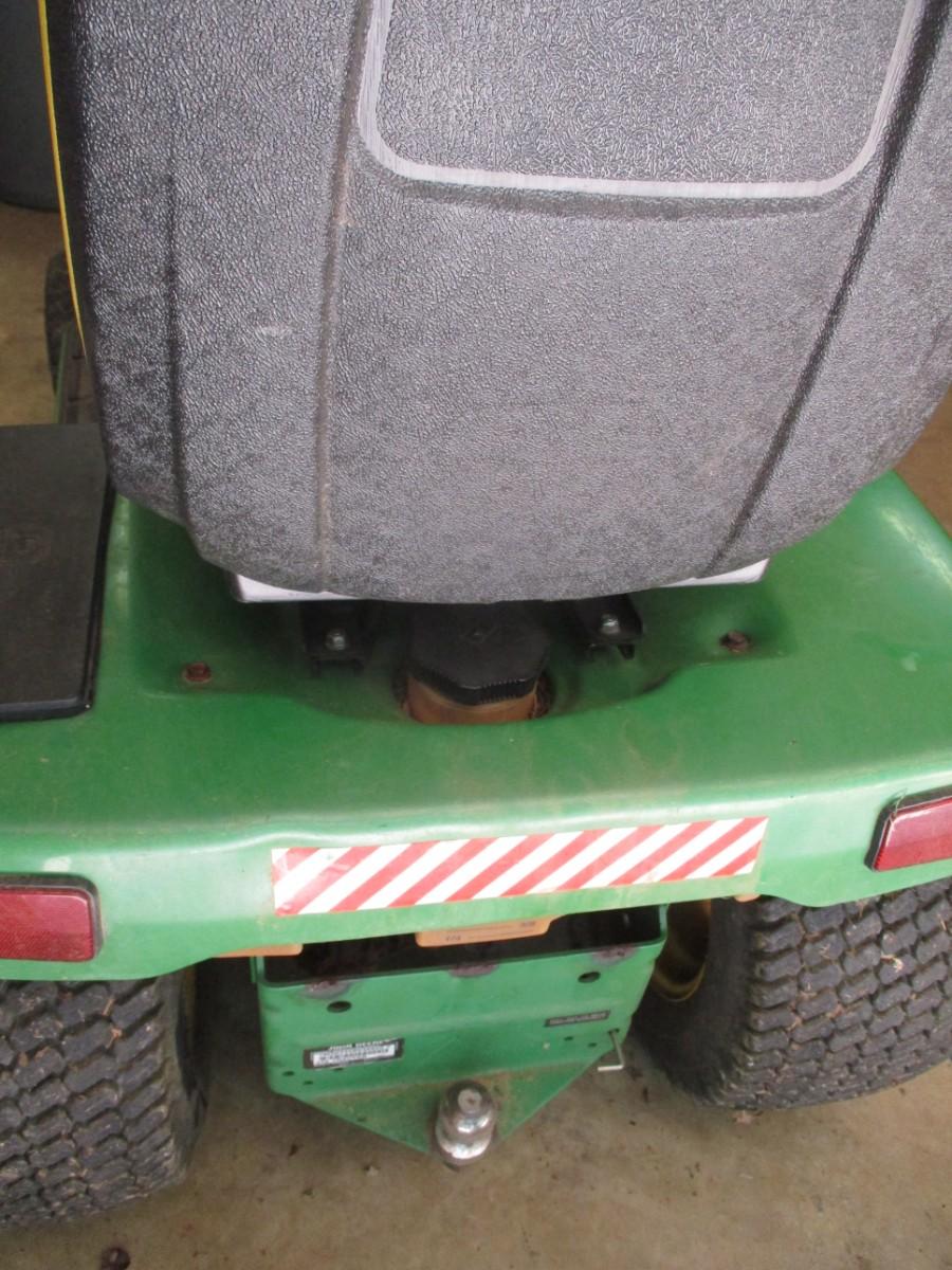 John Deere Lawn Mower Tractor was recently used to mow the estate lawn. Turned over on June 1, 2023. Bring assistance to load, however, in case it does not start on day of pick up. Hood has repair due to break as shown. Mower has approx 1315 hours.