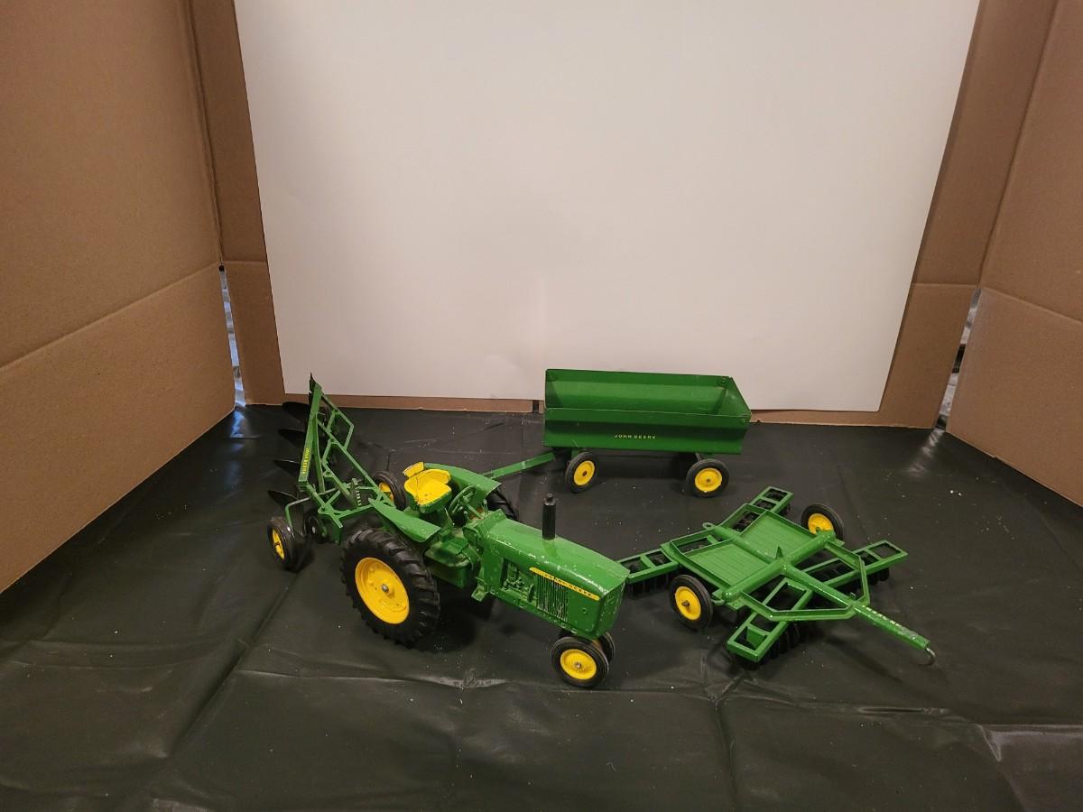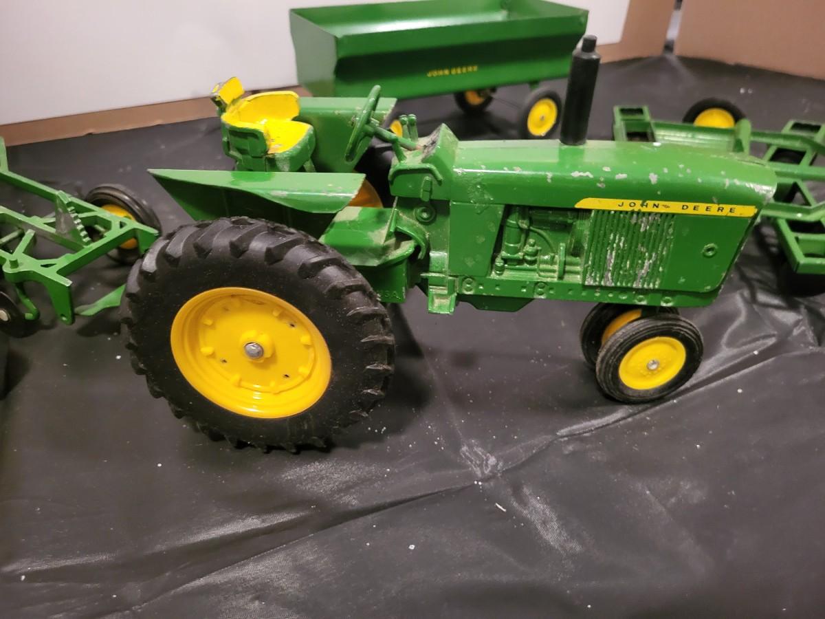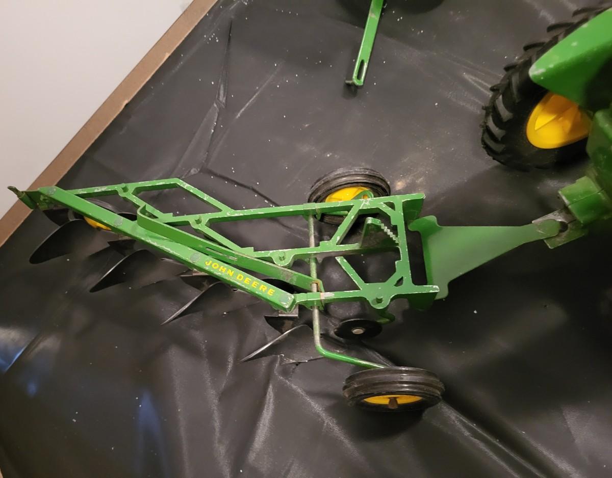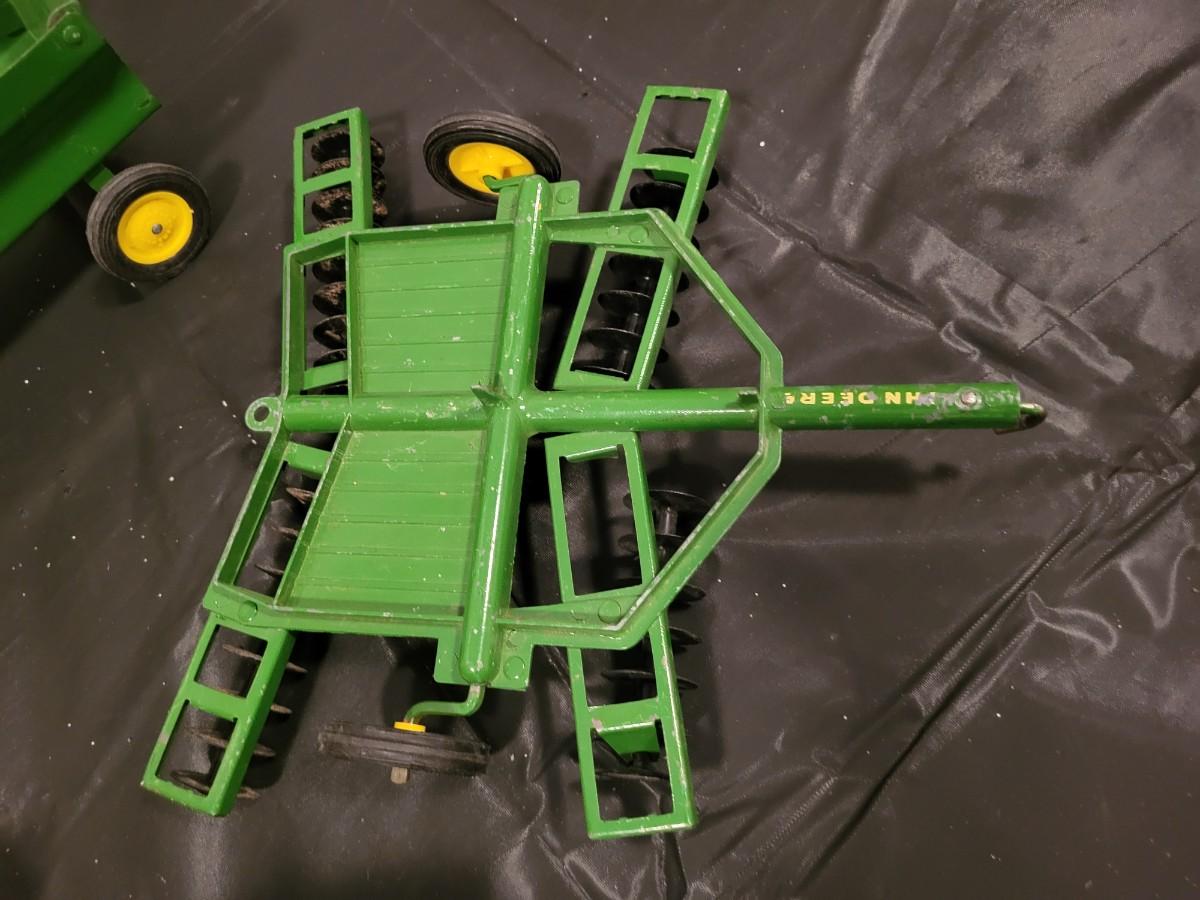JOHN DEERE METAL TRACTOR WITH IMPLEMENTS