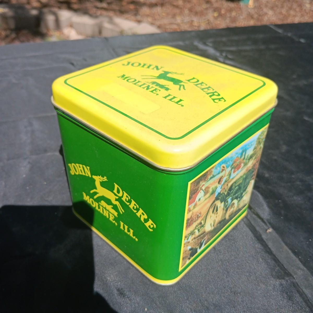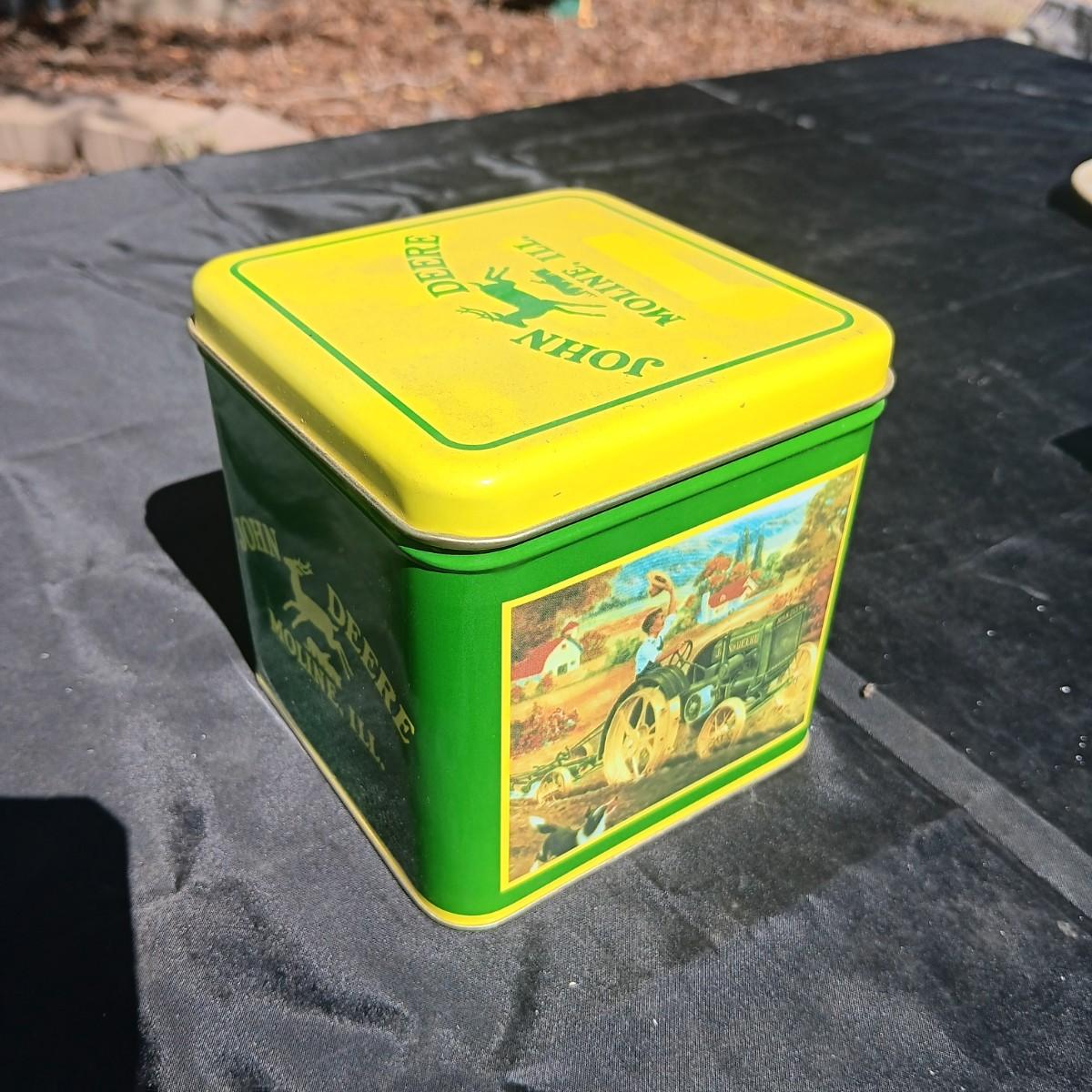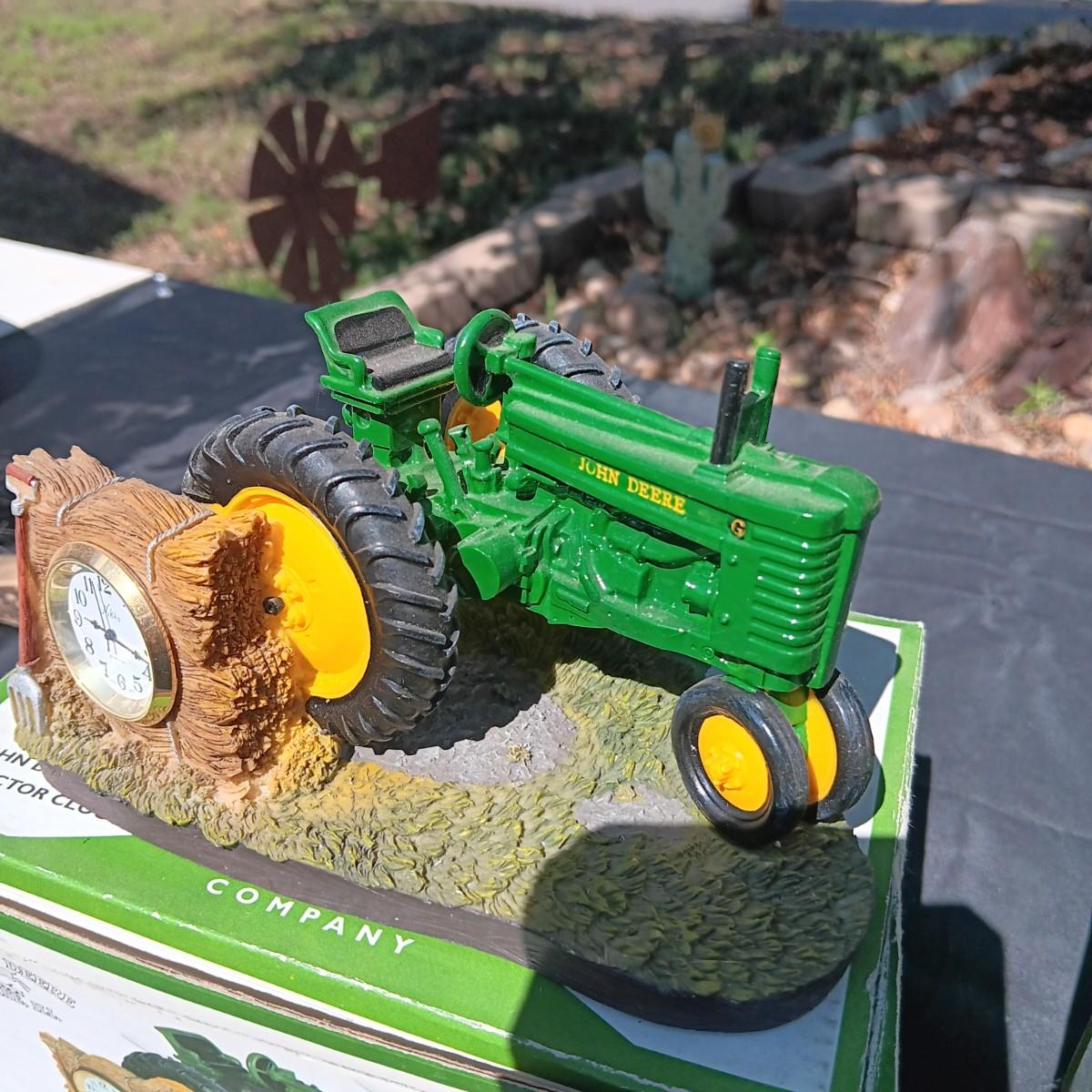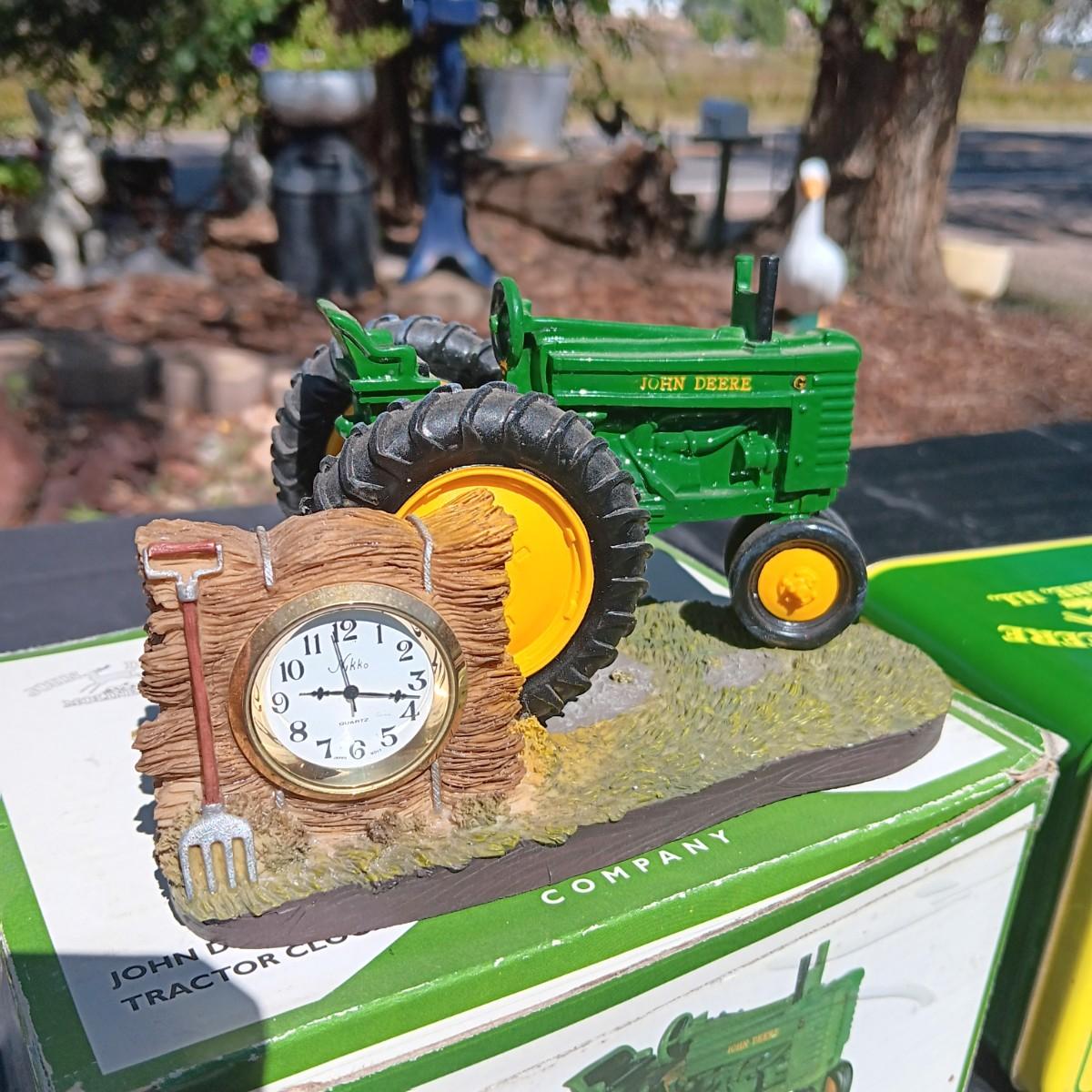 JOHN DEERE MODEL G TRACTOR CLOCK AND A TIN
