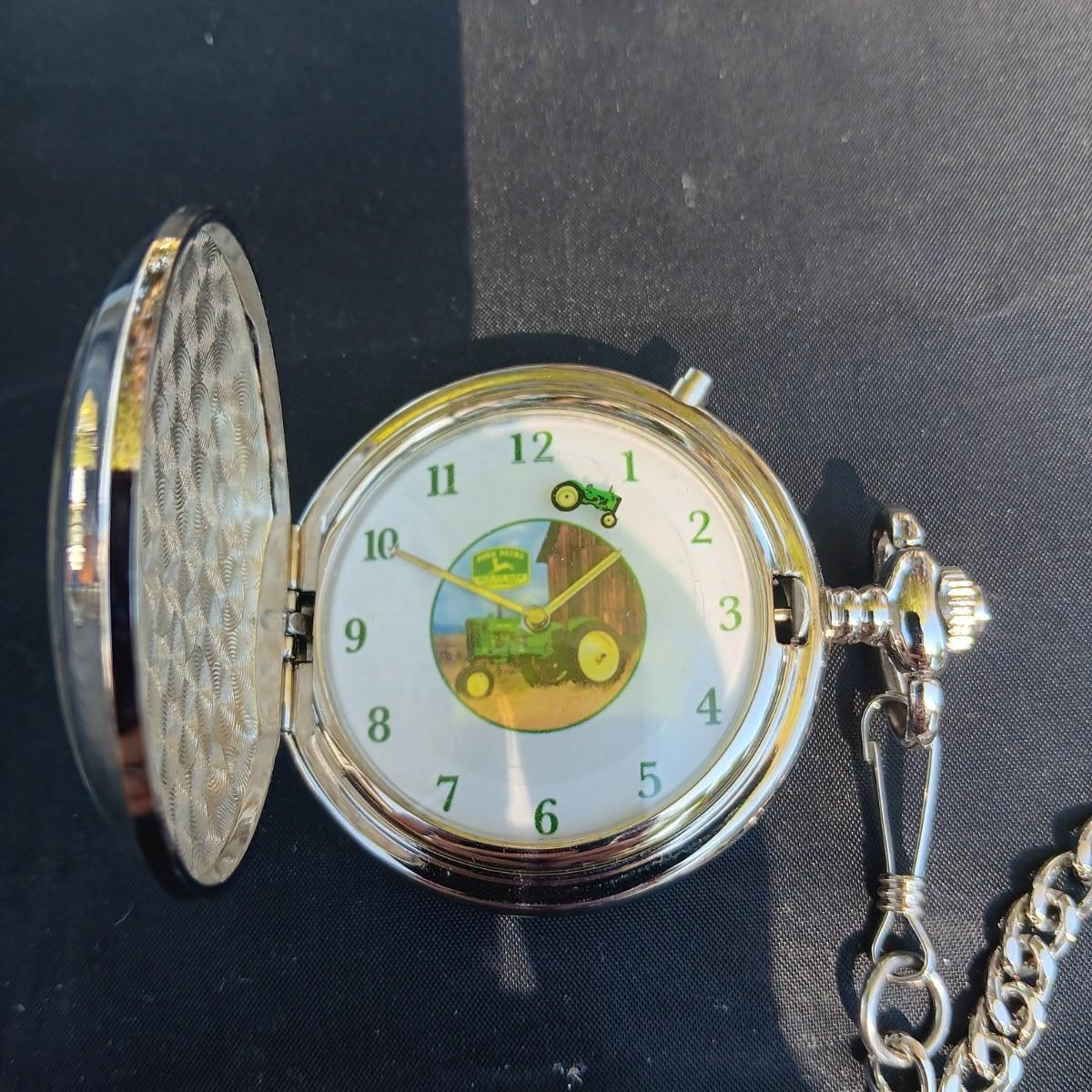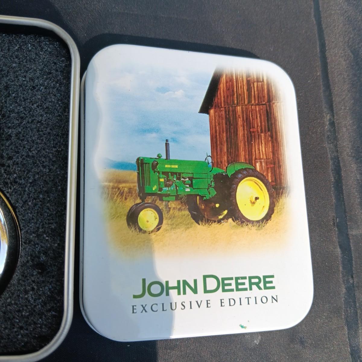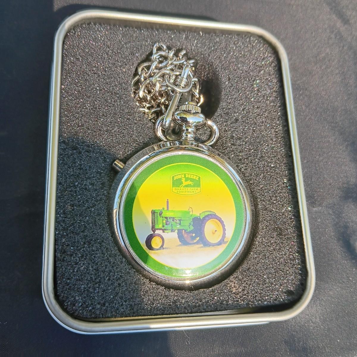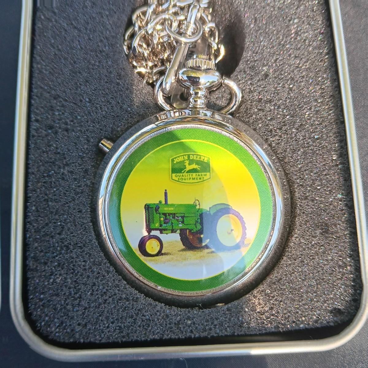 JOHN DEERE POCKET WATCH IN TIN CONTAINER