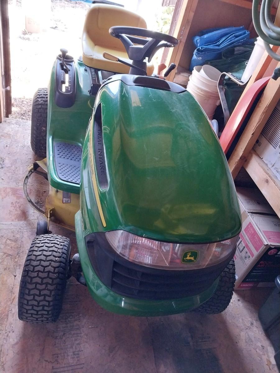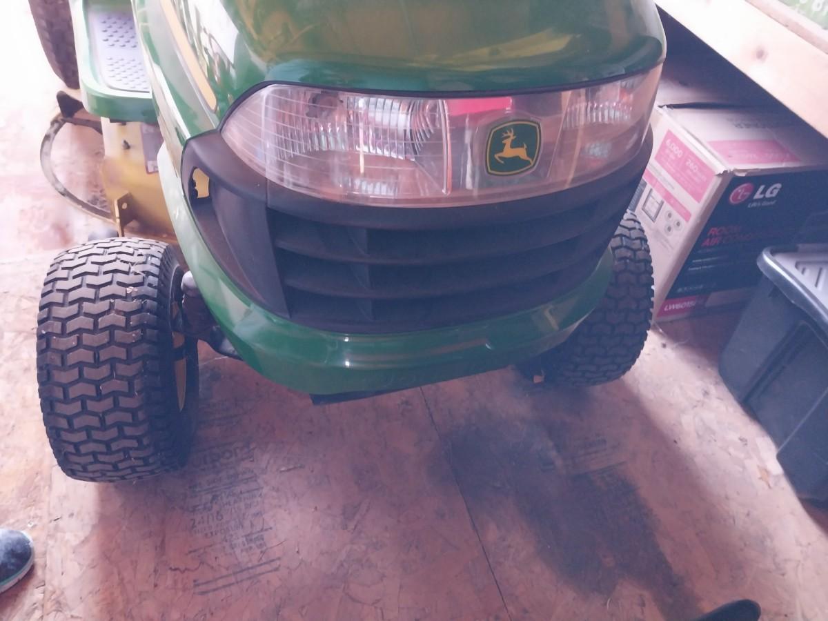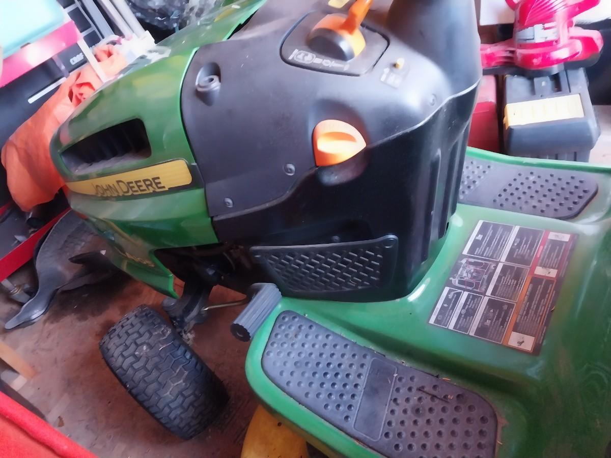 JOHN DEERE RIDING LAWN MOWER WITH TWIN BAGGER