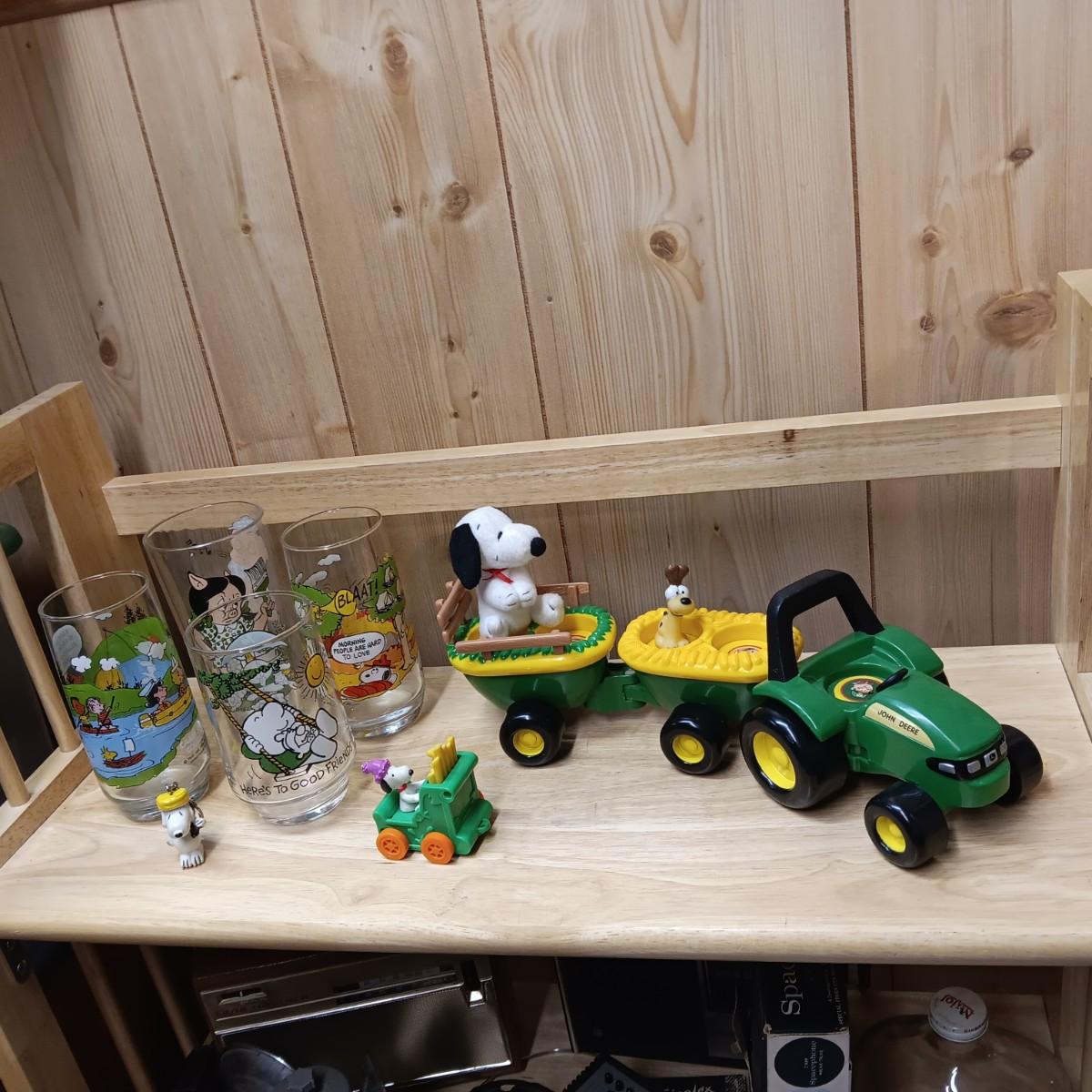 JOHN DEERE TOY, VINTAGE CARTOON CHARACTER GLASSES AND MORE