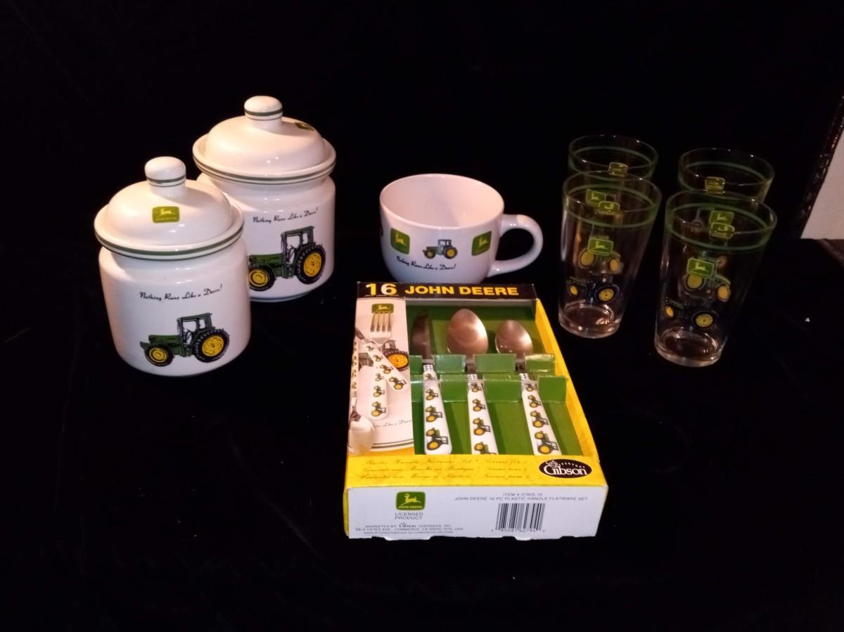 16 PC FLATWARE, 2 CANISTERS, 4 GLASSES AND 1 CUP