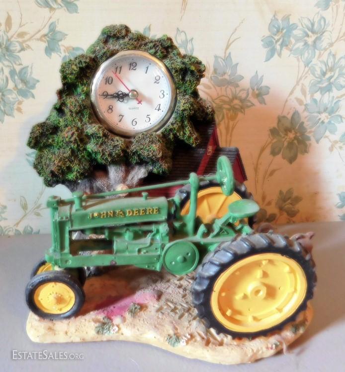 Heavy resin John Deere Tractor clock. Battery operated. Good condition. Working condition not known at this time.