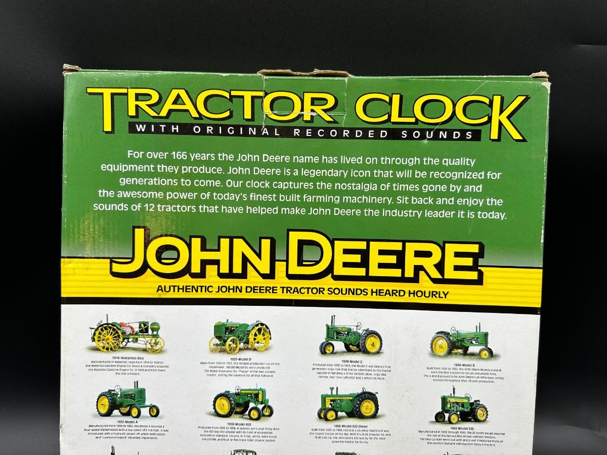 Includes original retail box. Box shows shelf/storage wear; clock appears clean and complete. Great display piece for John Deere collectors, farmers, or man-cave décor.