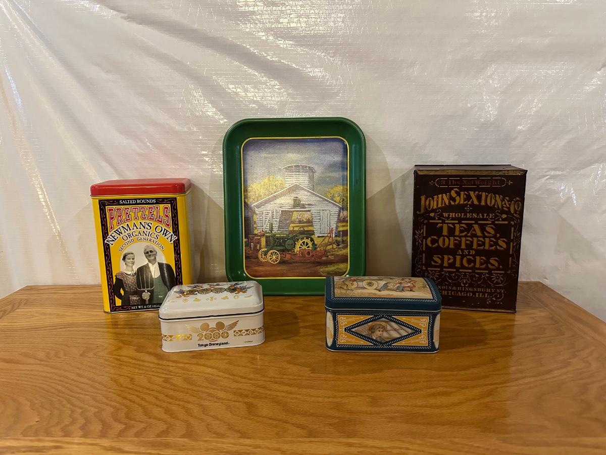 JOHN DEERE TRAY AND TIN CANISTERS