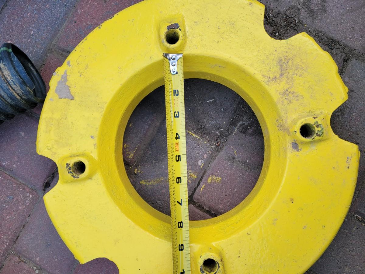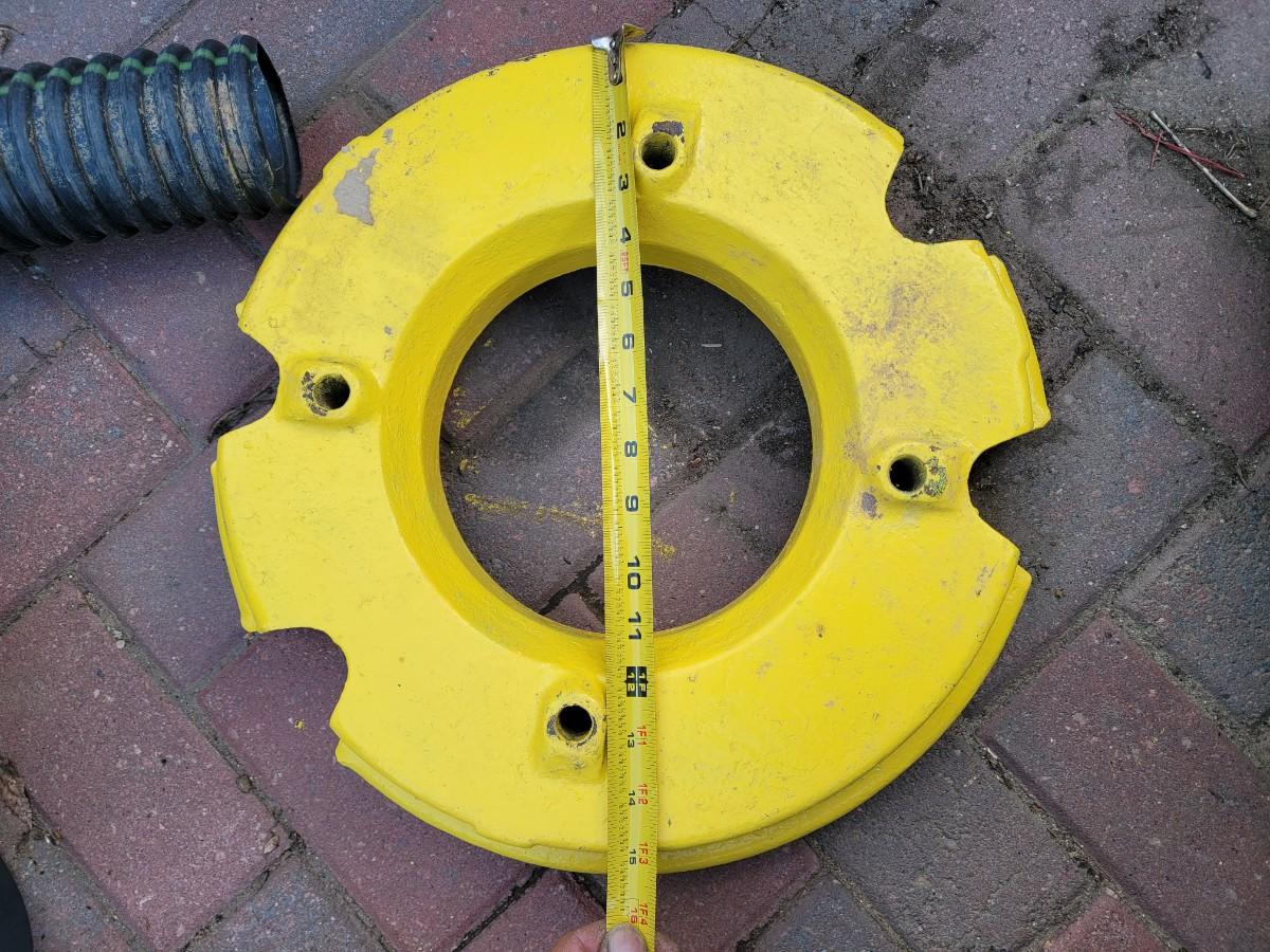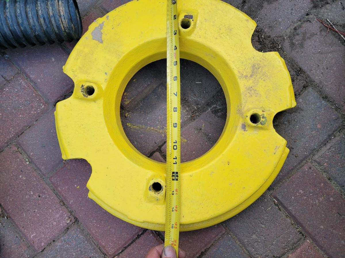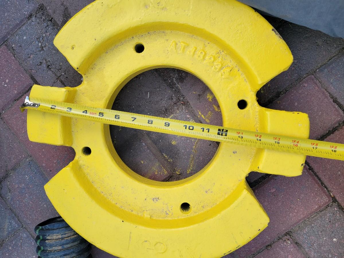 See photos for measurements and complete description. I could not find that number, they may not be John Deere but they do weigh a hundred pounds and if you have questions about the measurements please call or email. The four side grooves are somewhat beveled, see the difference in measurements.