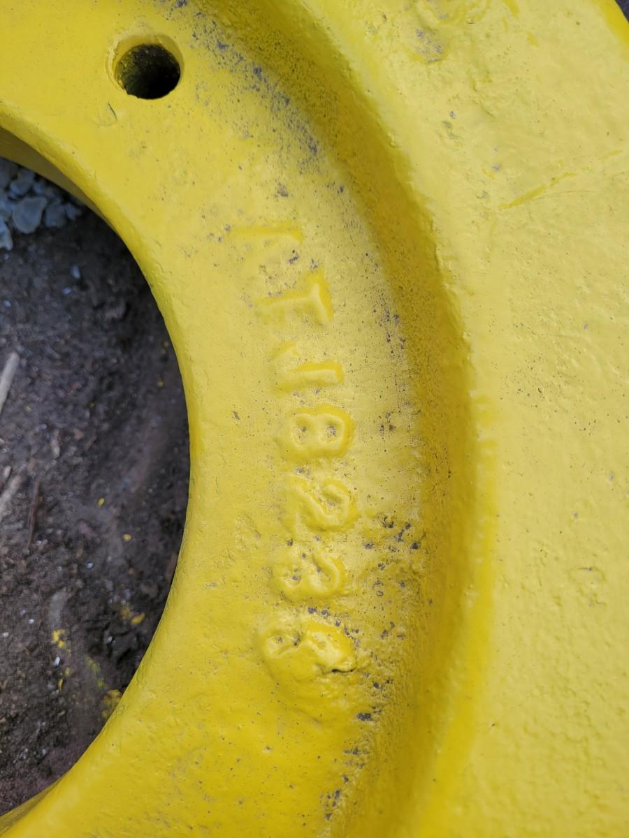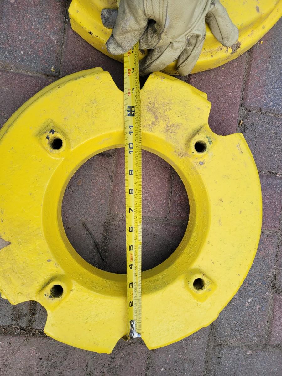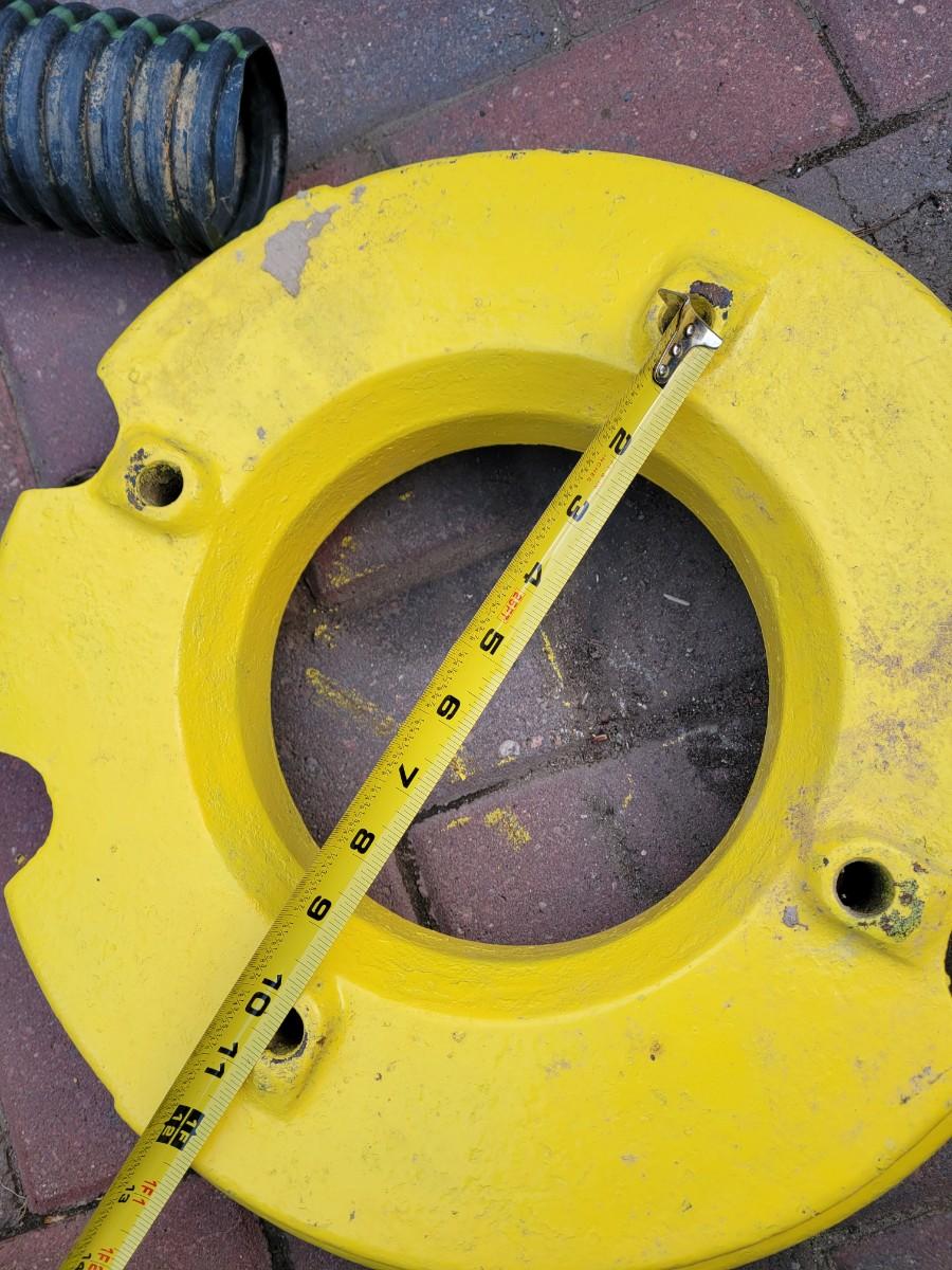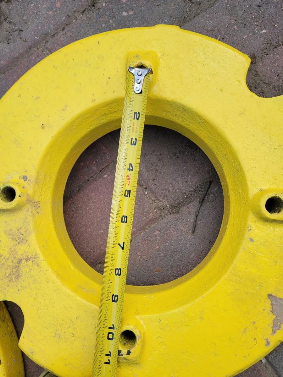 See photos for measurements and complete description. I could not find that number, they may not be John Deere but they do weigh a hundred pounds and if you have questions about the measurements please call or email. The four side grooves are somewhat beveled, see the difference in measurements.