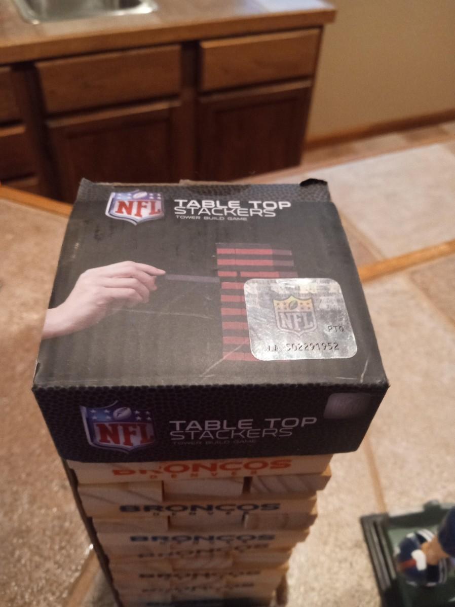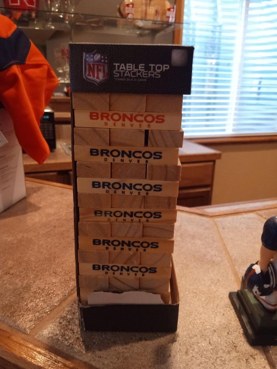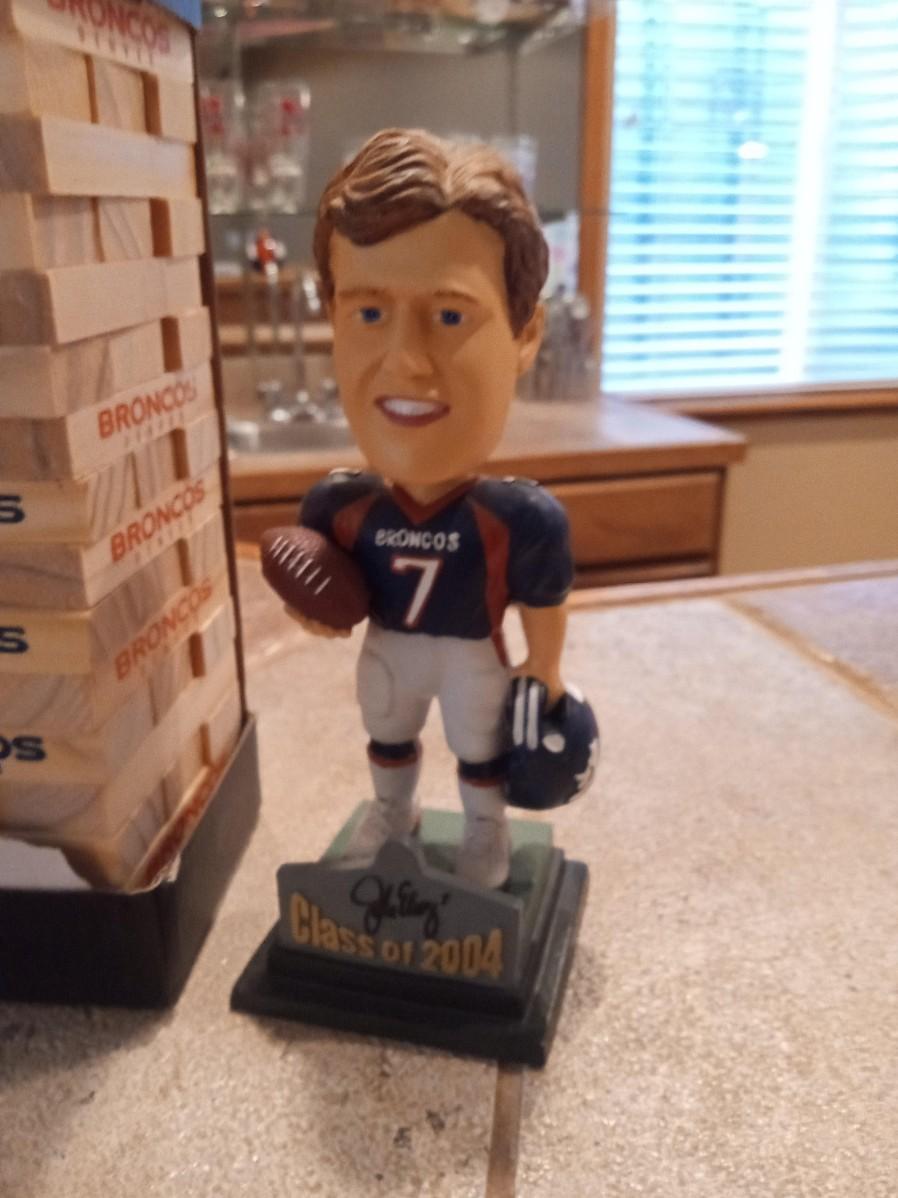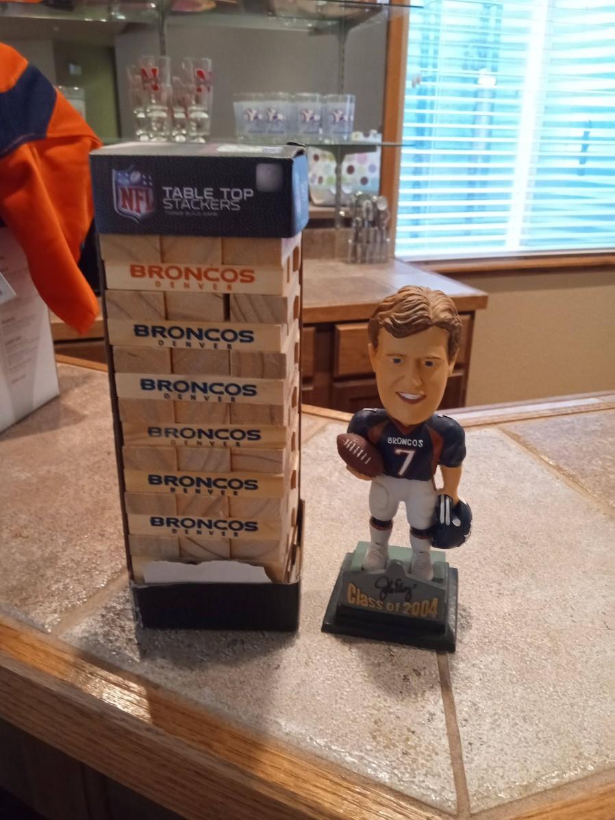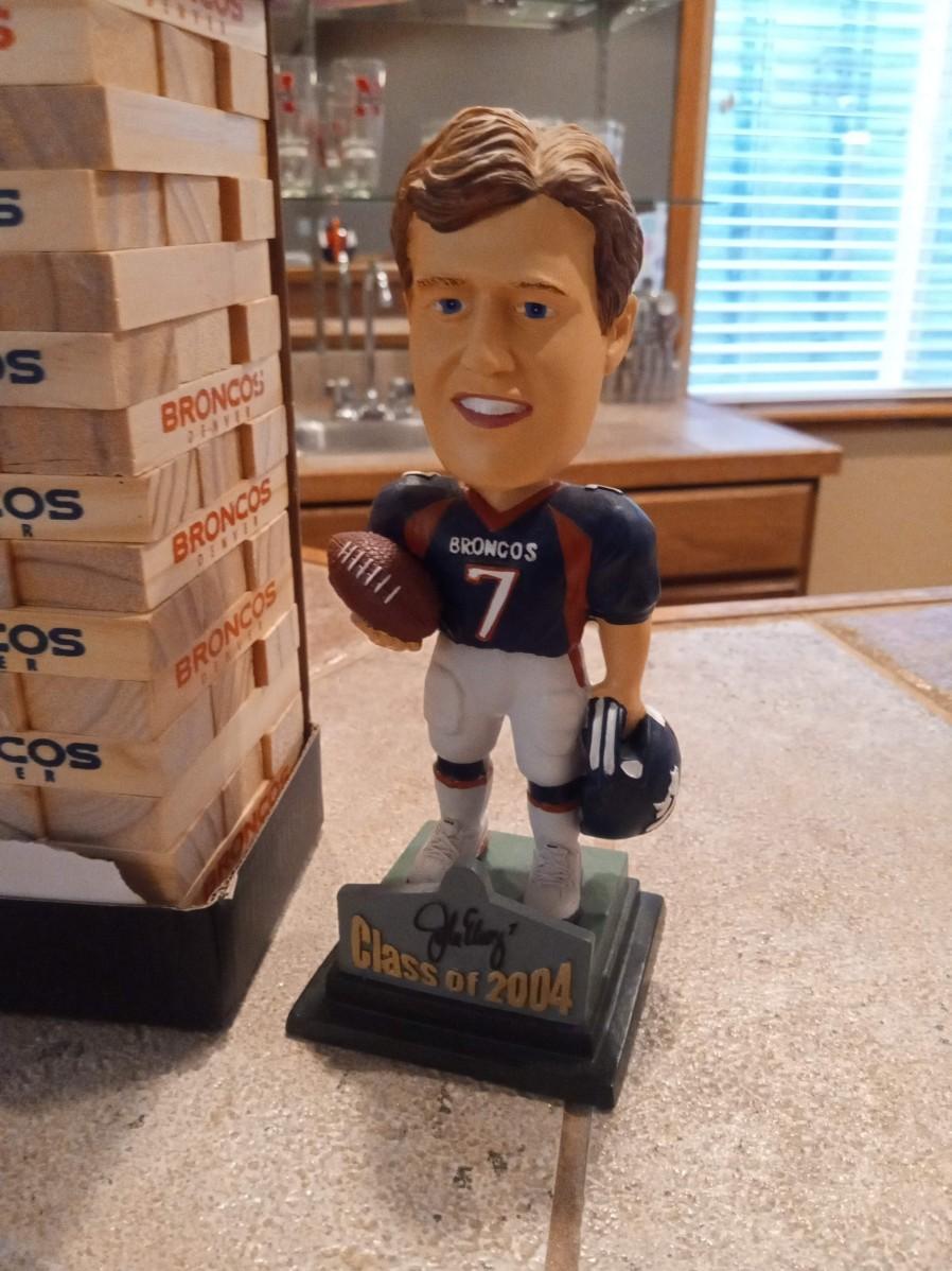 JOHN ELWAY BOBBLEHEAD AND BRONCOS JENGA TYPE GAME