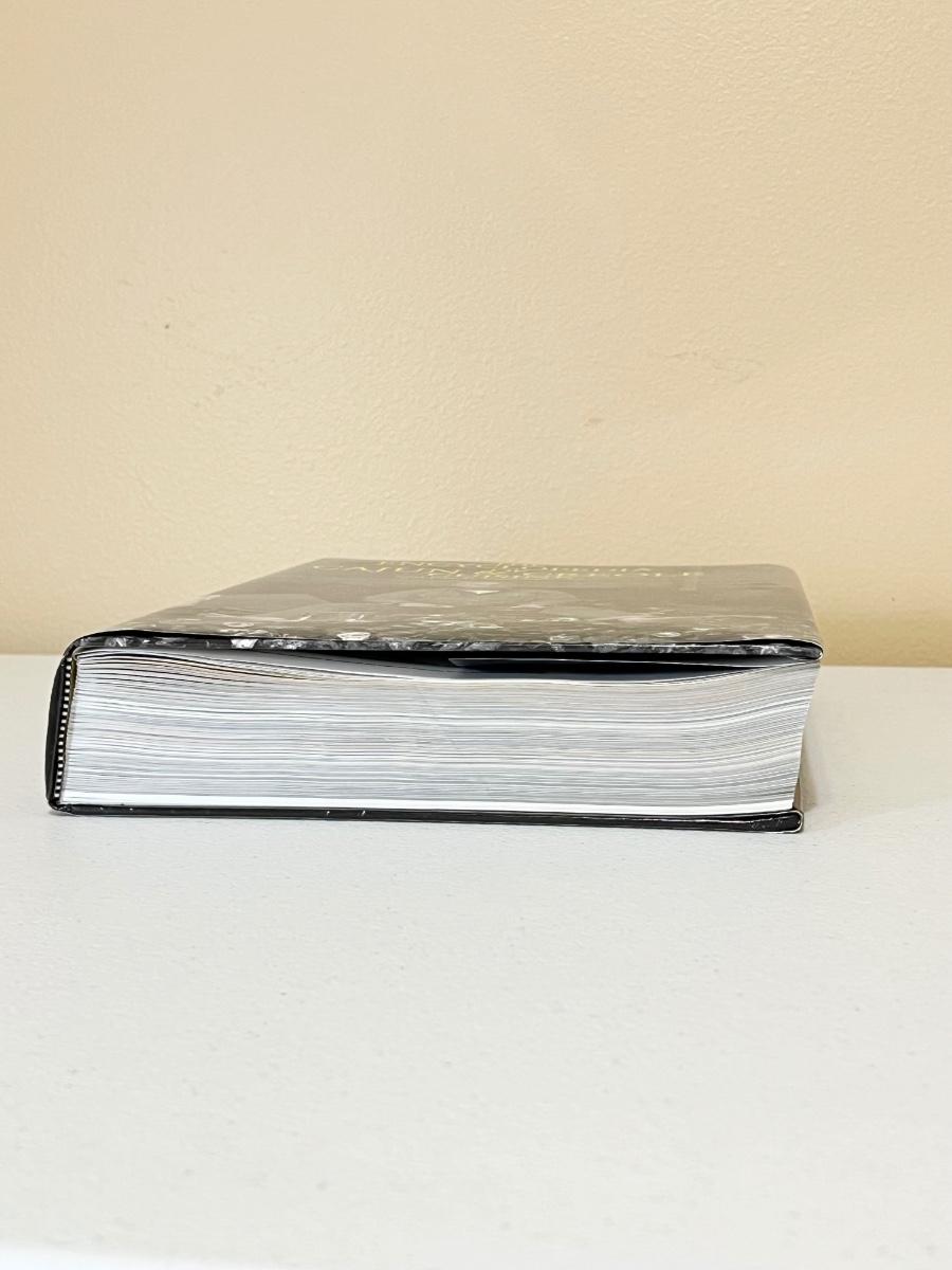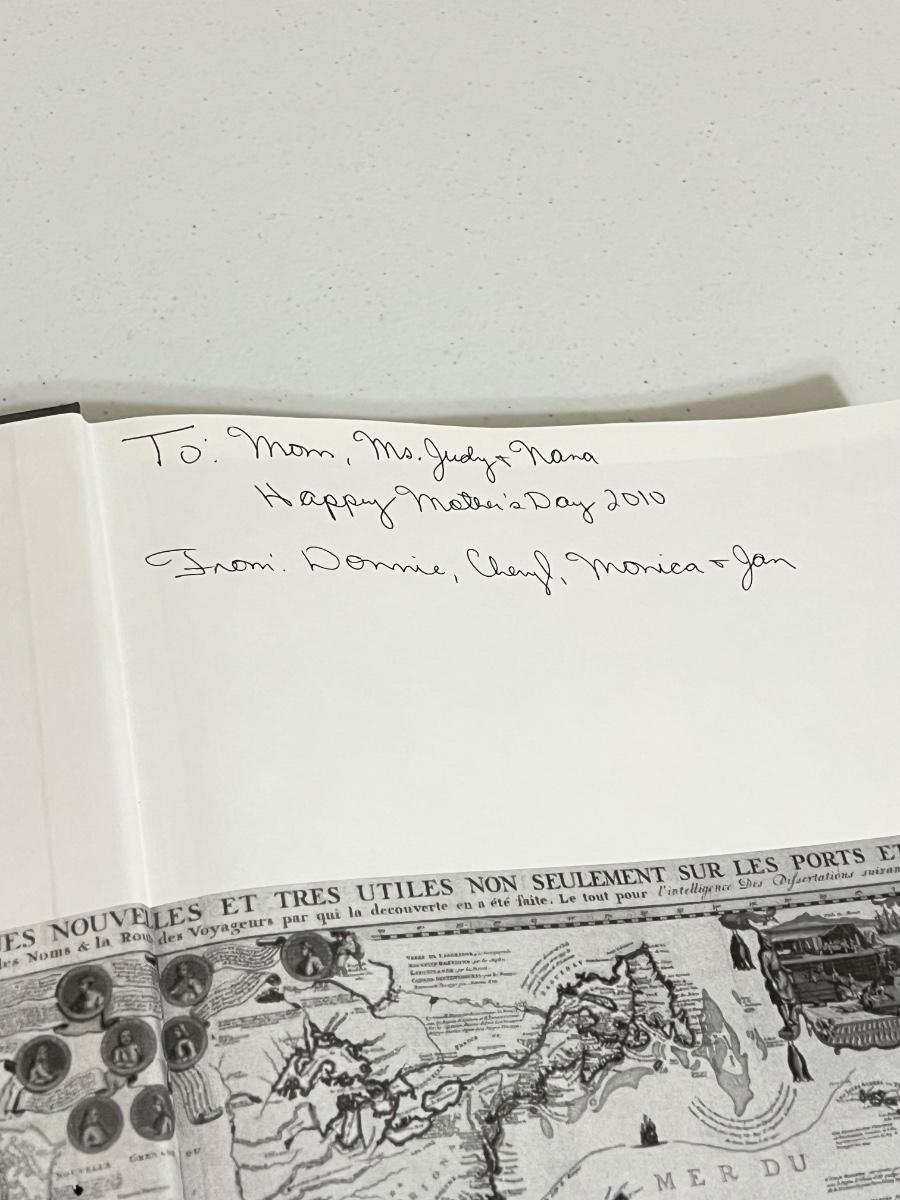 The book does have a dedication from family on the inside ~ The book is a little warped from being faced down, see photos