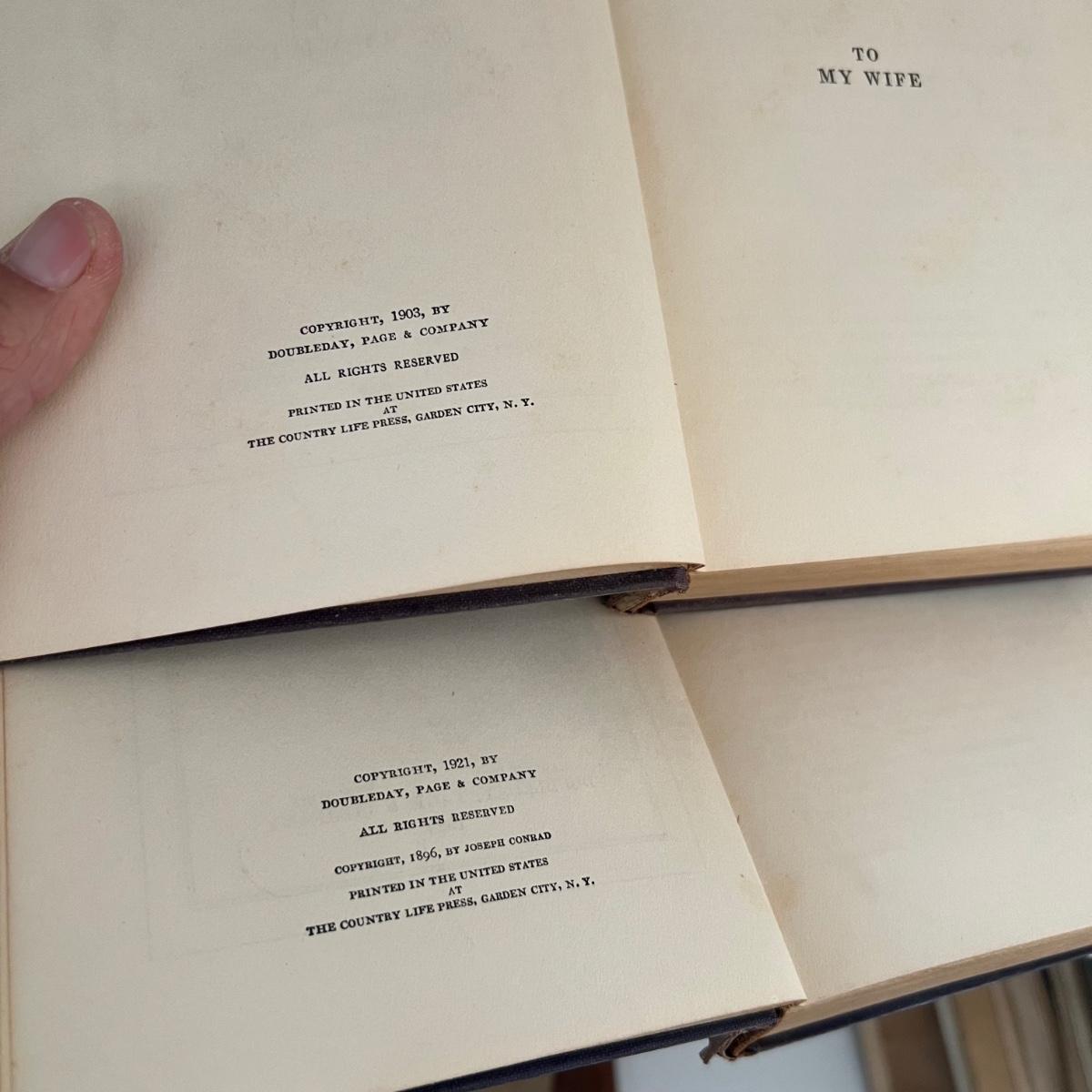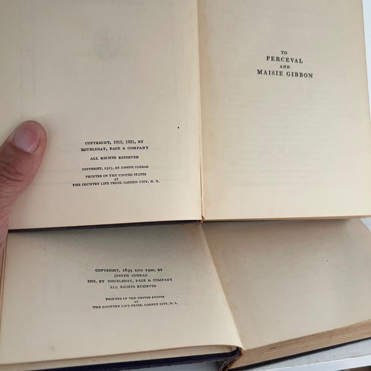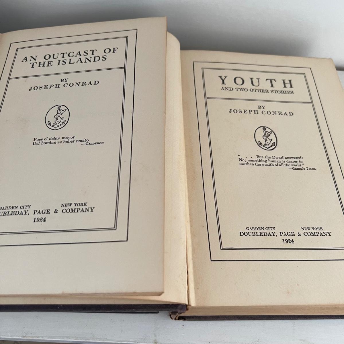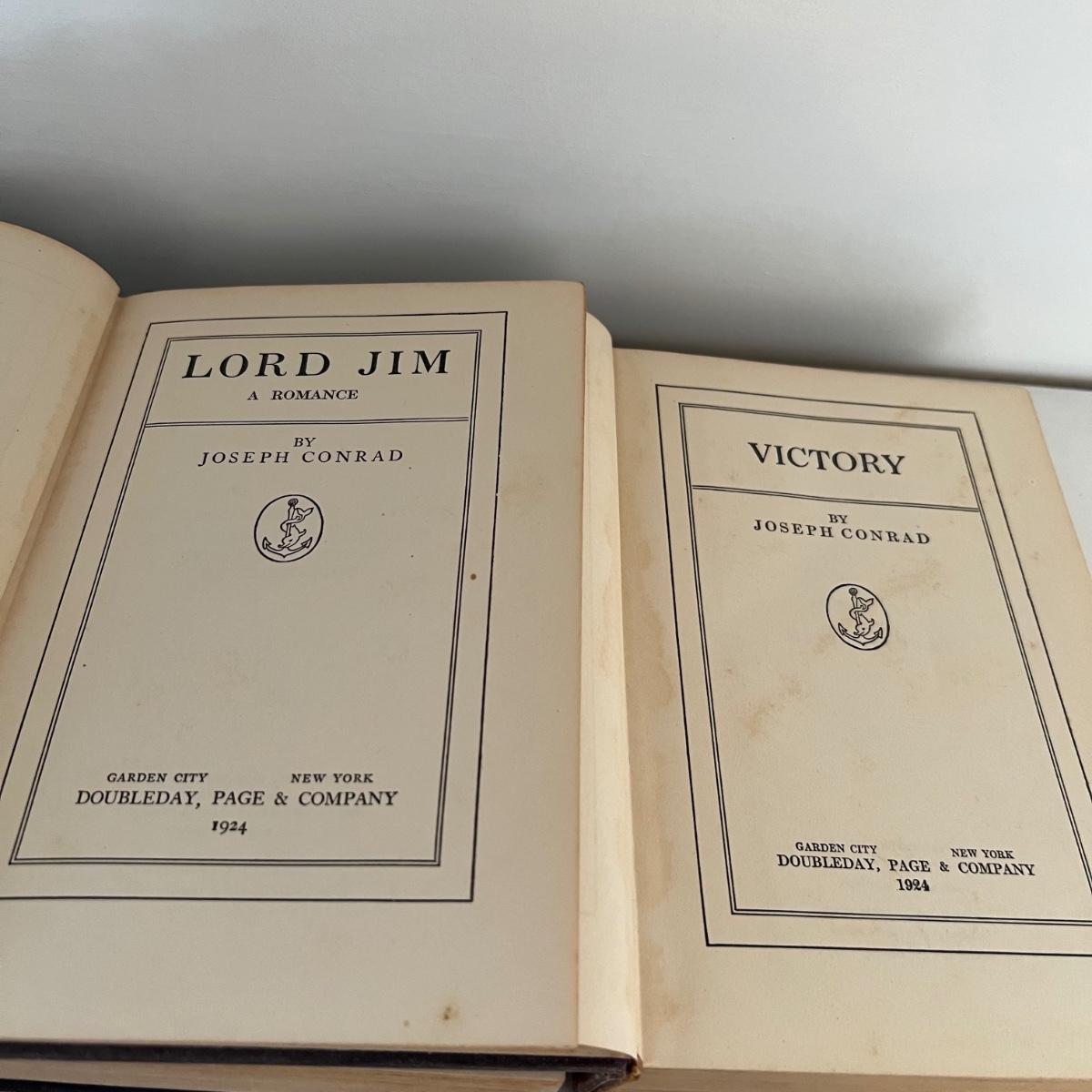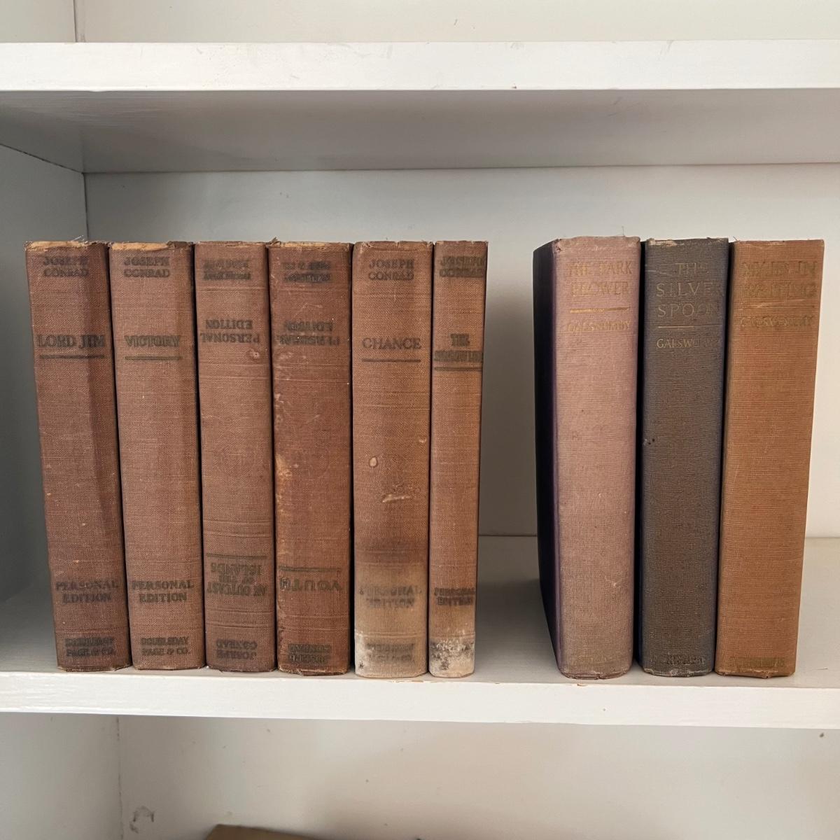 Six Joseph Conrad and three John Galsworthy book collections. See images for titles and more information. There are some condition issues shown in images that includes some fading, stains etc.