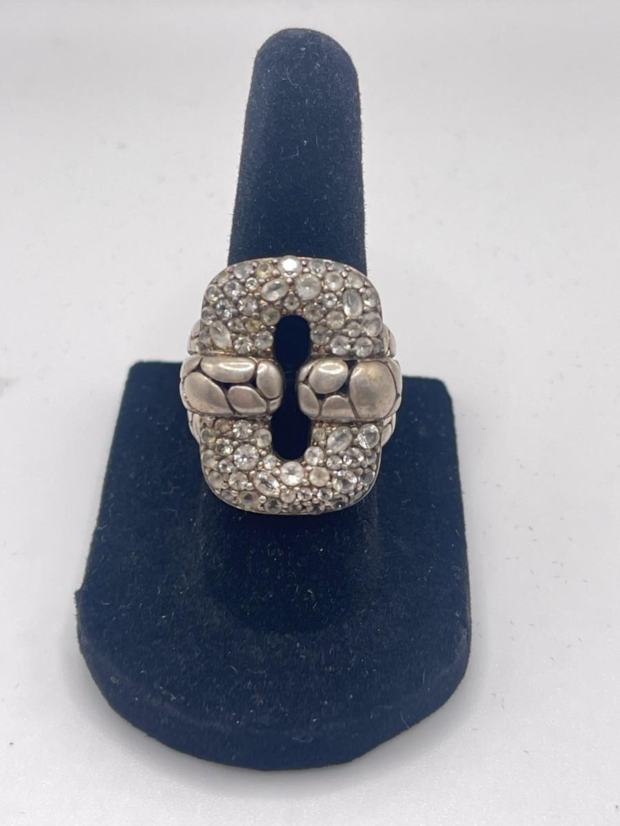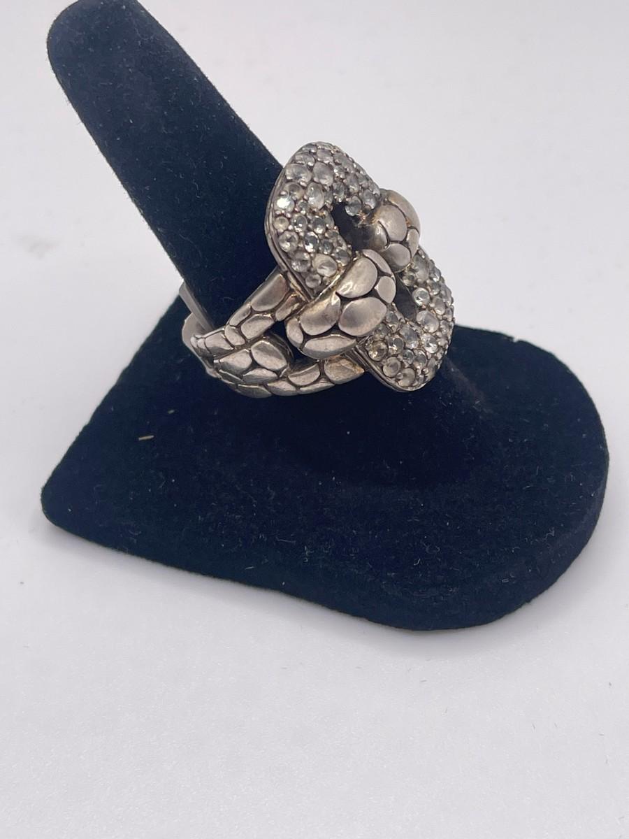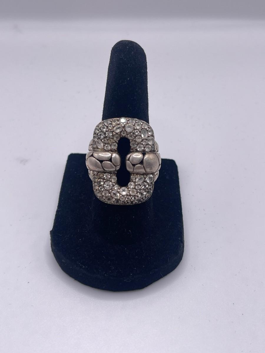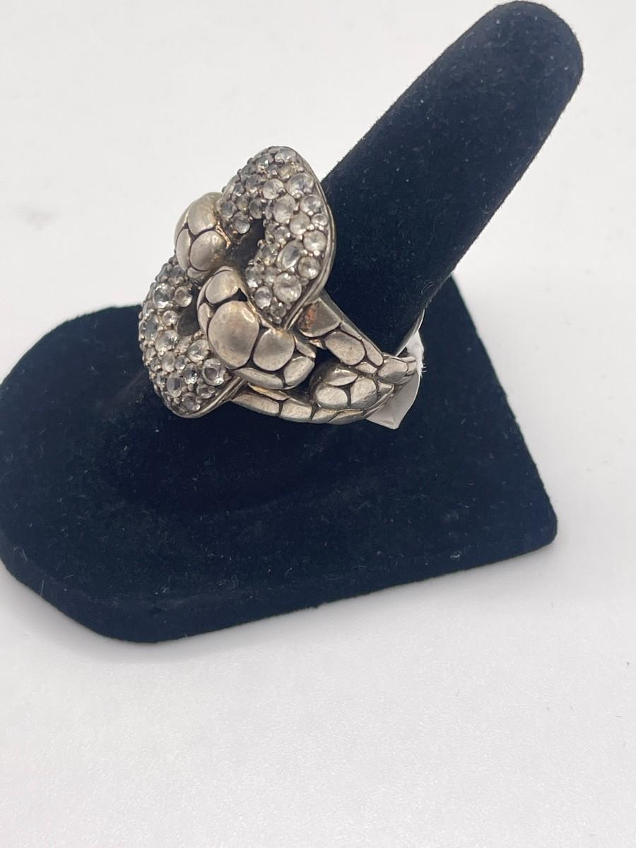 John Hardy sterling silver Kali lava pave white sapphire ring. Size 7.
