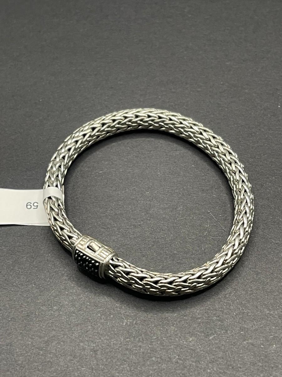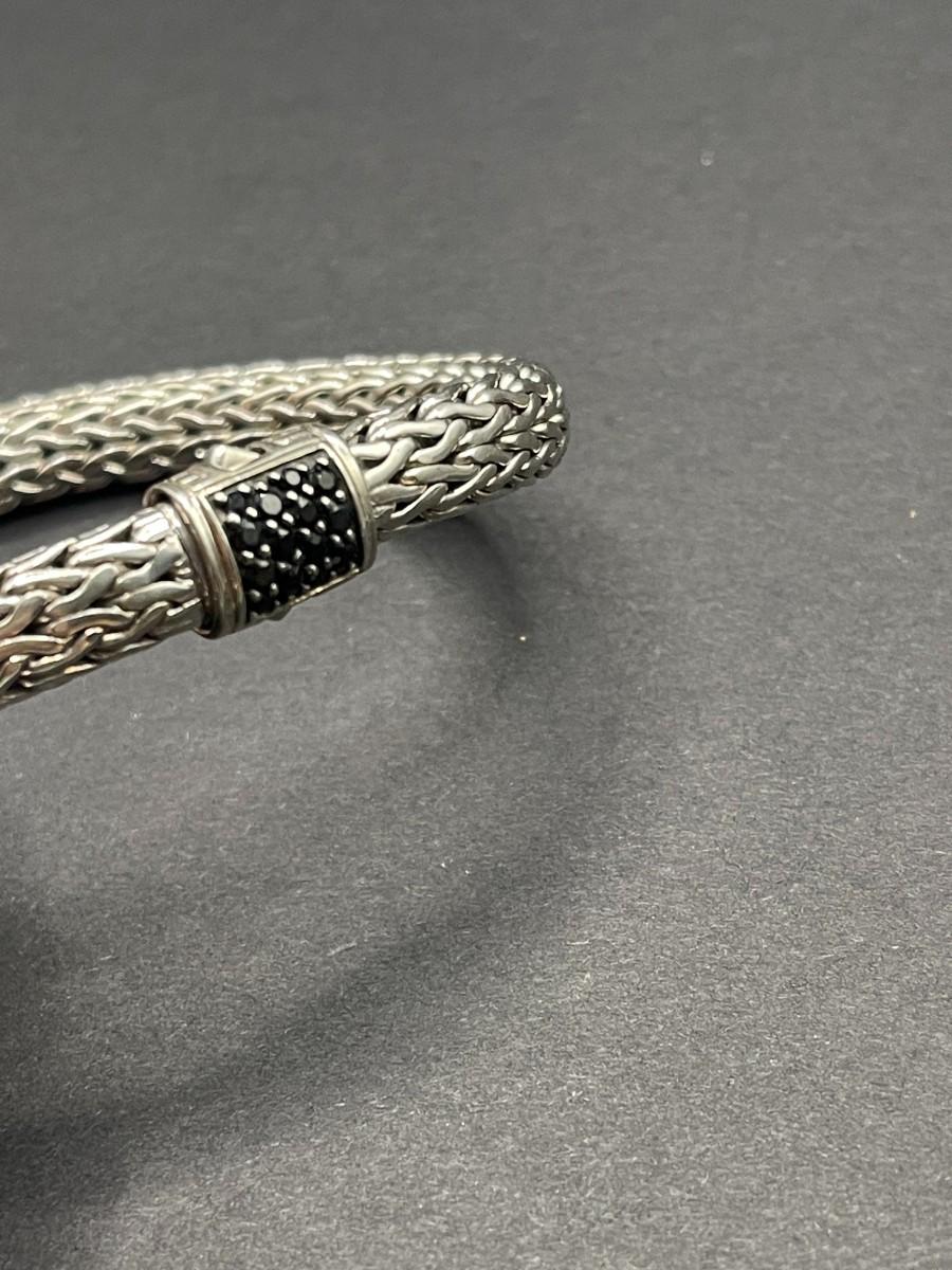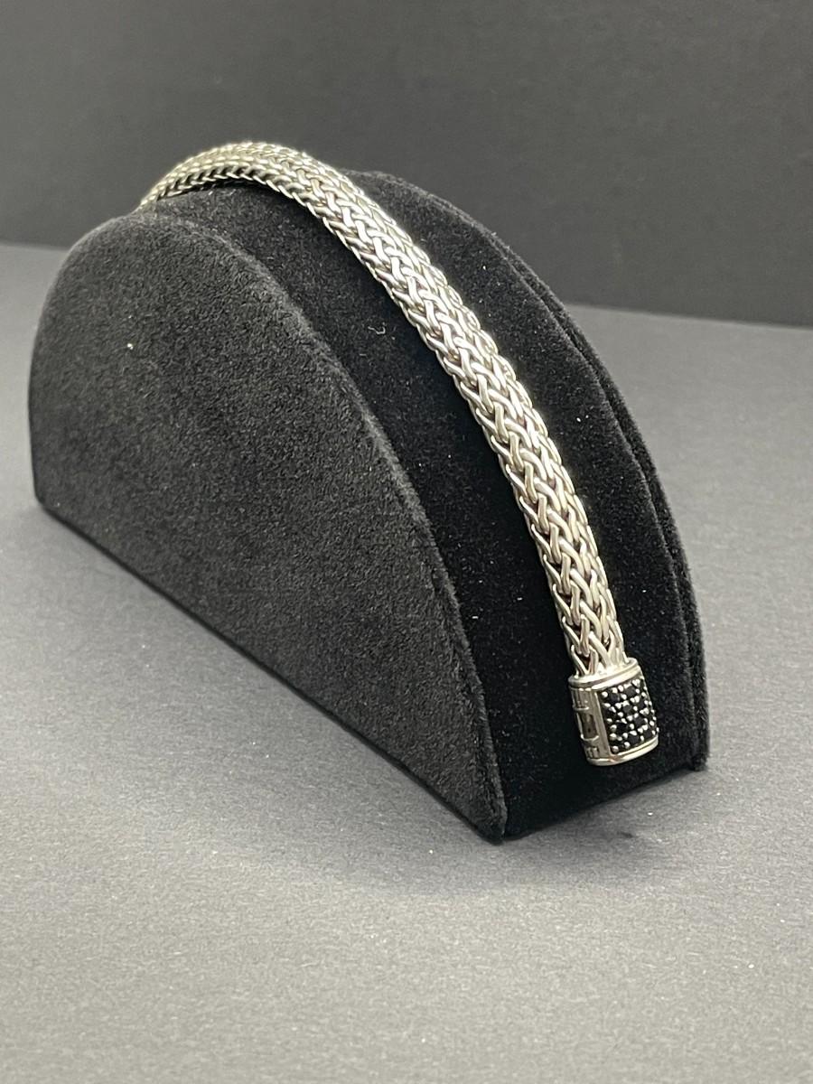 John Hardy Women's Classic Chain Silver Lava Bracelet with Black Sapphires. 6.5". Has push lock closure. Good condition.