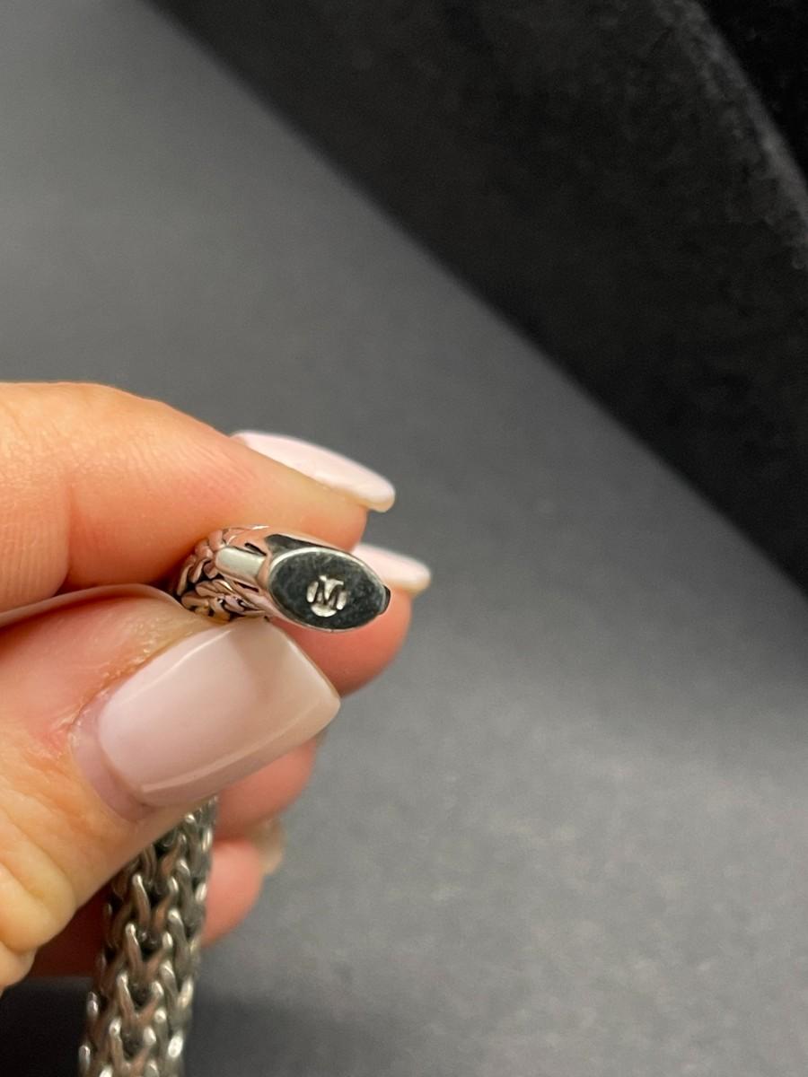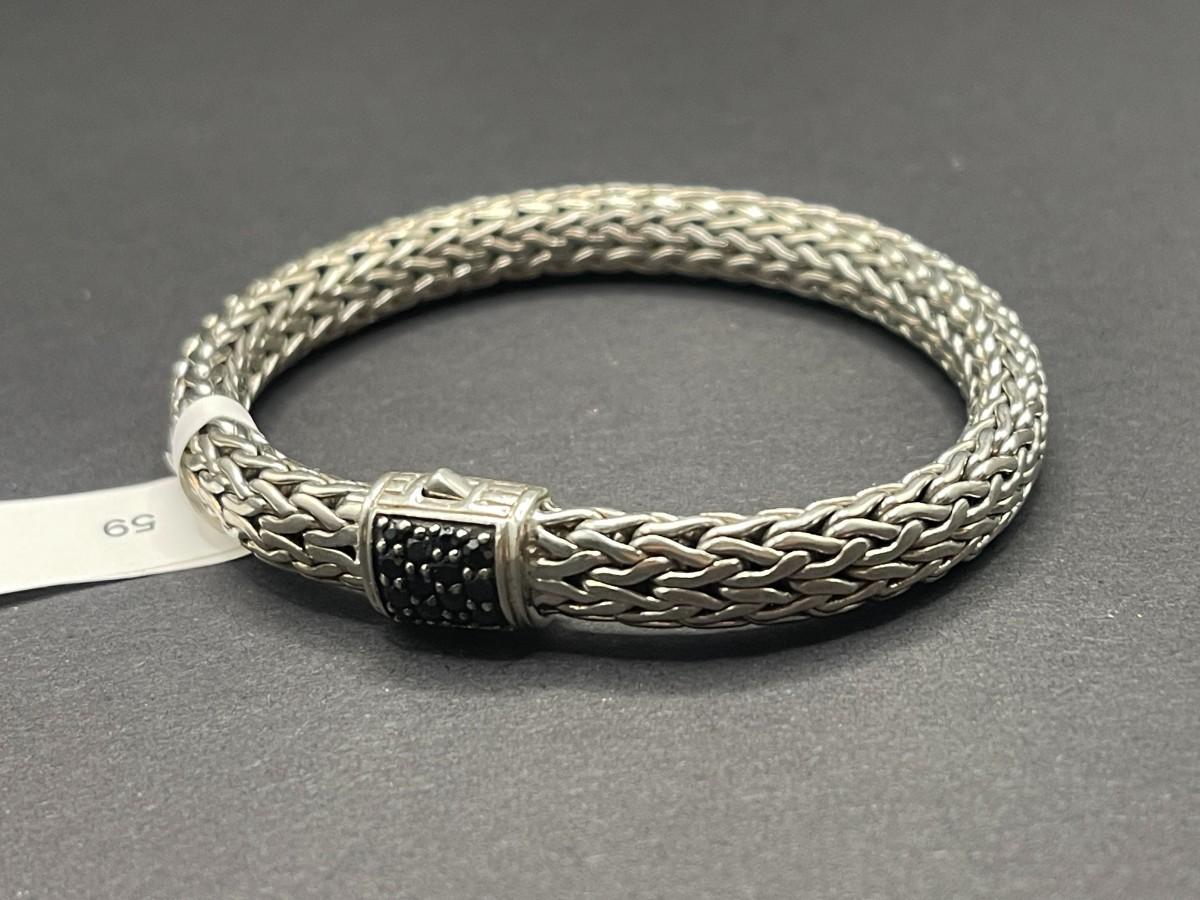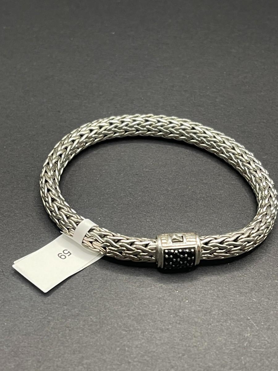 John Hardy Women's Classic Chain Silver Lava Bracelet with Black Sapphires. 6.5". Has push lock closure. Good condition.