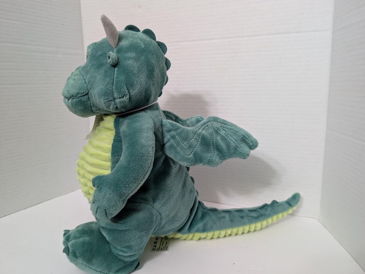 Charming plush of Excitable Edgar the dragon from the beloved John Lewis & Waitrose Christmas advert. Features soft green fabric, bright embroidered eyes, ridged belly, and original character tag. A festive collectible that captures the spirit of the iconic holiday campaign, perfect for display, gifting, or adding to a plush or Christmas-themed collection.