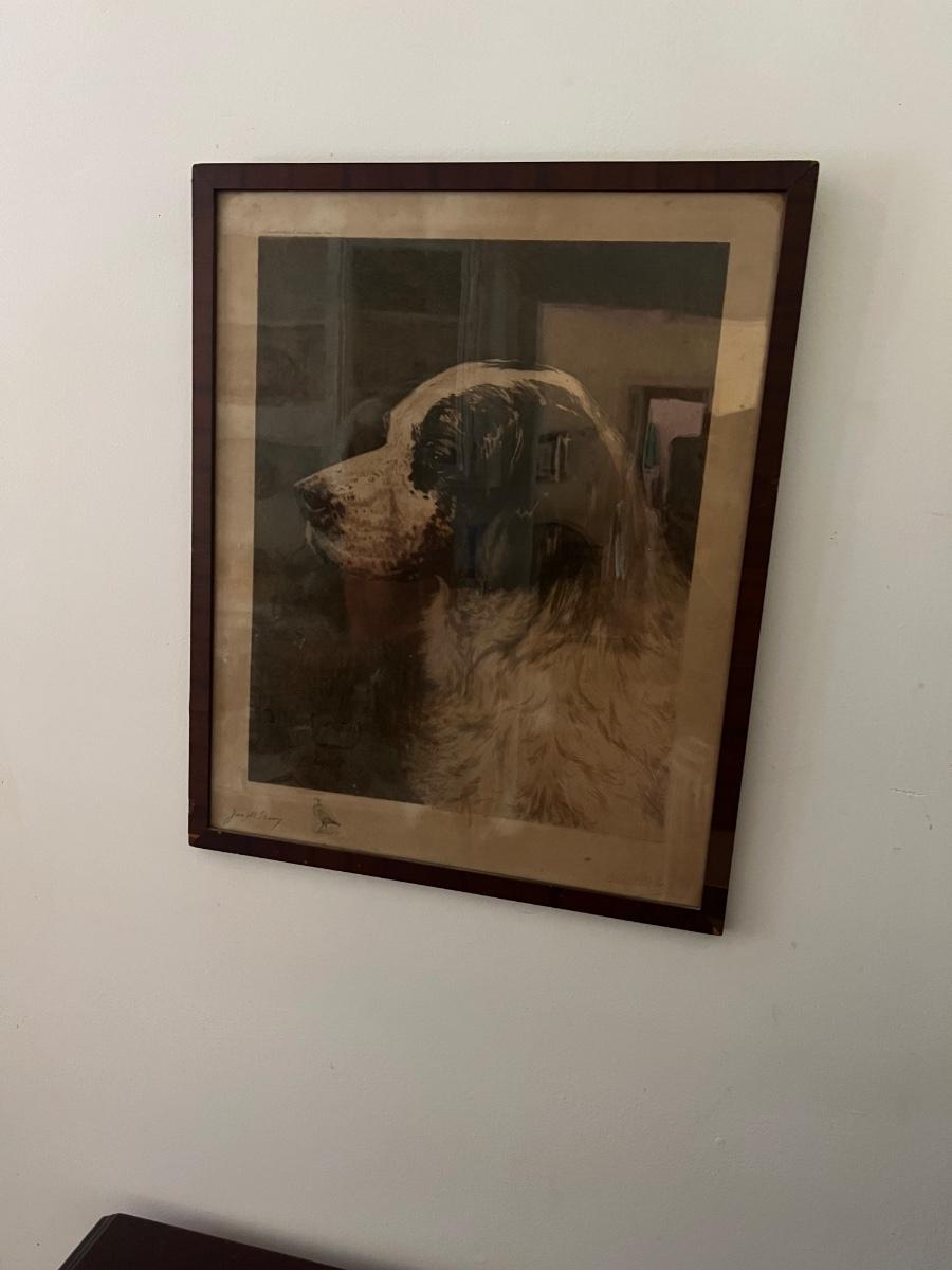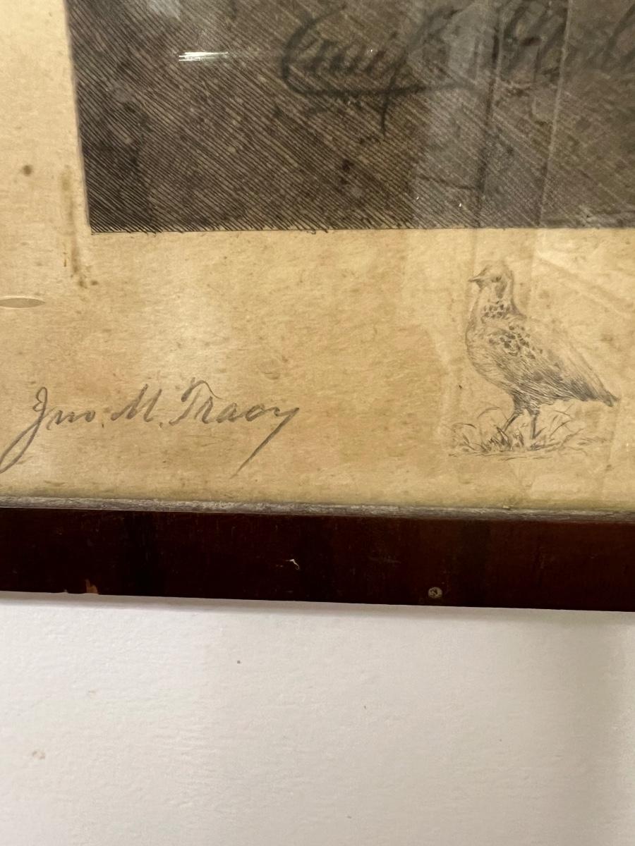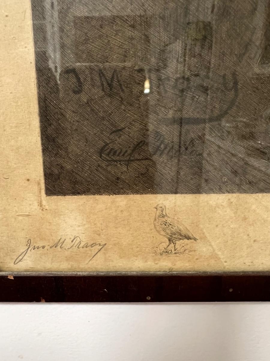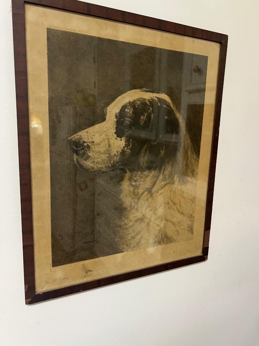 john m tracy retriever dog portrait, 1887, pencil signed by the etcher and painter, etching after a painting by JM Tracy