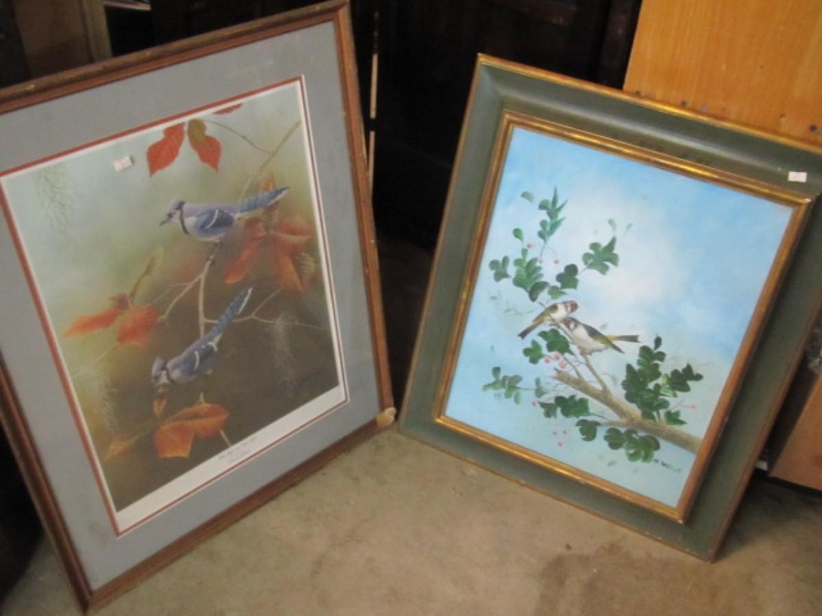 Bird Painting & John O'Neill Blue Jays and Cow Oak Song Birds Signed & Number &