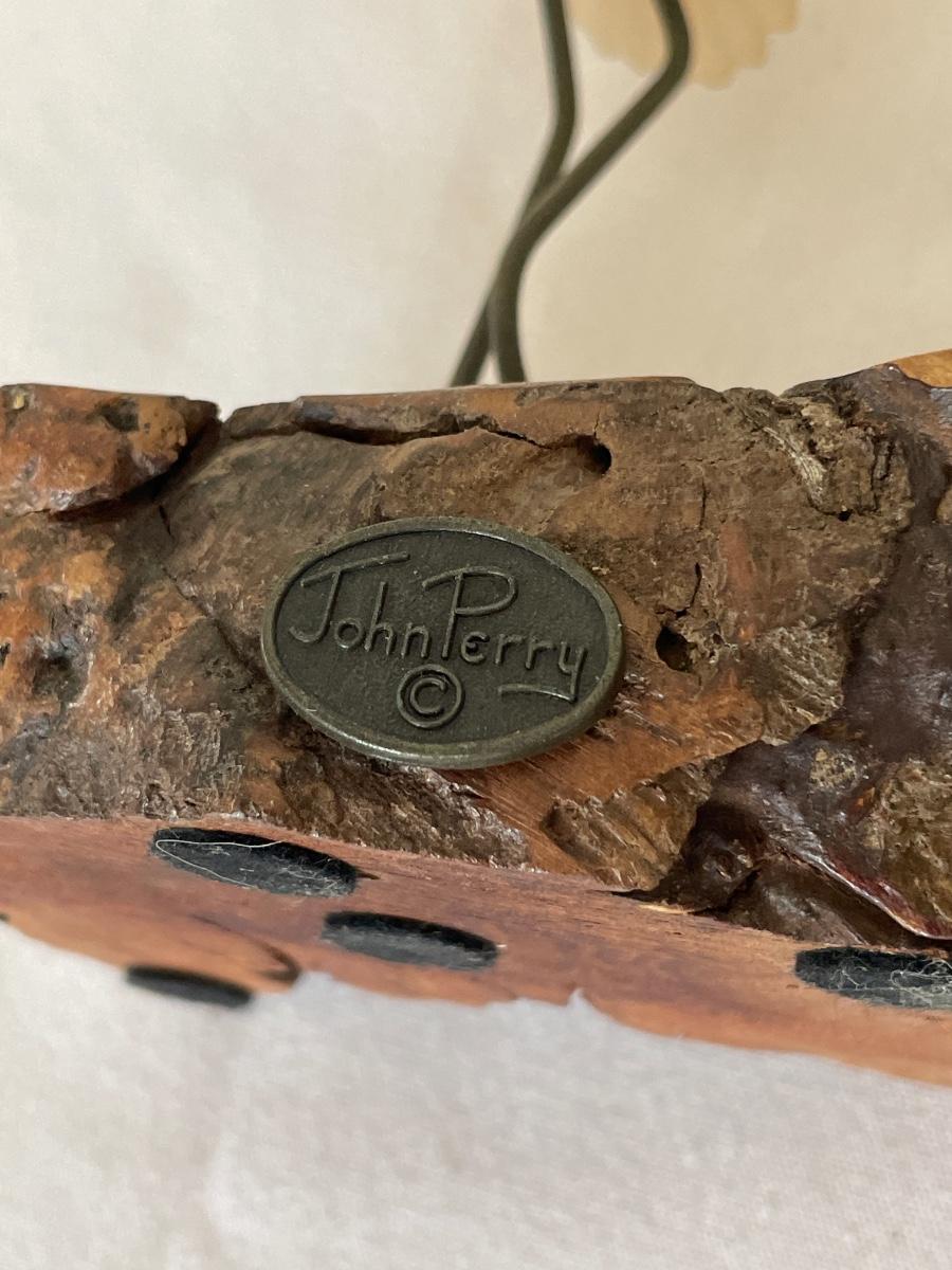 John Perry pink flamingo in burl wood
