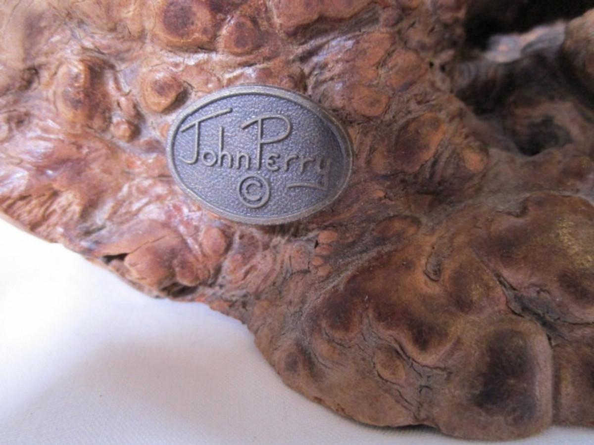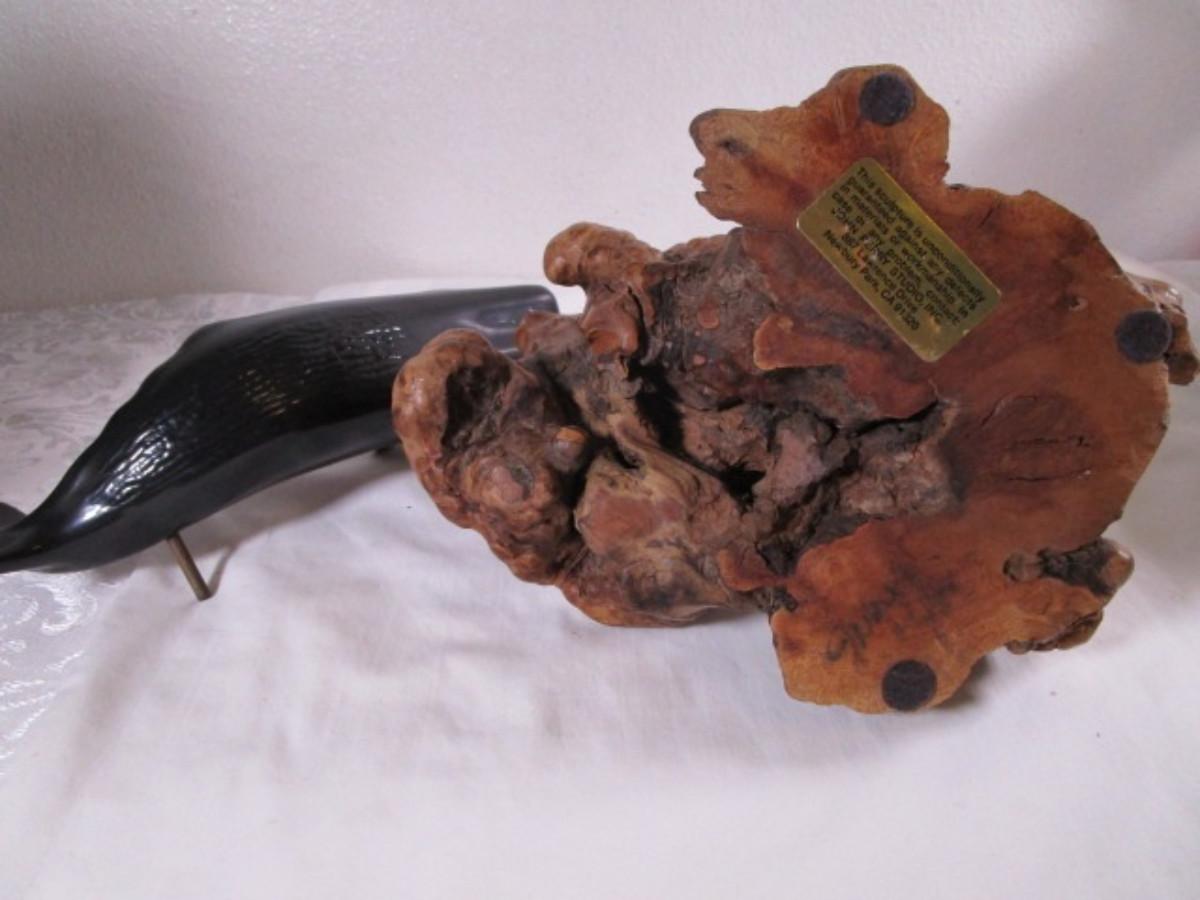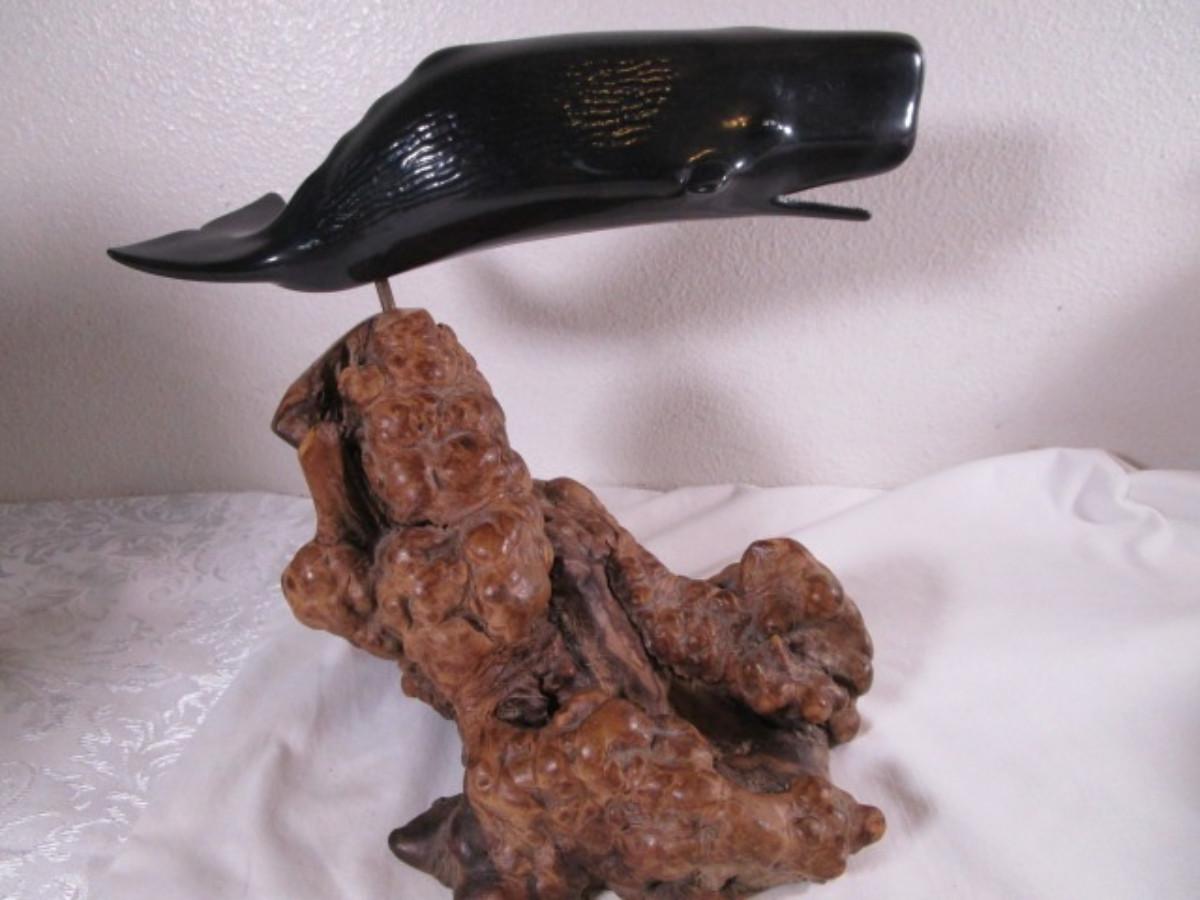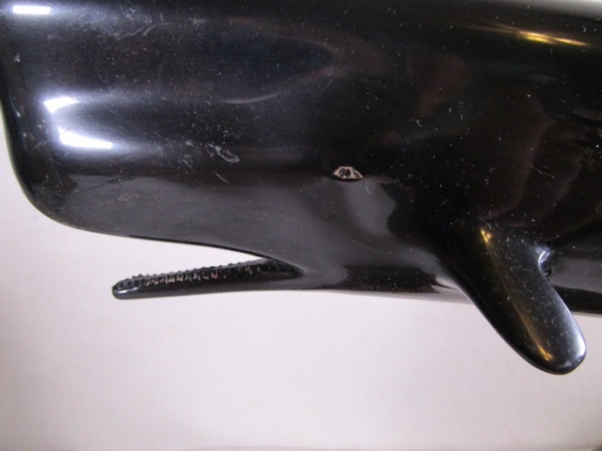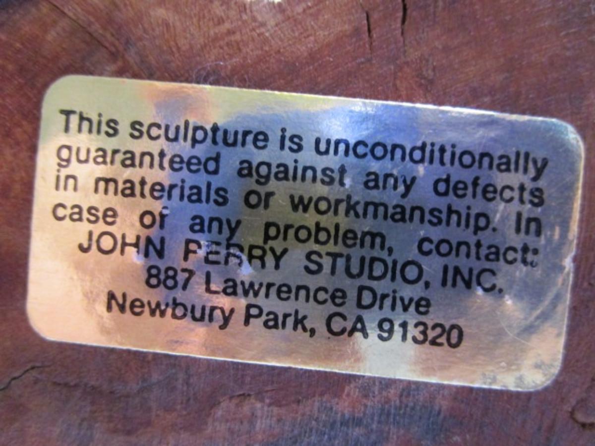 Signed by the sculptor. Front to back 10-1/2" x 3" tall. Wood stand is 9" long x 6-3/8" tall